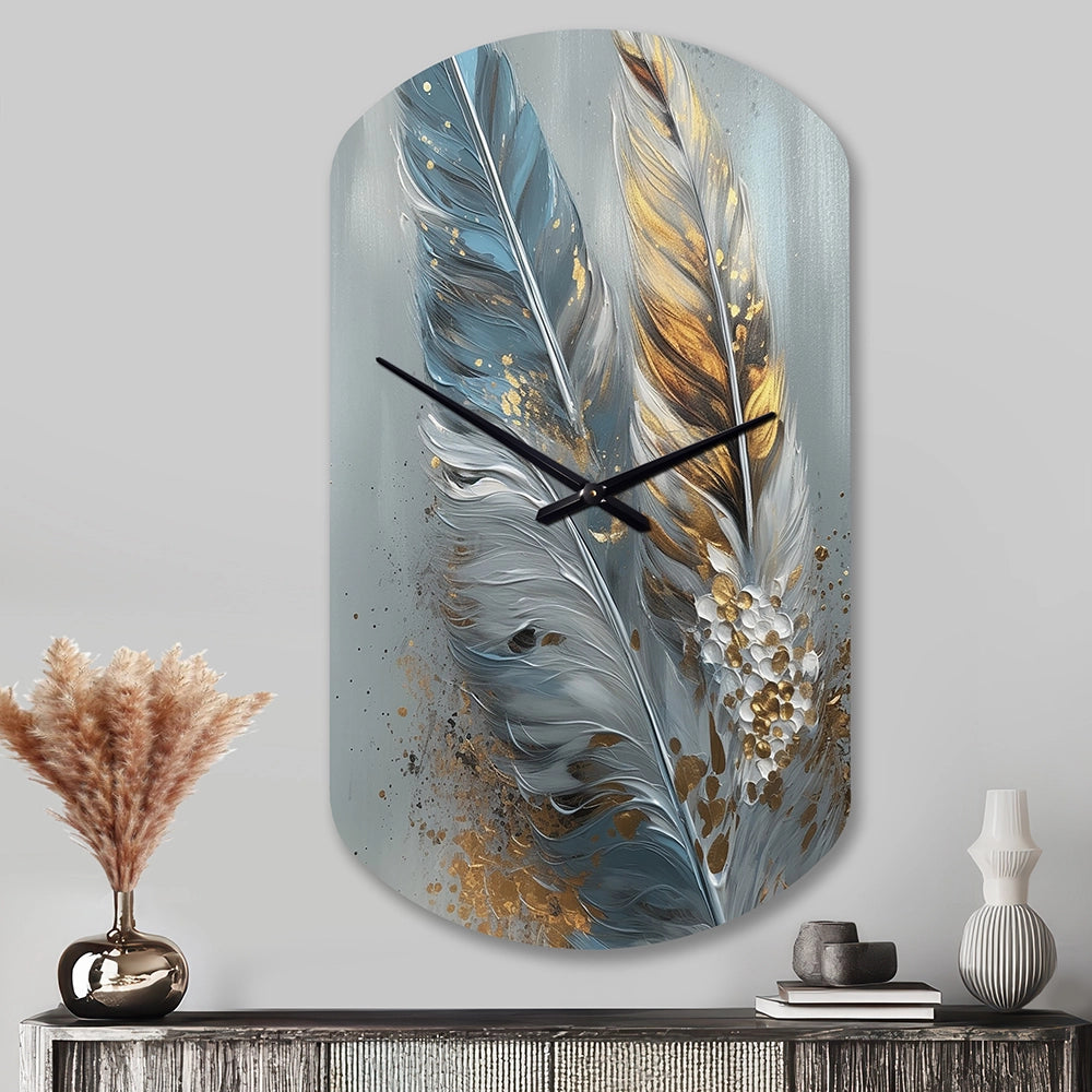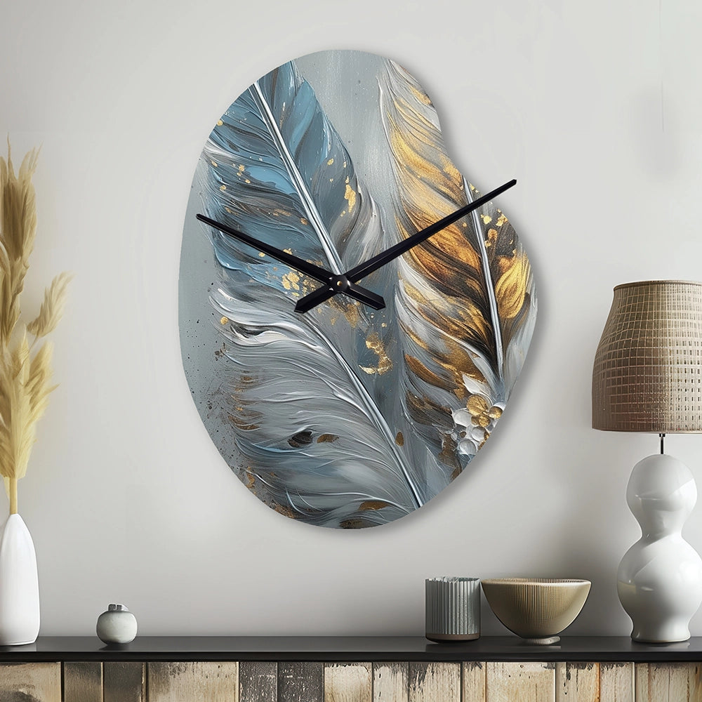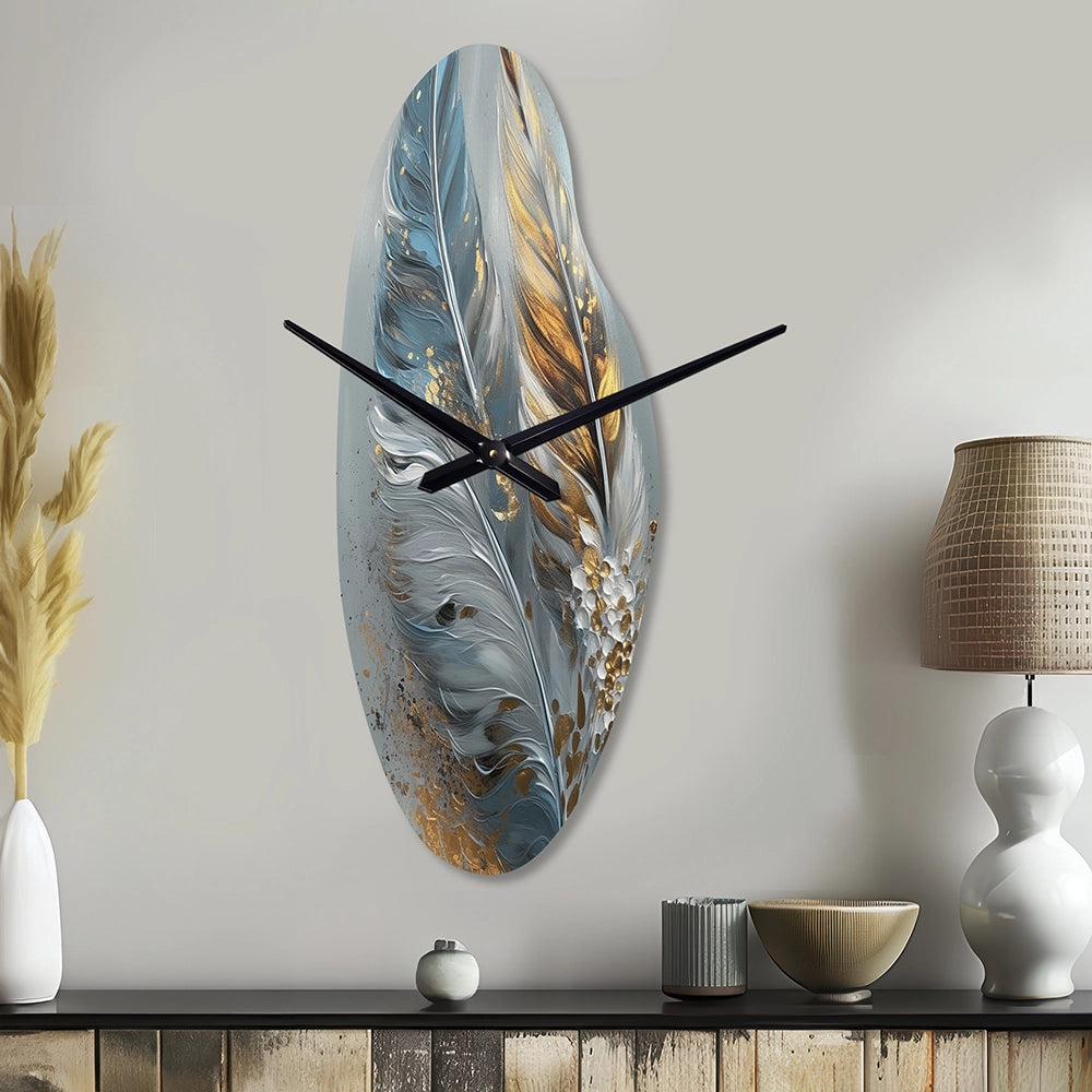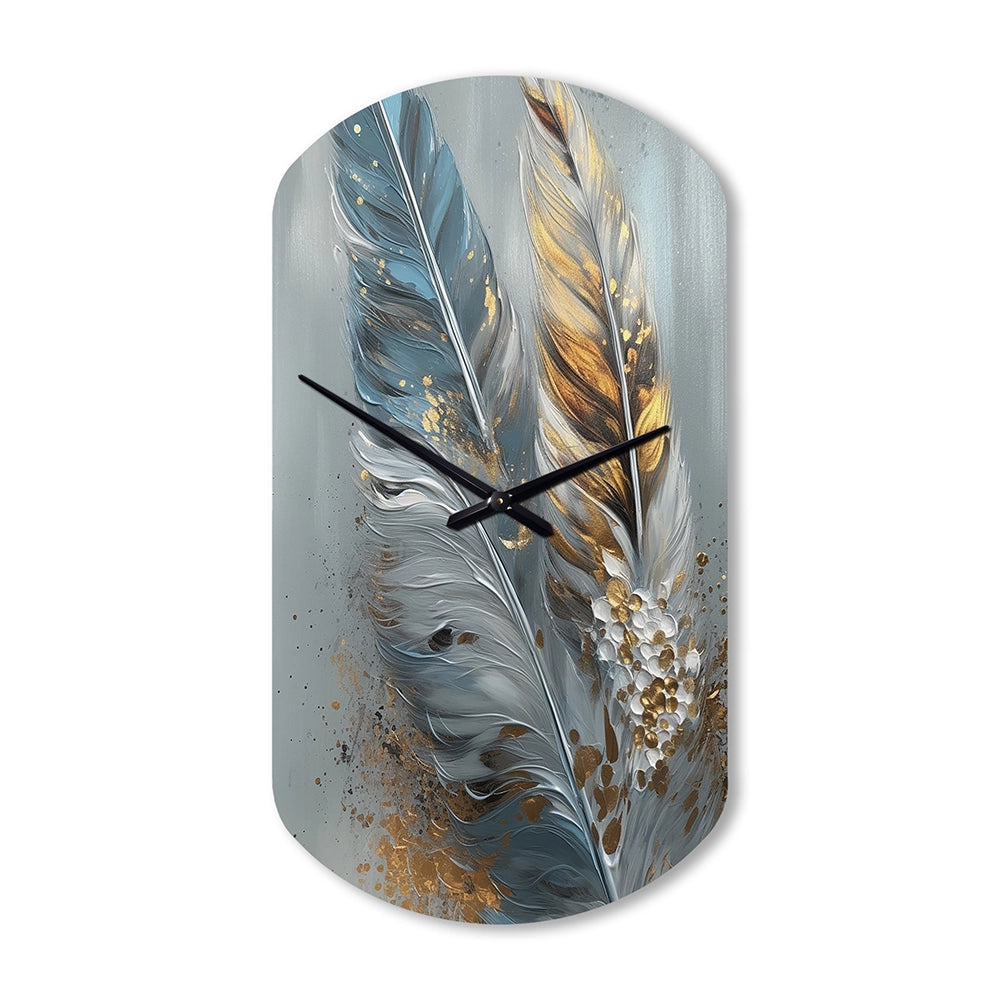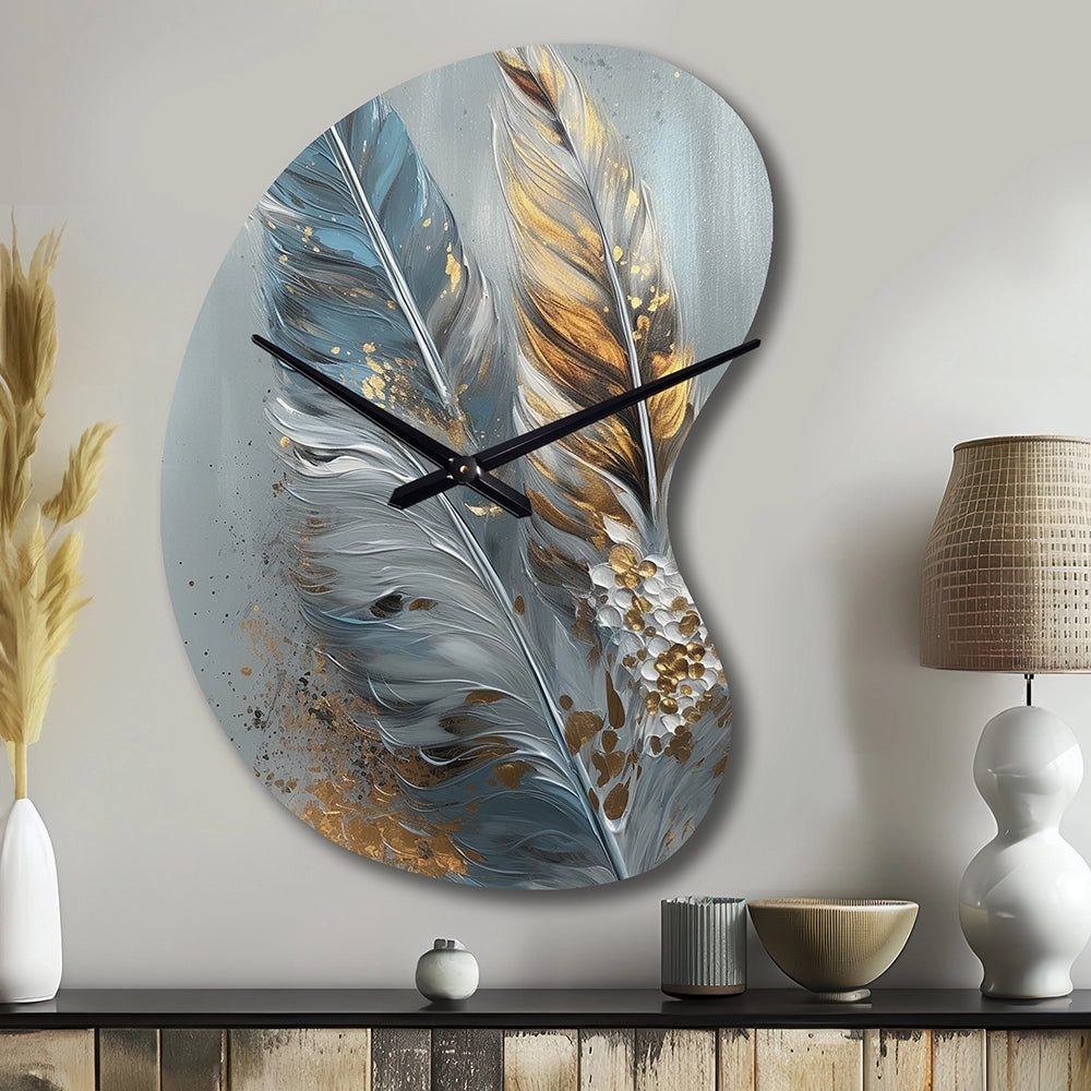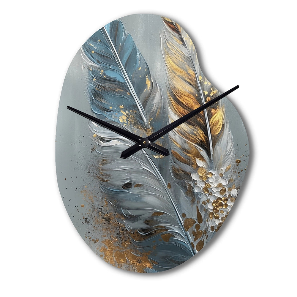 Gold Feather Wanderlust I - Asymmetric Metal Wall Clock