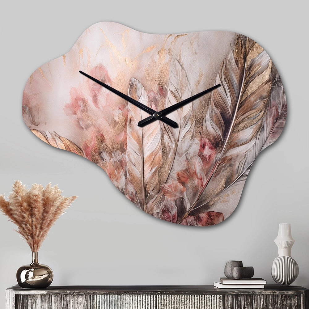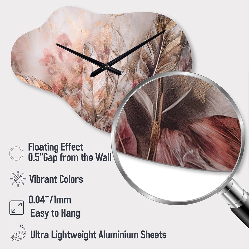 Gold Glamorous Feathers Of Boho Fantasy IV - Asymmetric Metal Wall Clock