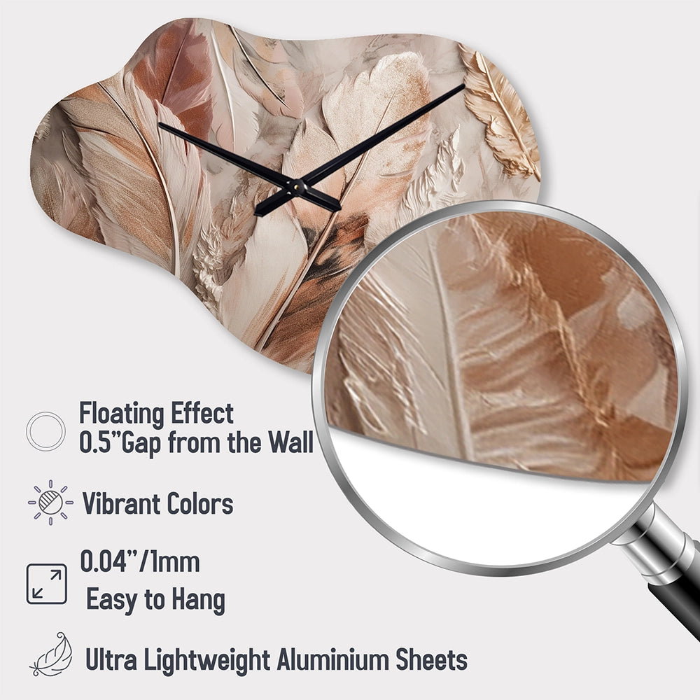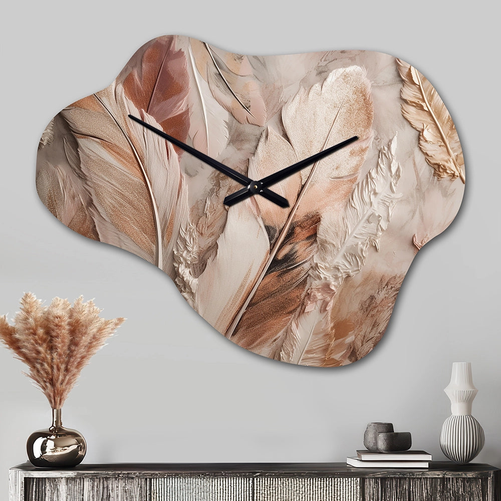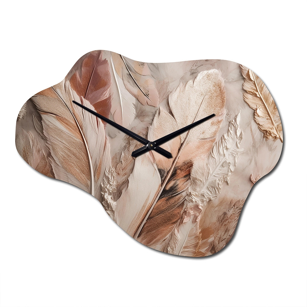Gold Glamorous Feathers Of Boho Fantasy V - Asymmetric Metal Wall Clock