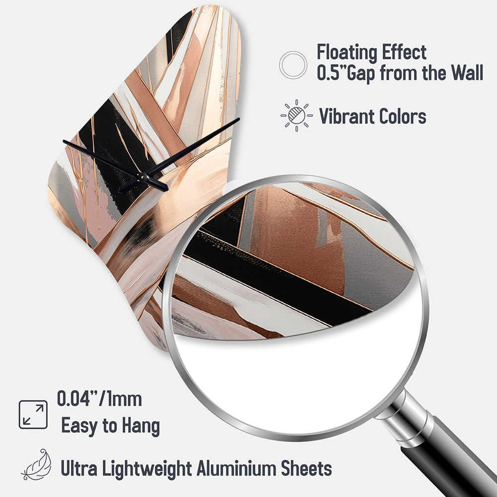 Elevate your space with this Modern asymmetrical metal wall Clock. Our handcrafted metal wall sculptures combine modern design with artistic elegance, creating a striking focal point in any room. This asymmetric metal wall Clock features unique, irregular shapes that bring dynamic movement and depth to your walls. Perfect for Abstract decor, these Gold irregular metal wall sculptures are printed on aluminum panel, with extra gloss ensuring long-lasting beauty. Ideal for living rooms, offices decor, or entrance, this statement piece adds a bold, Abstract touch to any decor.
