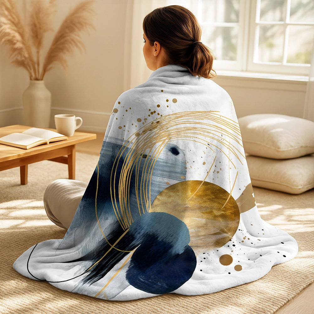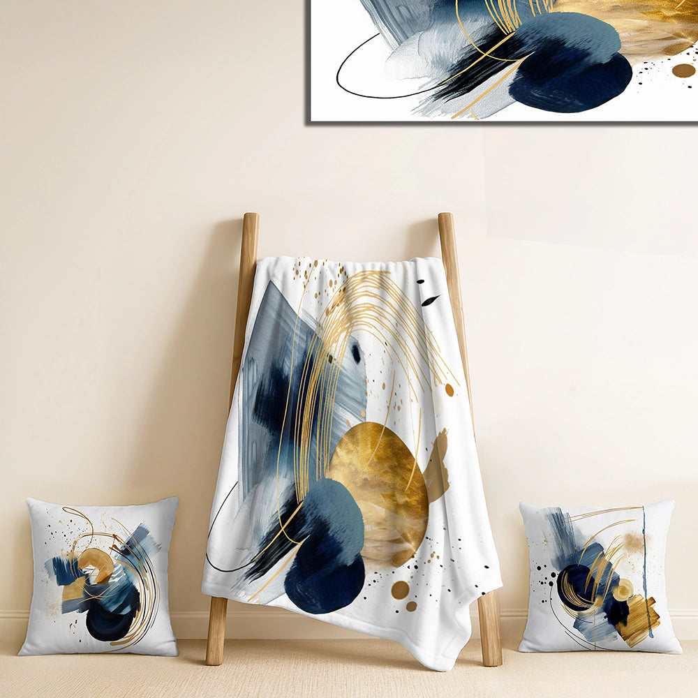 Modern Throw Blanket Set - Landscape of Dark Blue and Gold Strokes III