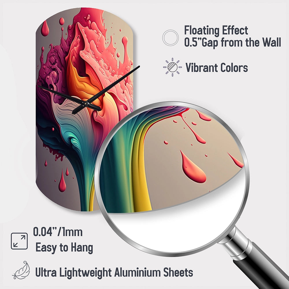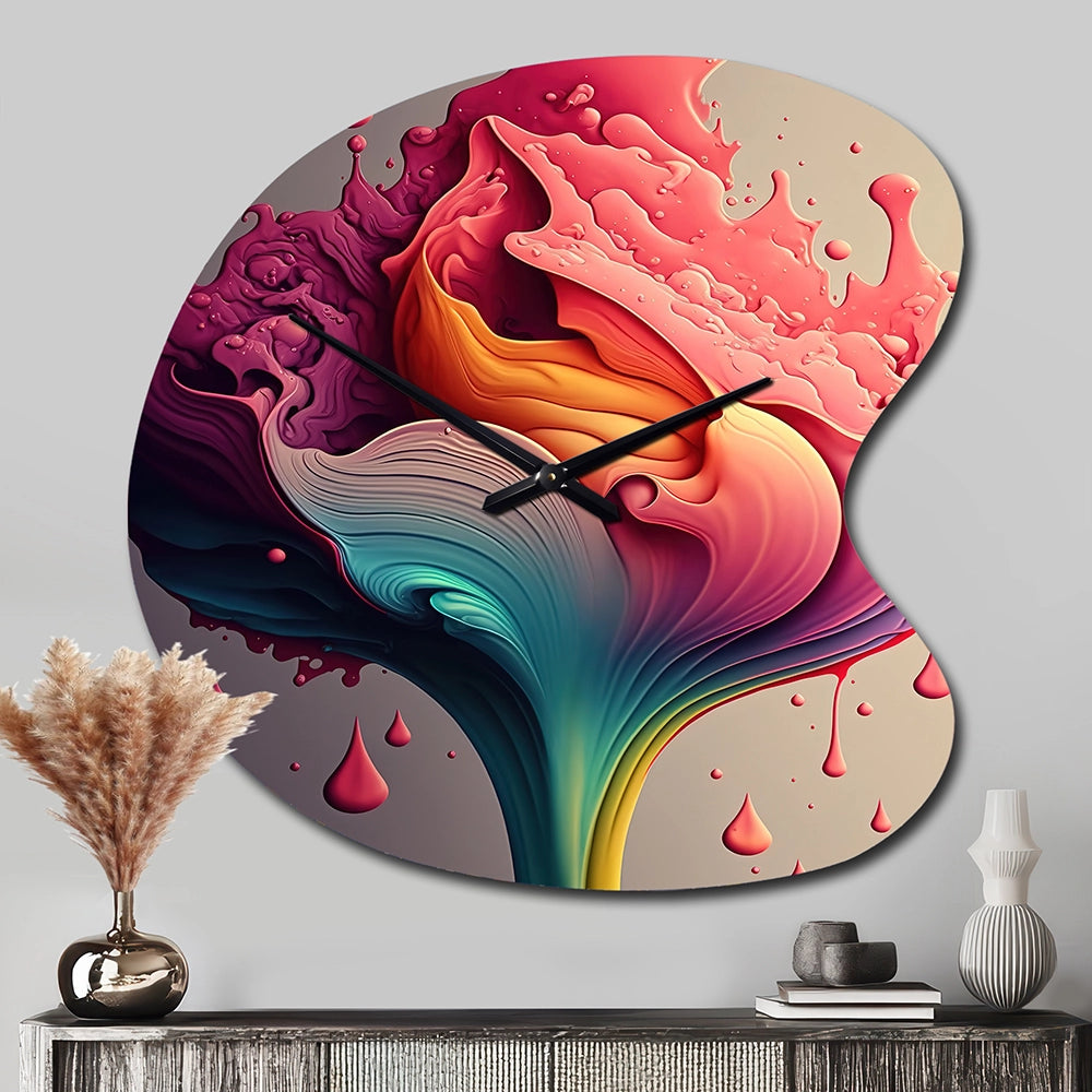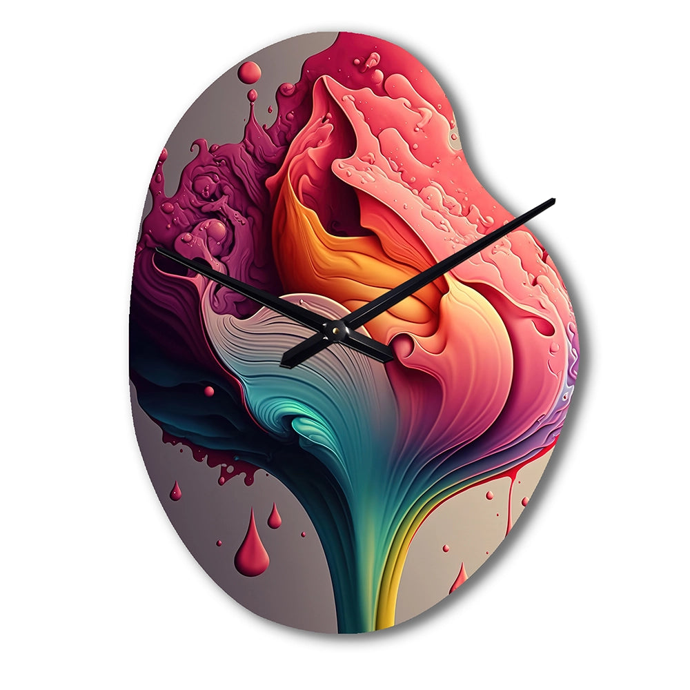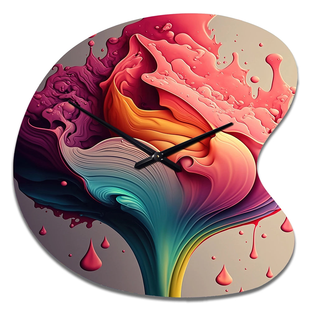 Multicolor Liquid Ink Tulip Flowers I - Asymmetric Metal Wall Clock