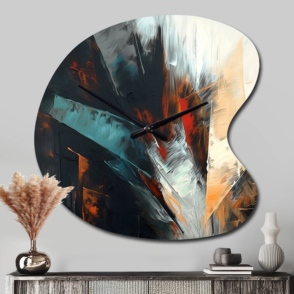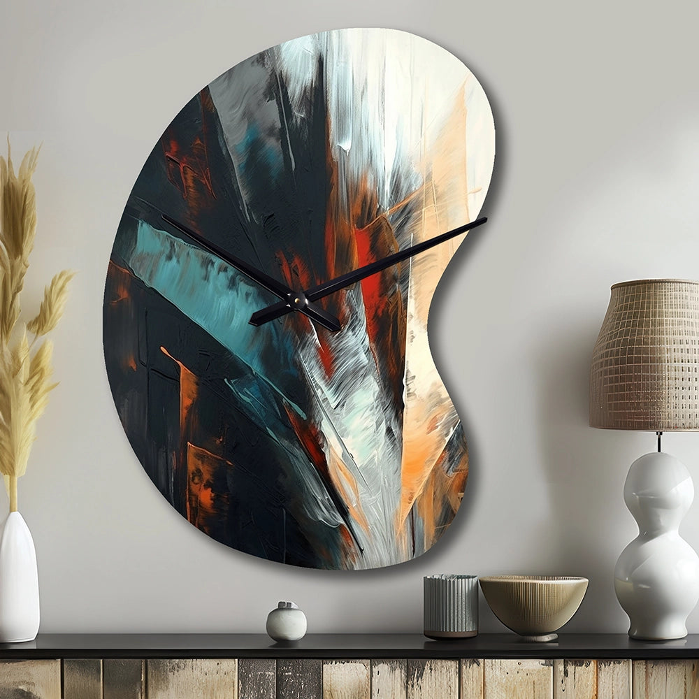 Orange And Blue Abstract Mixed Colors II - Asymmetric Metal Wall Clock