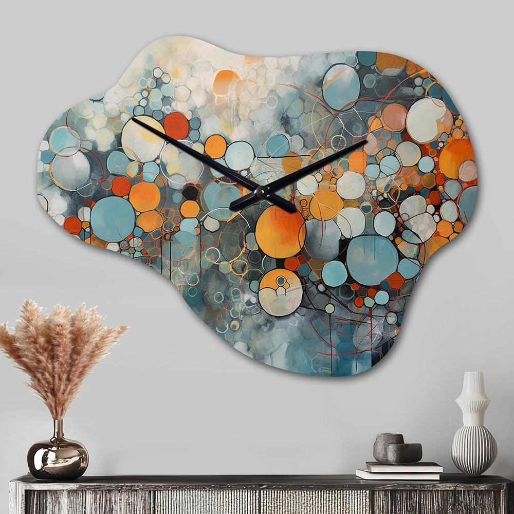 Orange And Blue Geometric Illusions - Asymmetric Metal Wall Clock