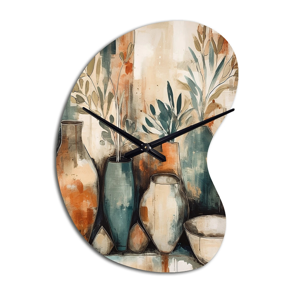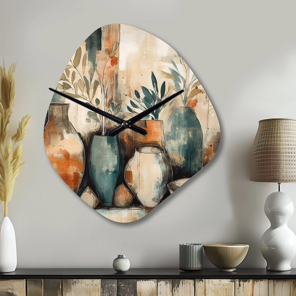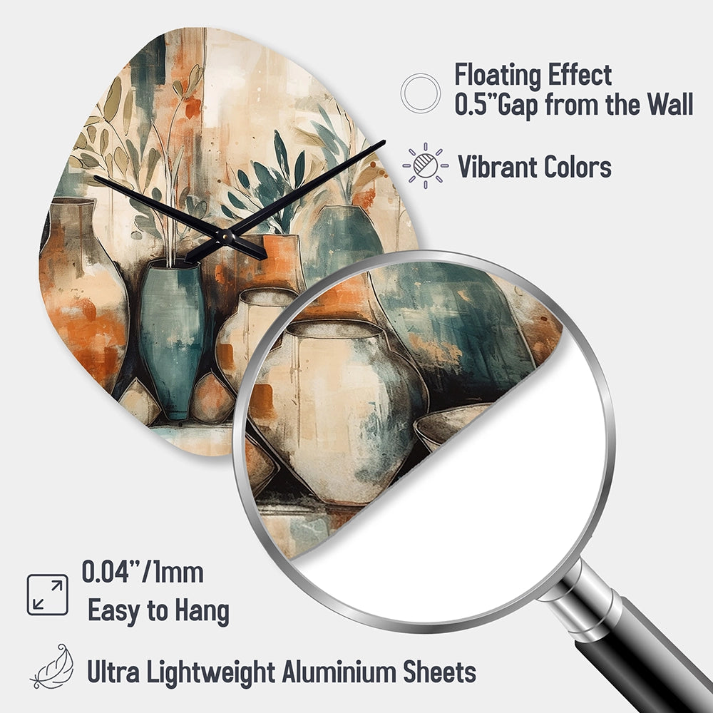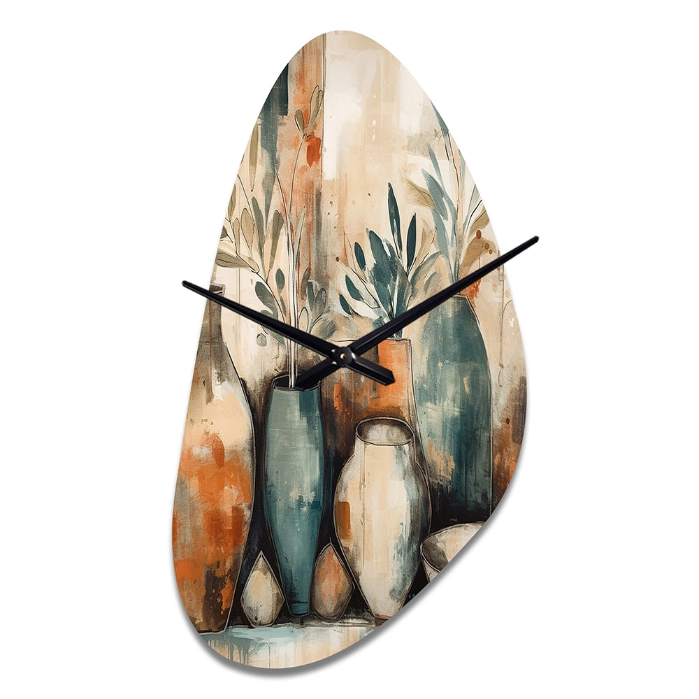Orange And Green Channeling Bohemian Vibes - Asymmetric Metal Wall Clock