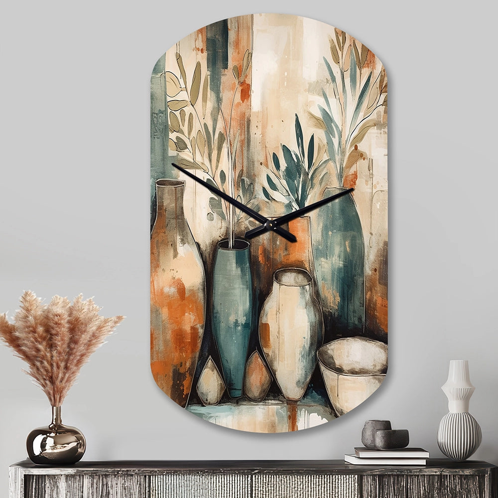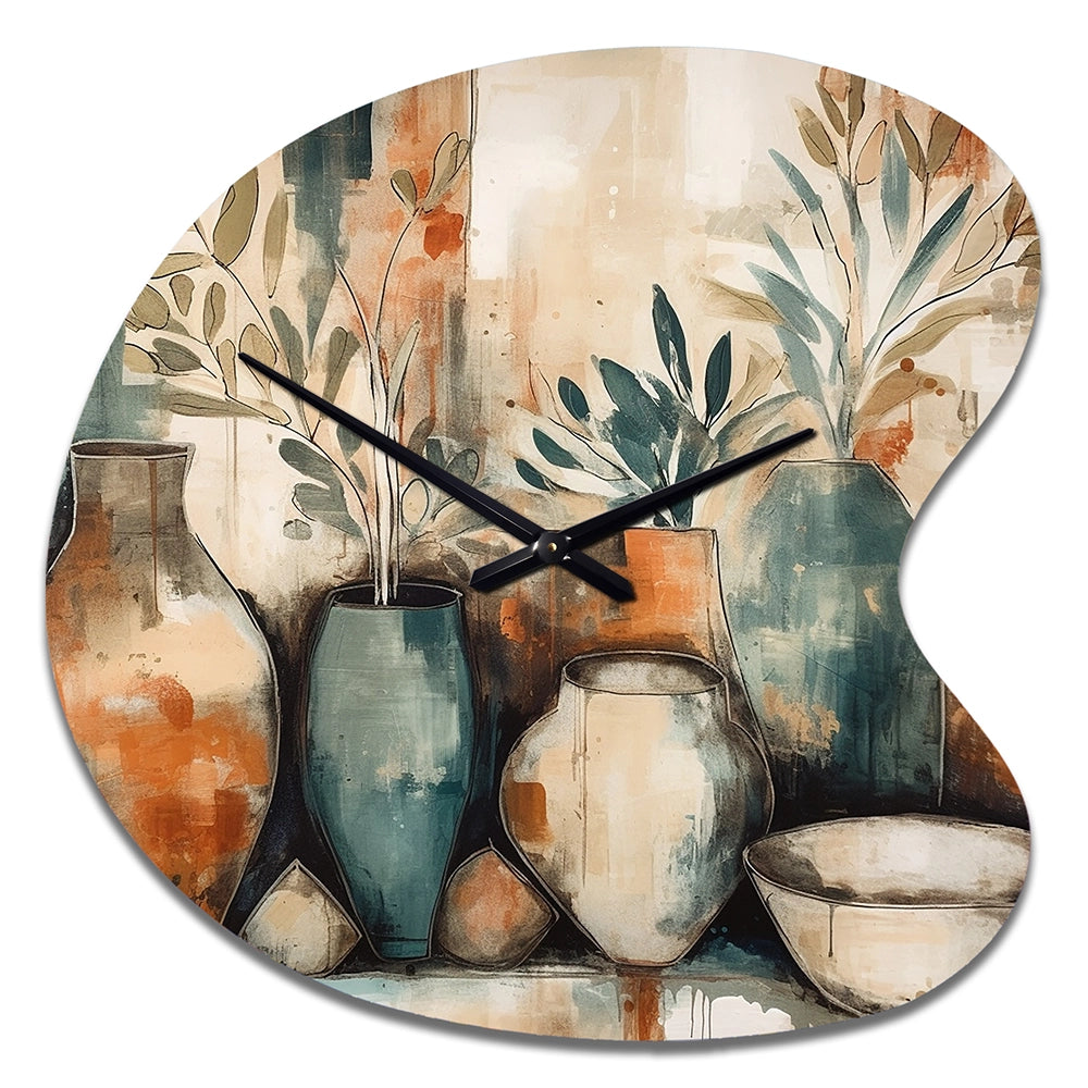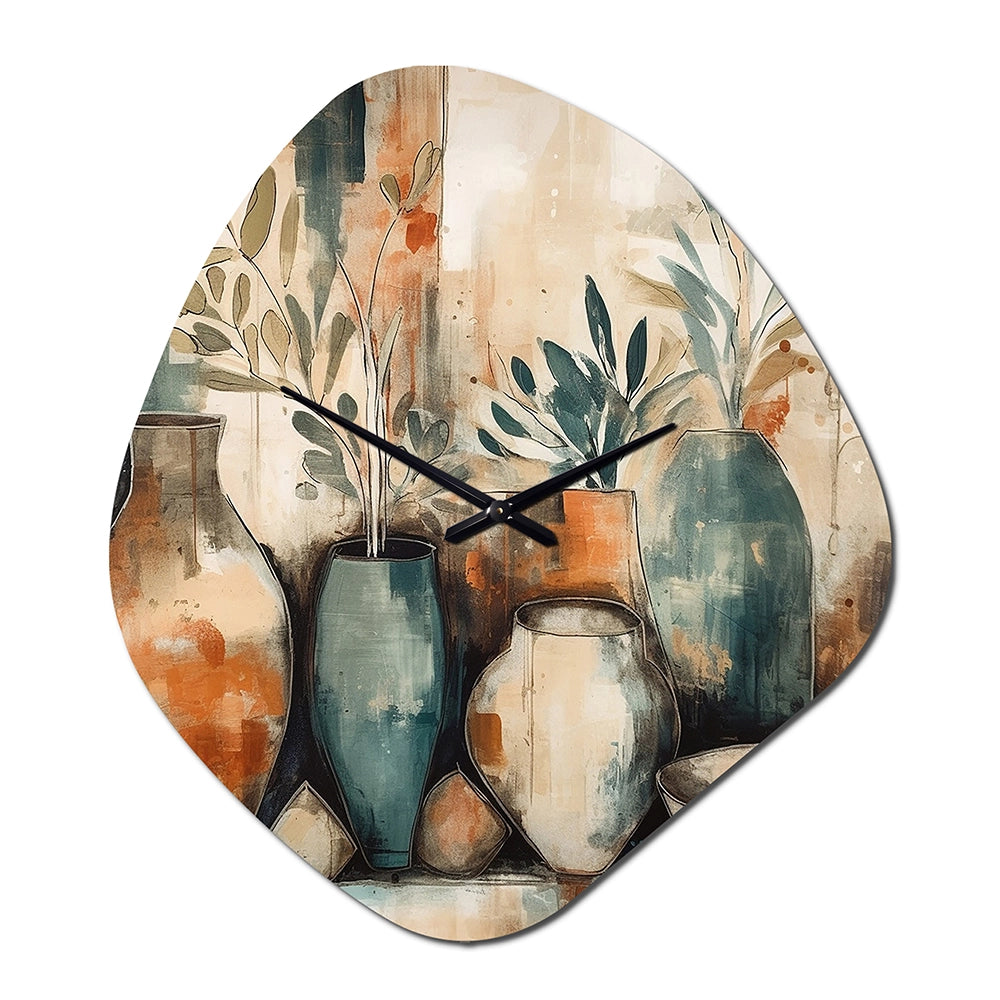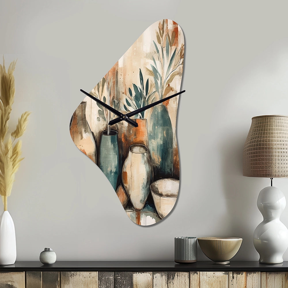 Orange And Green Channeling Bohemian Vibes - Asymmetric Metal Wall Clock