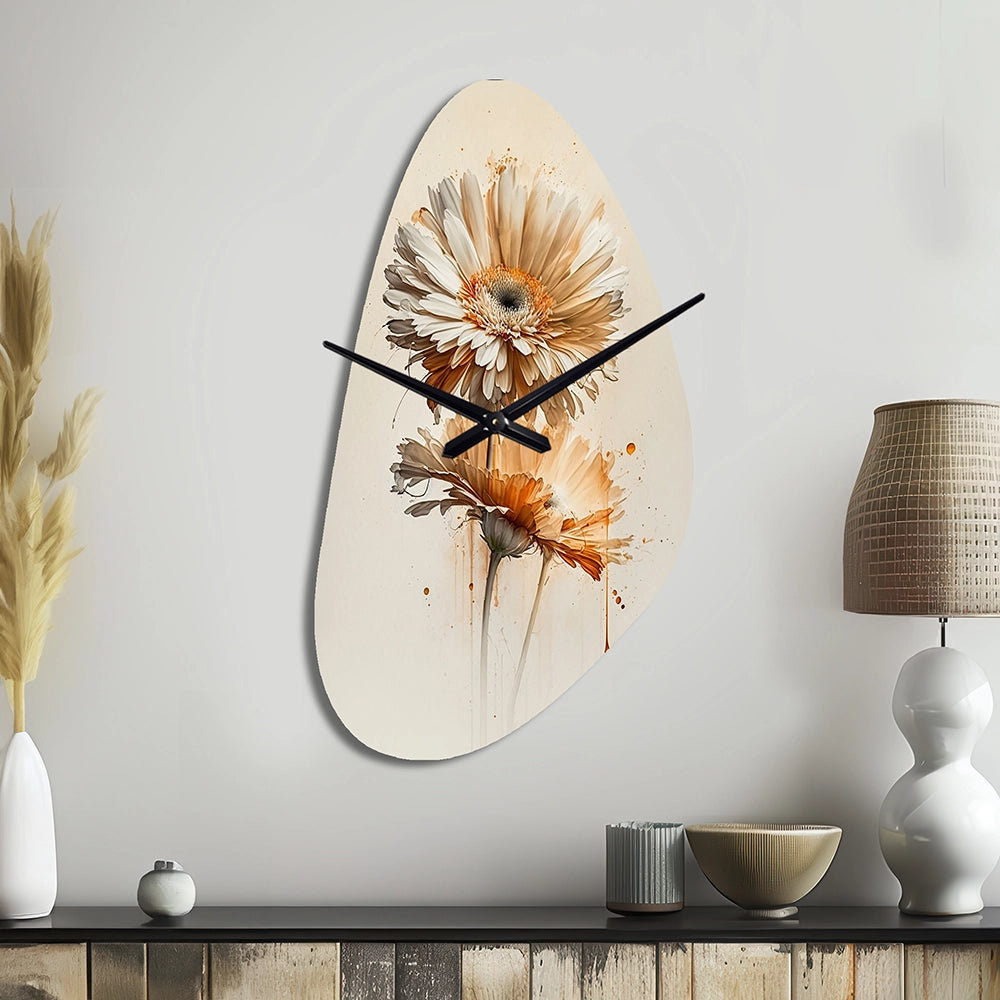 Orange Gerbera Flower III - Asymmetric Metal Wall Clock