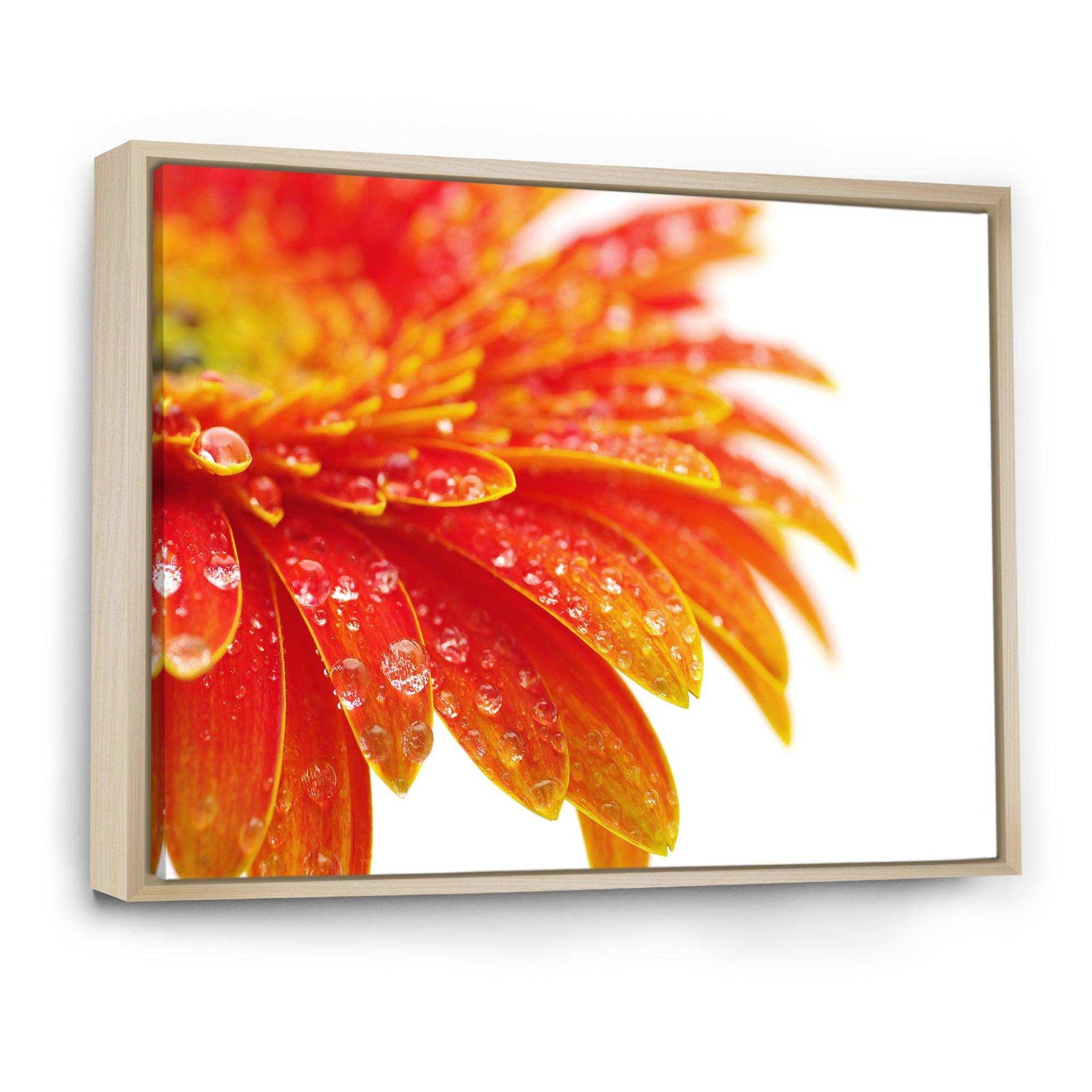 This beautiful Orange Gerbera with Raindrops Canvas Art is printed using the highest quality fade-resistant ink on canvas. Every one of our fine art giclee canvas prints is printed on premium quality cotton canvas, using the finest quality inks which will not fade over time. Each giclee print is stretched tightly over a 1-inch wood sub frame for small size prints or a 1.5-inch wood subframe for large size prints ensuring the canvas is taught and does not buckle. This canvas art print is gallery-wrapped (the design continues on the sides), giving it a real art gallery feel. All of our canvas prints are carefully packaged with plastic protection, fragile labeling, and sturdy boxes to ensure safe delivery. Every canvas print arrives ready to hang on the wall, with the hanging kits included.