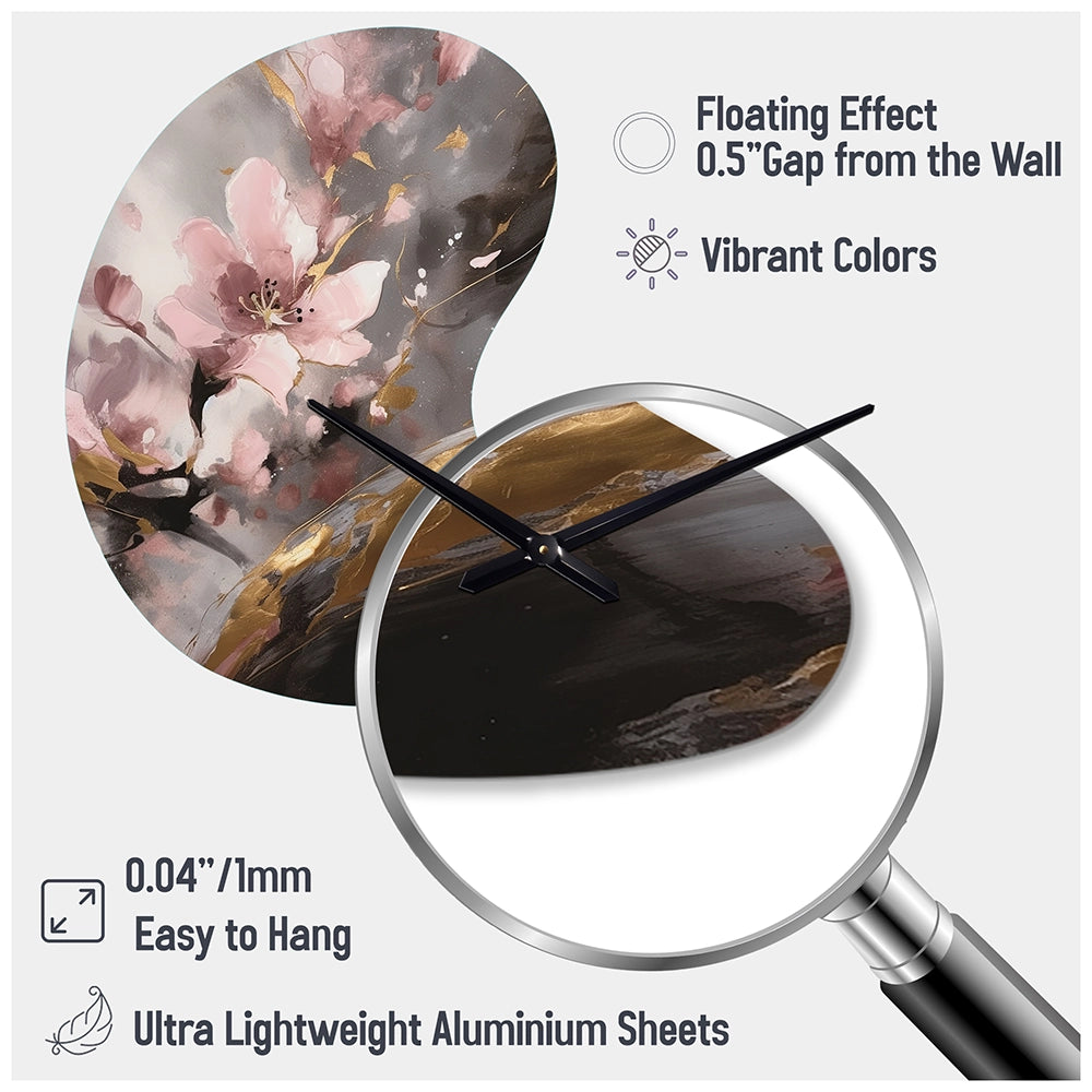 Pink Blushing Cherry Blossom - Asymmetric Metal Wall Clock