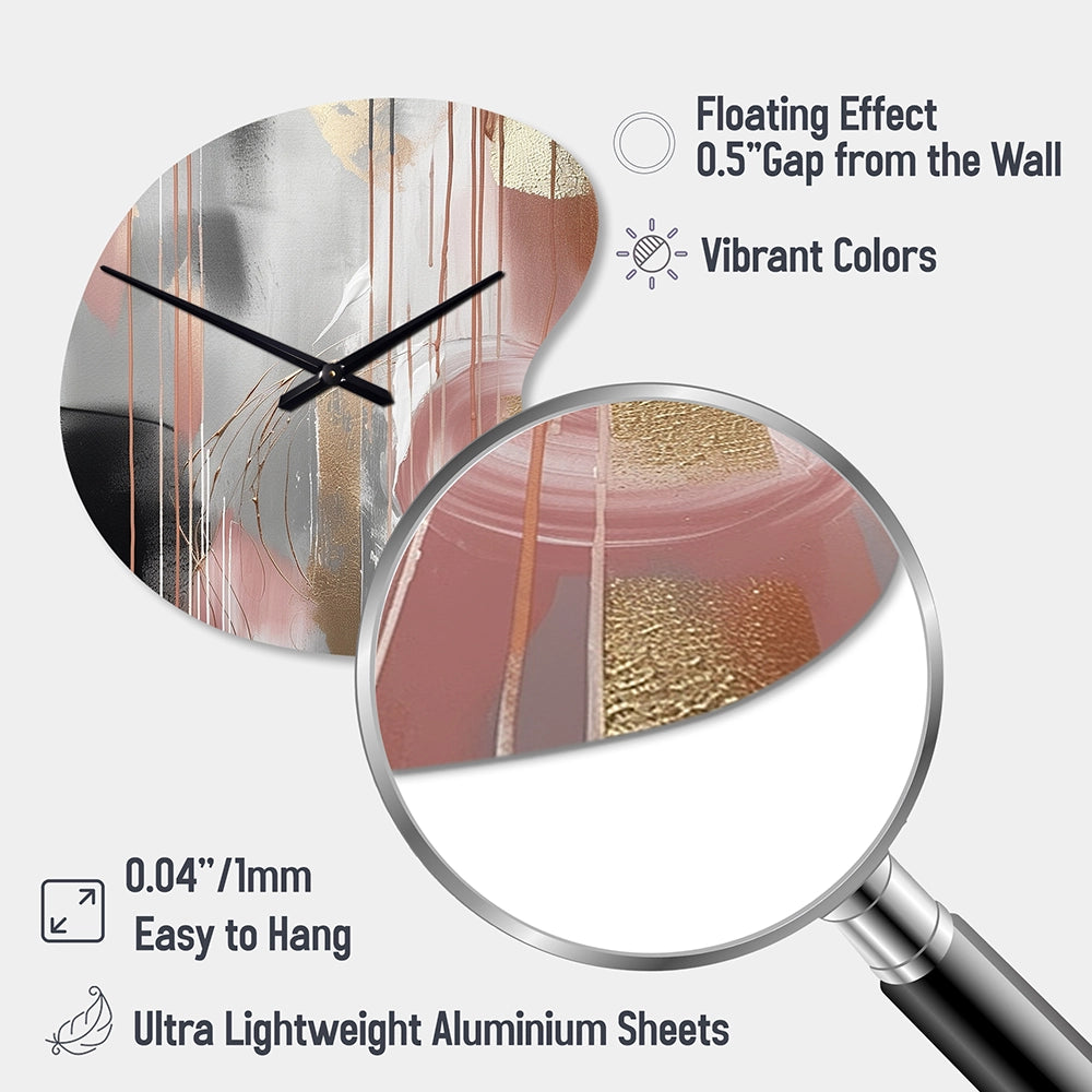 Pink Gold Circle Complexity - Asymmetric Metal Wall Clock