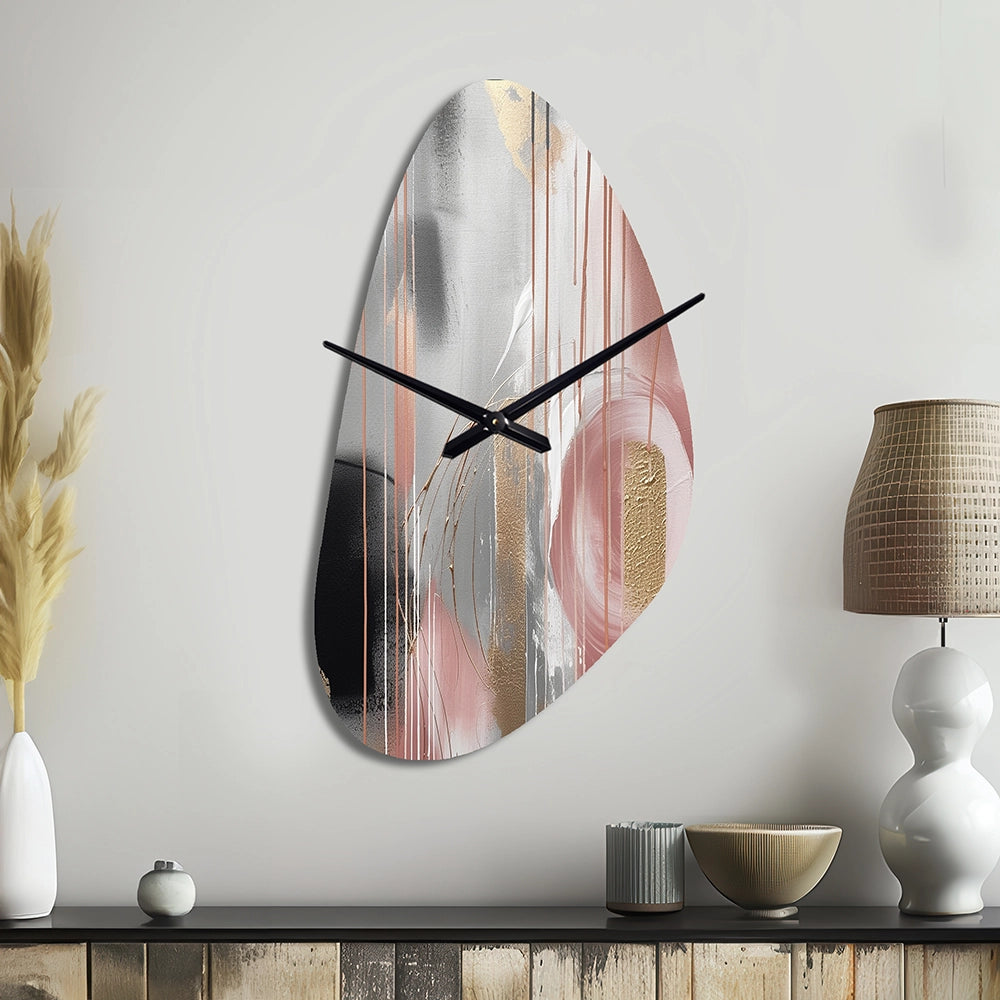 Elevate your space with this Modern asymmetrical metal wall Clock. Our handcrafted metal wall sculptures combine modern design with artistic elegance, creating a striking focal point in any room. This asymmetric metal wall Clock features unique, irregular shapes that bring dynamic movement and depth to your walls. Perfect for Abstract decor, these Pink irregular metal wall sculptures are printed on aluminum panel, with extra gloss ensuring long-lasting beauty. Ideal for living rooms, offices decor, or entrance, this statement piece adds a bold, Abstract touch to any decor.