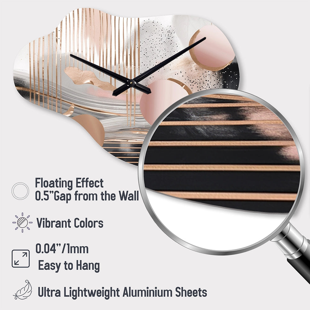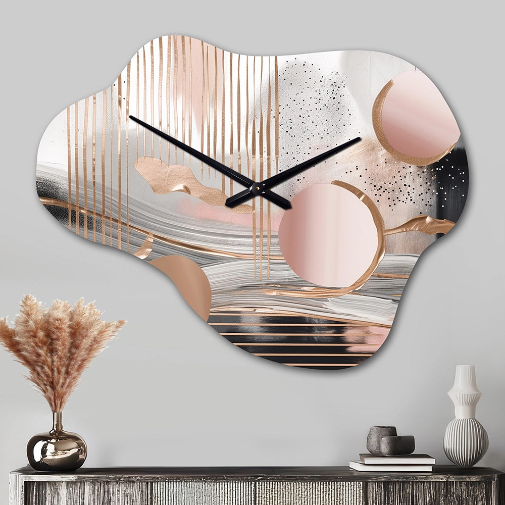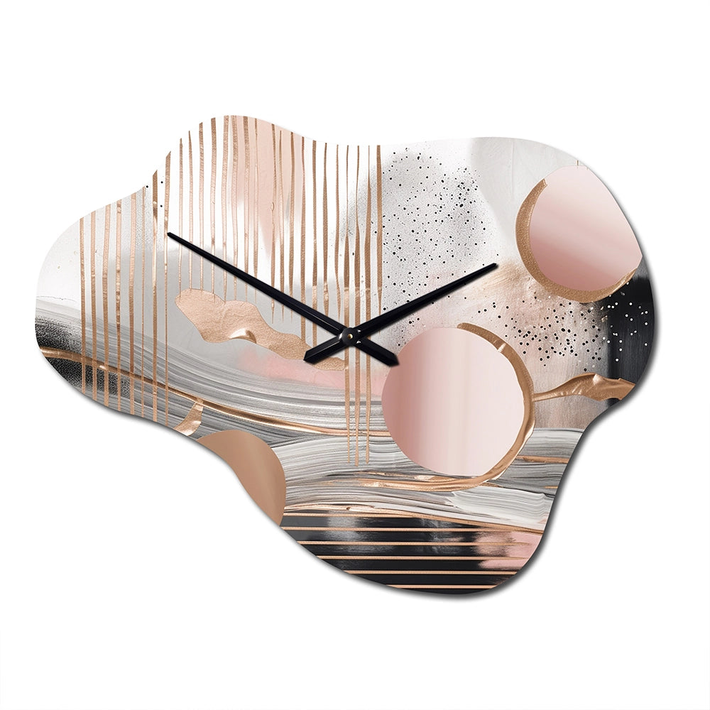 Pink Rose gold Circle Chaos IV - Asymmetric Metal Wall Clock