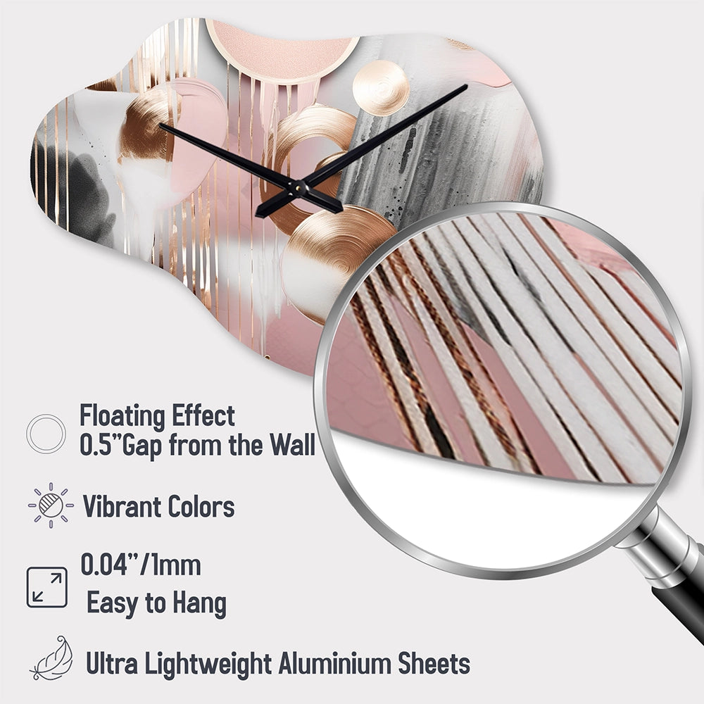 Elevate your space with this Modern asymmetrical metal wall Clock. Our handcrafted metal wall sculptures combine modern design with artistic elegance, creating a striking focal point in any room. This asymmetric metal wall Clock features unique, irregular shapes that bring dynamic movement and depth to your walls. Perfect for Abstract decor, these Pink irregular metal wall sculptures are printed on aluminum panel, with extra gloss ensuring long-lasting beauty. Ideal for living rooms, offices decor, or entrance, this statement piece adds a bold, Abstract touch to any decor.