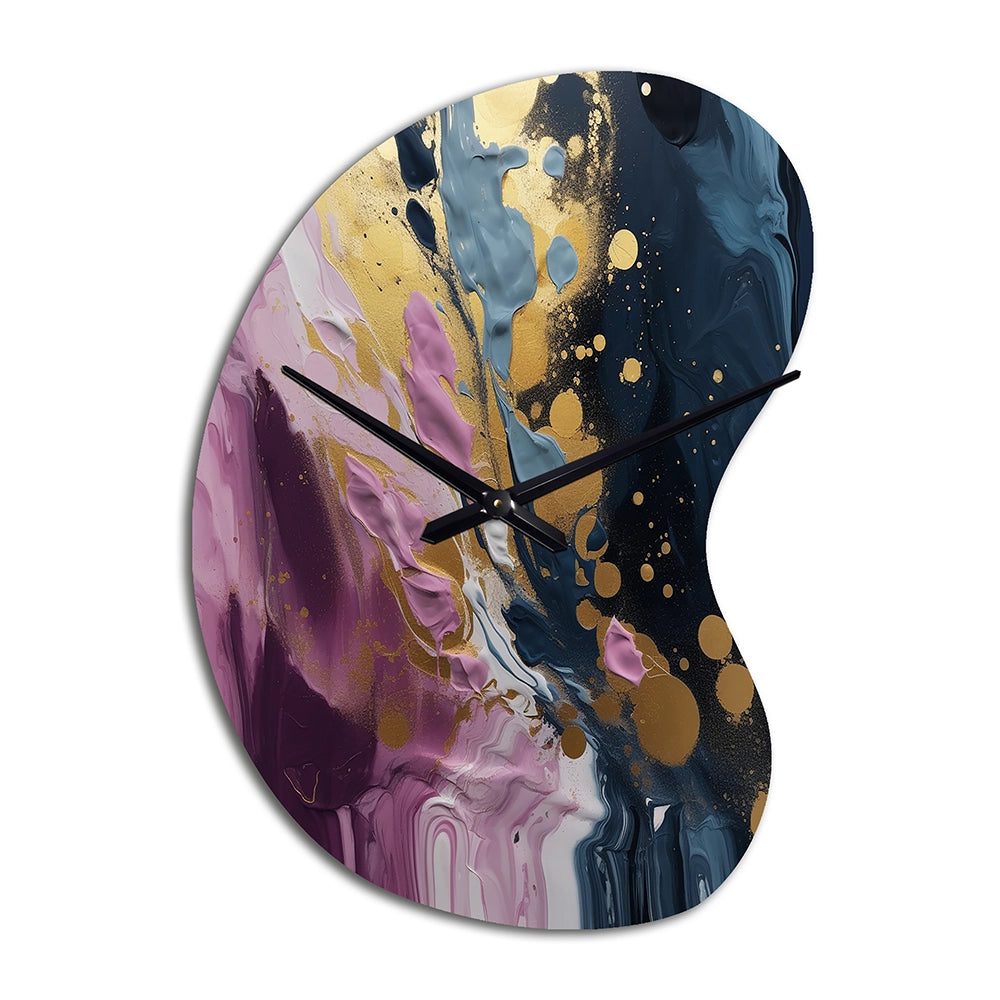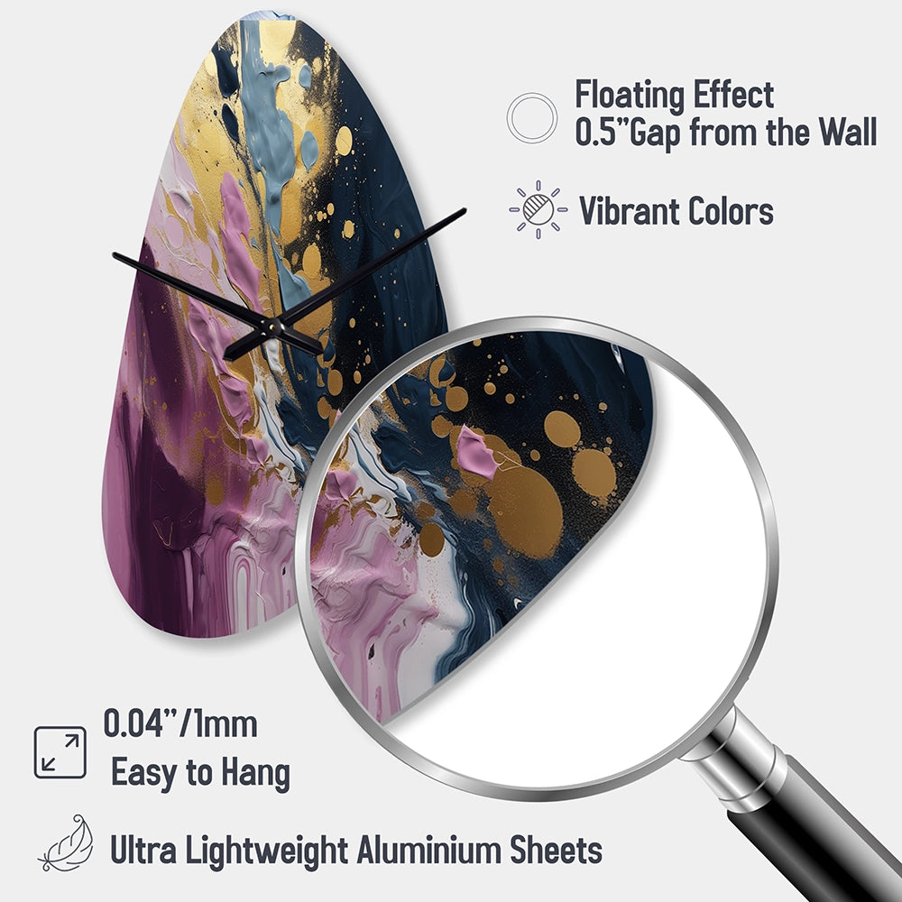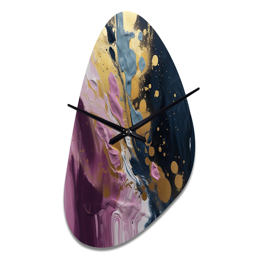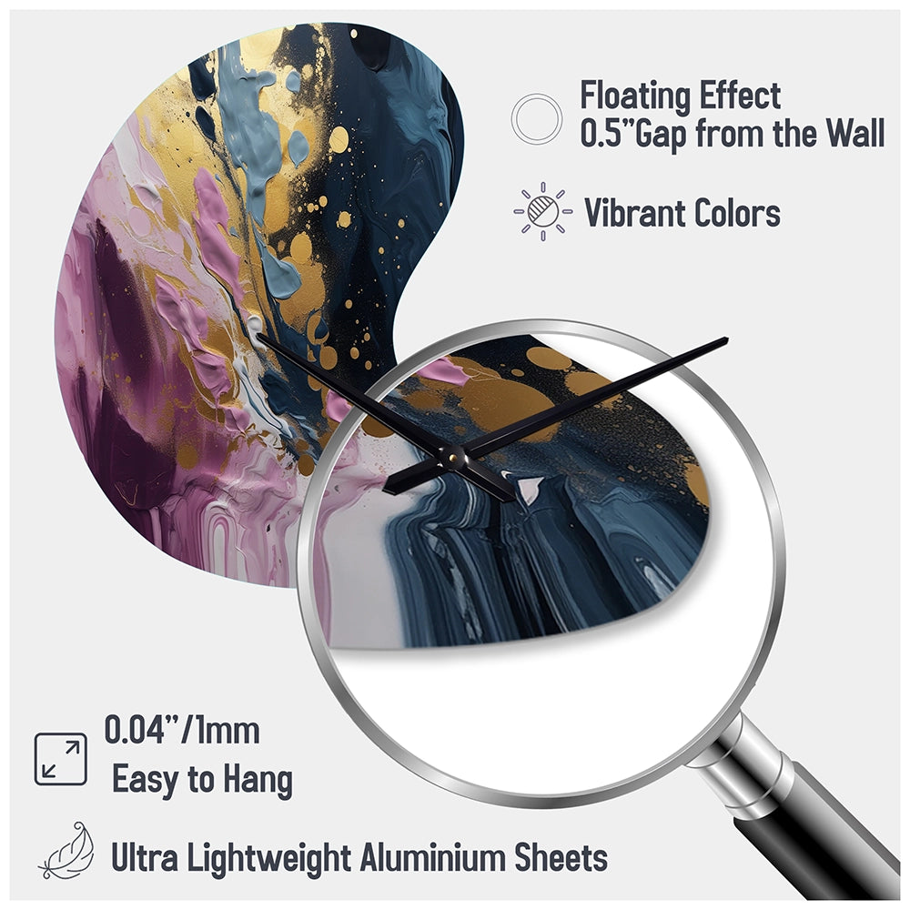 Purple And Blue Movements In Paint III - Asymmetric Metal Wall Clock