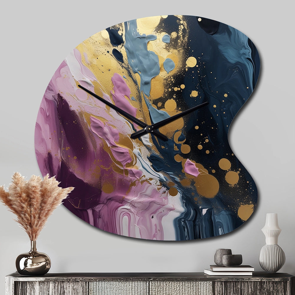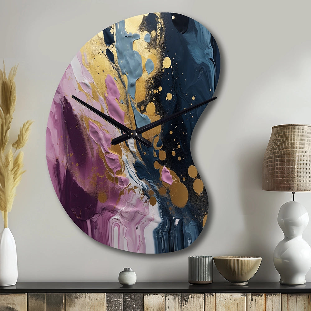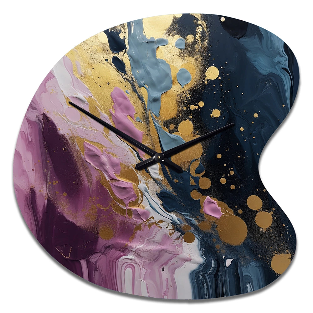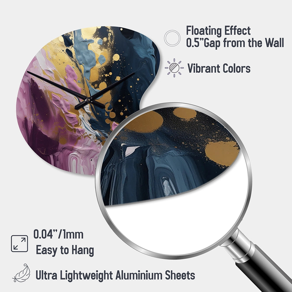 Purple And Blue Movements In Paint III - Asymmetric Metal Wall Clock