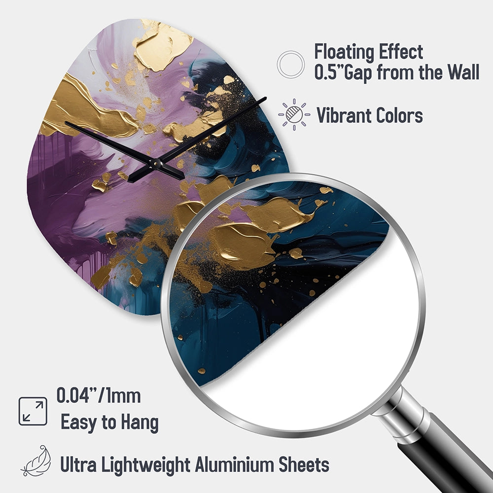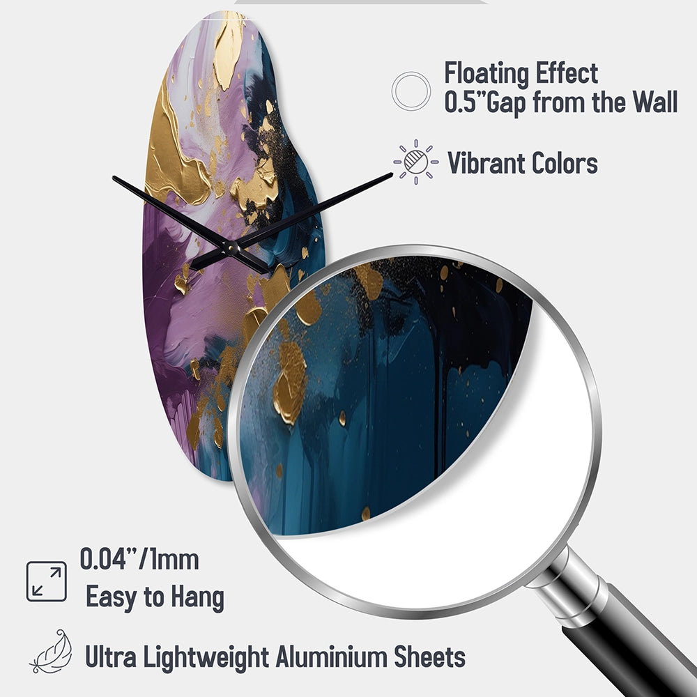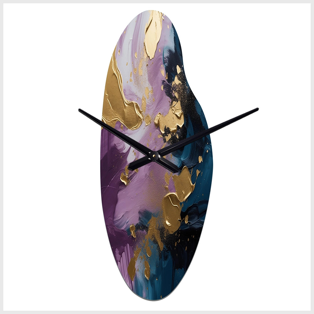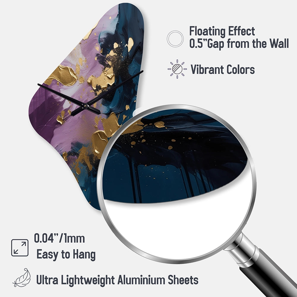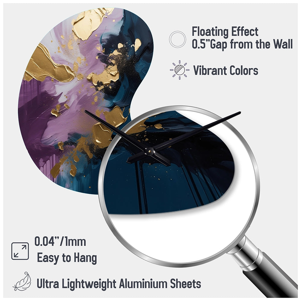 Elevate your space with this Modern asymmetrical metal wall Clock. Our handcrafted metal wall sculptures combine modern design with artistic elegance, creating a striking focal point in any room. This asymmetric metal wall Clock features unique, irregular shapes that bring dynamic movement and depth to your walls. Perfect for Abstract decor, these Purple irregular metal wall sculptures are printed on aluminum panel, with extra gloss ensuring long-lasting beauty. Ideal for living rooms, offices decor, or entrance, this statement piece adds a bold, Abstract touch to any decor.