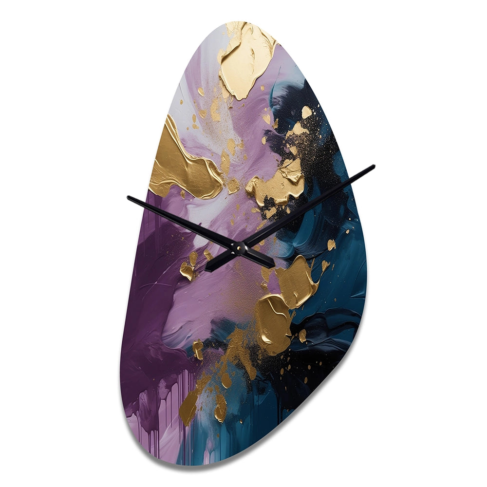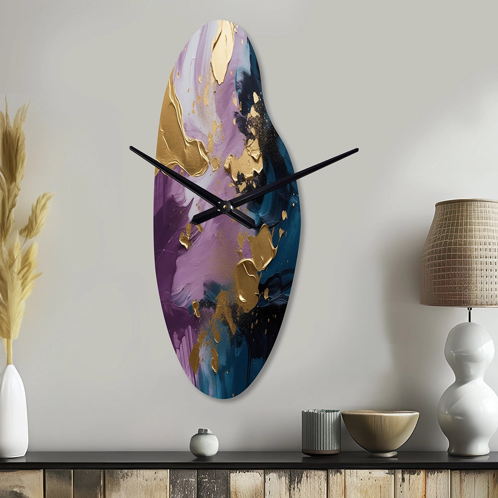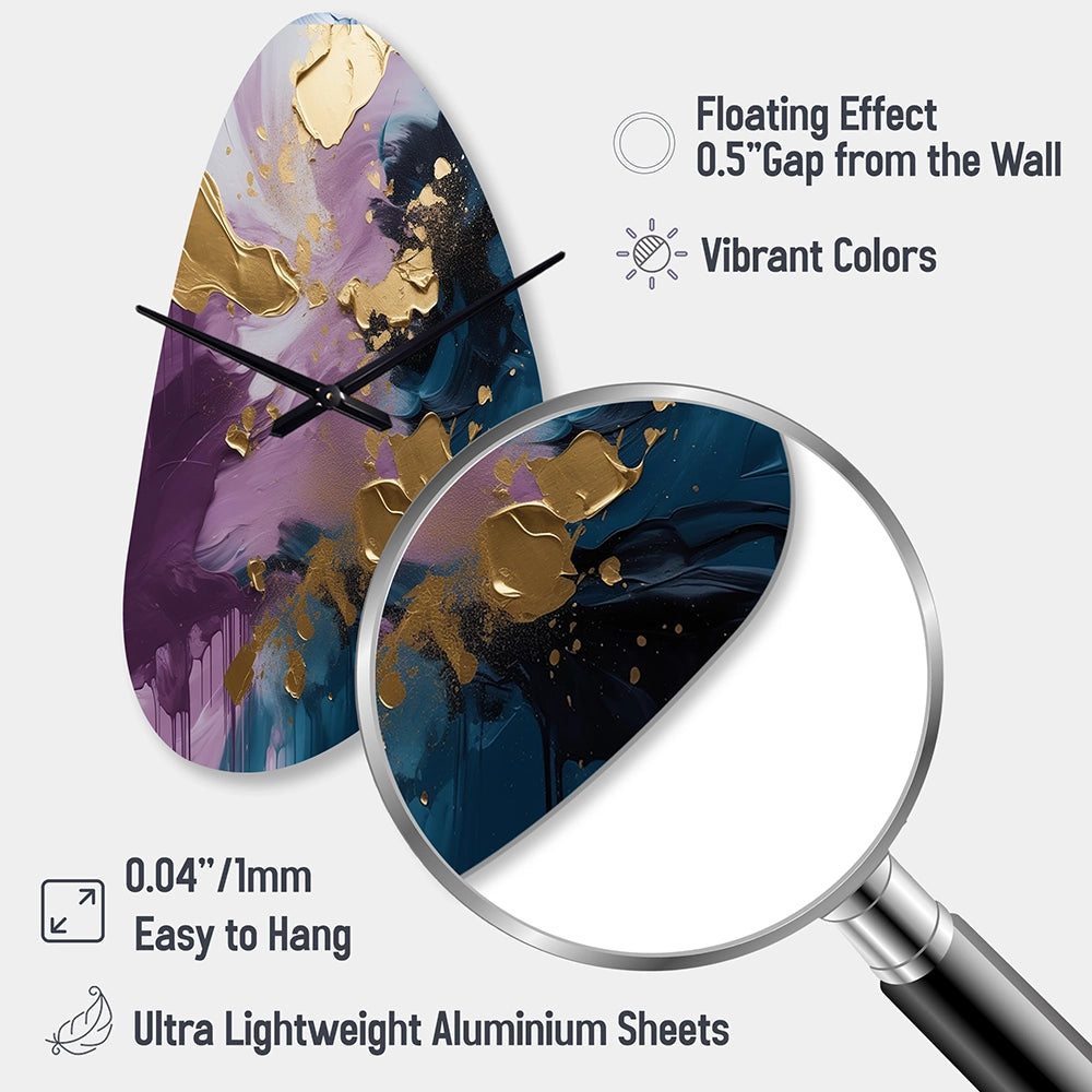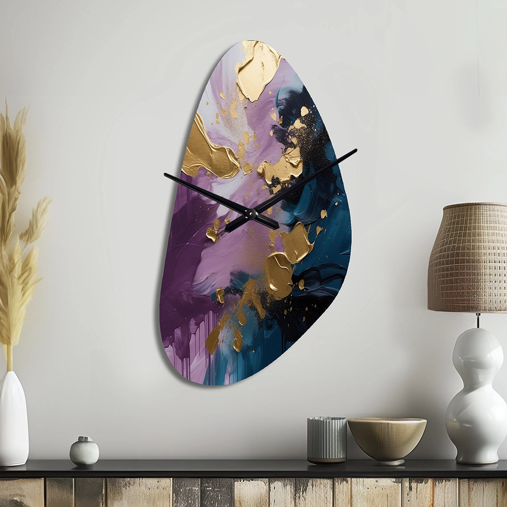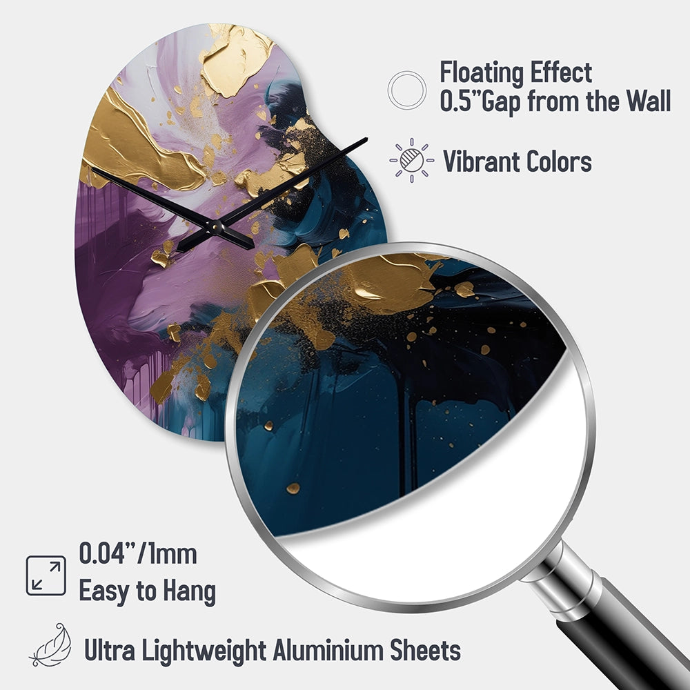 Elevate your space with this Modern asymmetrical metal wall Clock. Our handcrafted metal wall sculptures combine modern design with artistic elegance, creating a striking focal point in any room. This asymmetric metal wall Clock features unique, irregular shapes that bring dynamic movement and depth to your walls. Perfect for Abstract decor, these Purple irregular metal wall sculptures are printed on aluminum panel, with extra gloss ensuring long-lasting beauty. Ideal for living rooms, offices decor, or entrance, this statement piece adds a bold, Abstract touch to any decor.