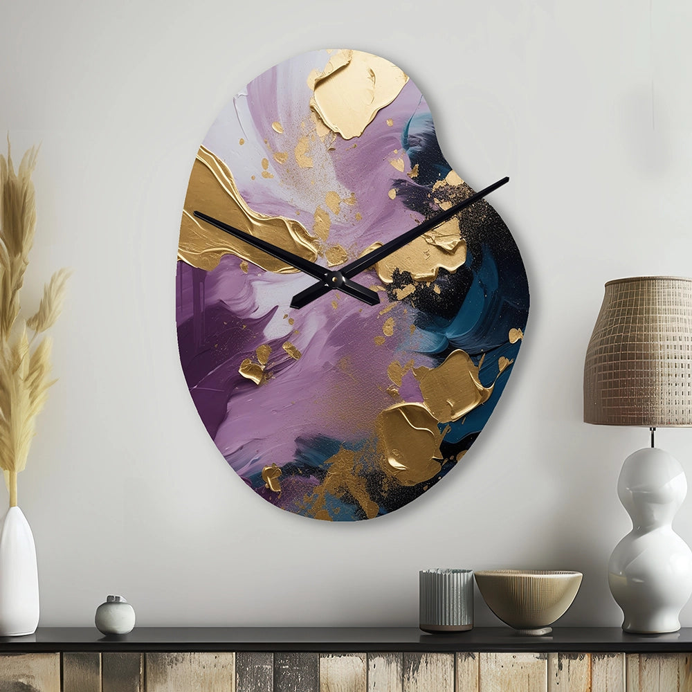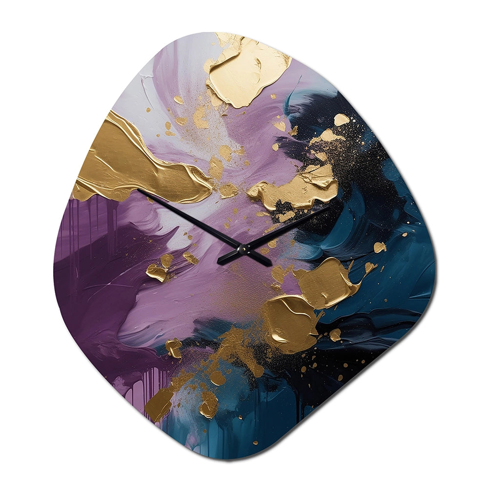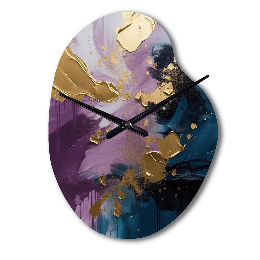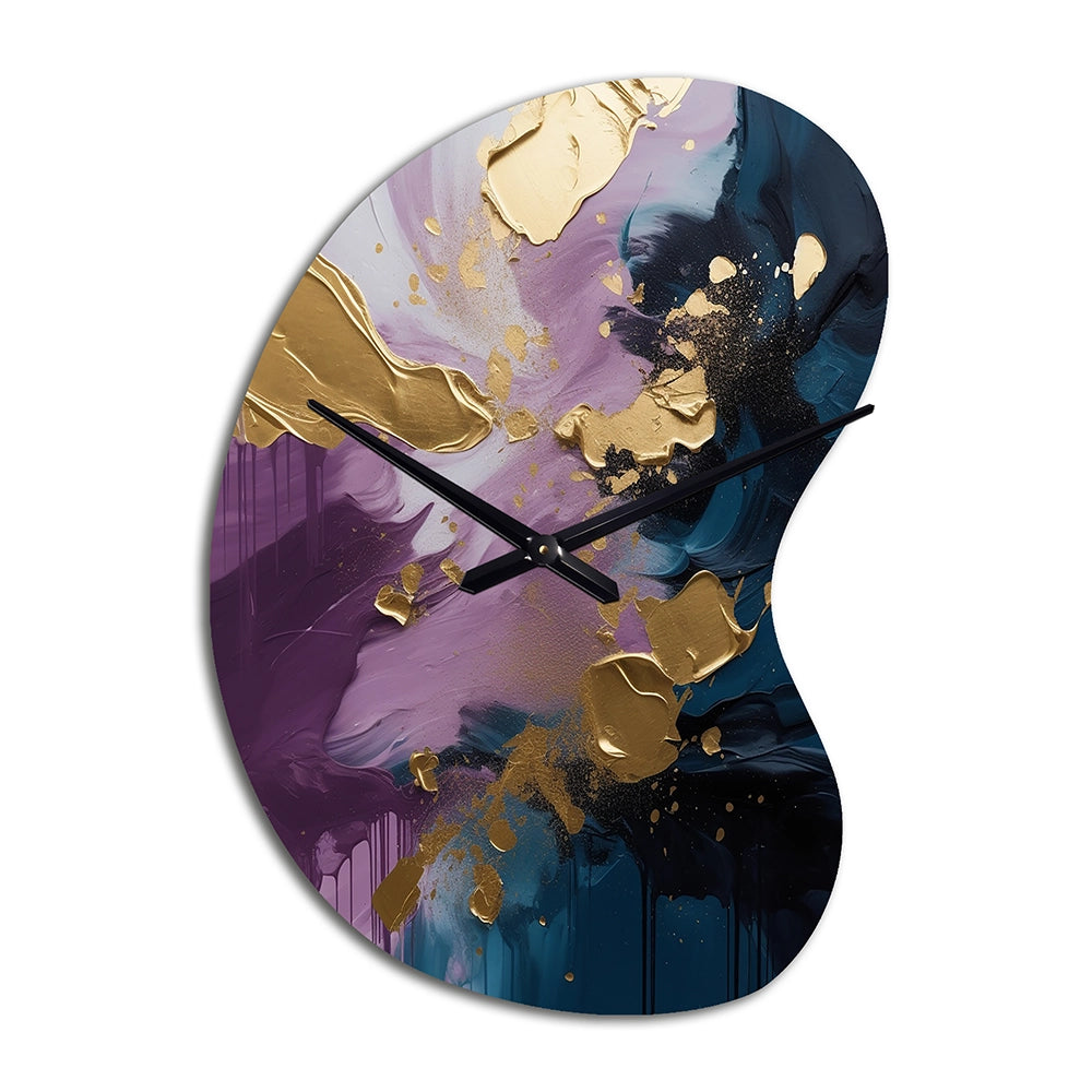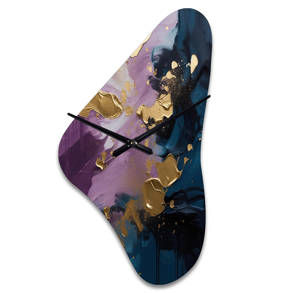 Elevate your space with this Modern asymmetrical metal wall Clock. Our handcrafted metal wall sculptures combine modern design with artistic elegance, creating a striking focal point in any room. This asymmetric metal wall Clock features unique, irregular shapes that bring dynamic movement and depth to your walls. Perfect for Abstract decor, these Purple irregular metal wall sculptures are printed on aluminum panel, with extra gloss ensuring long-lasting beauty. Ideal for living rooms, offices decor, or entrance, this statement piece adds a bold, Abstract touch to any decor.