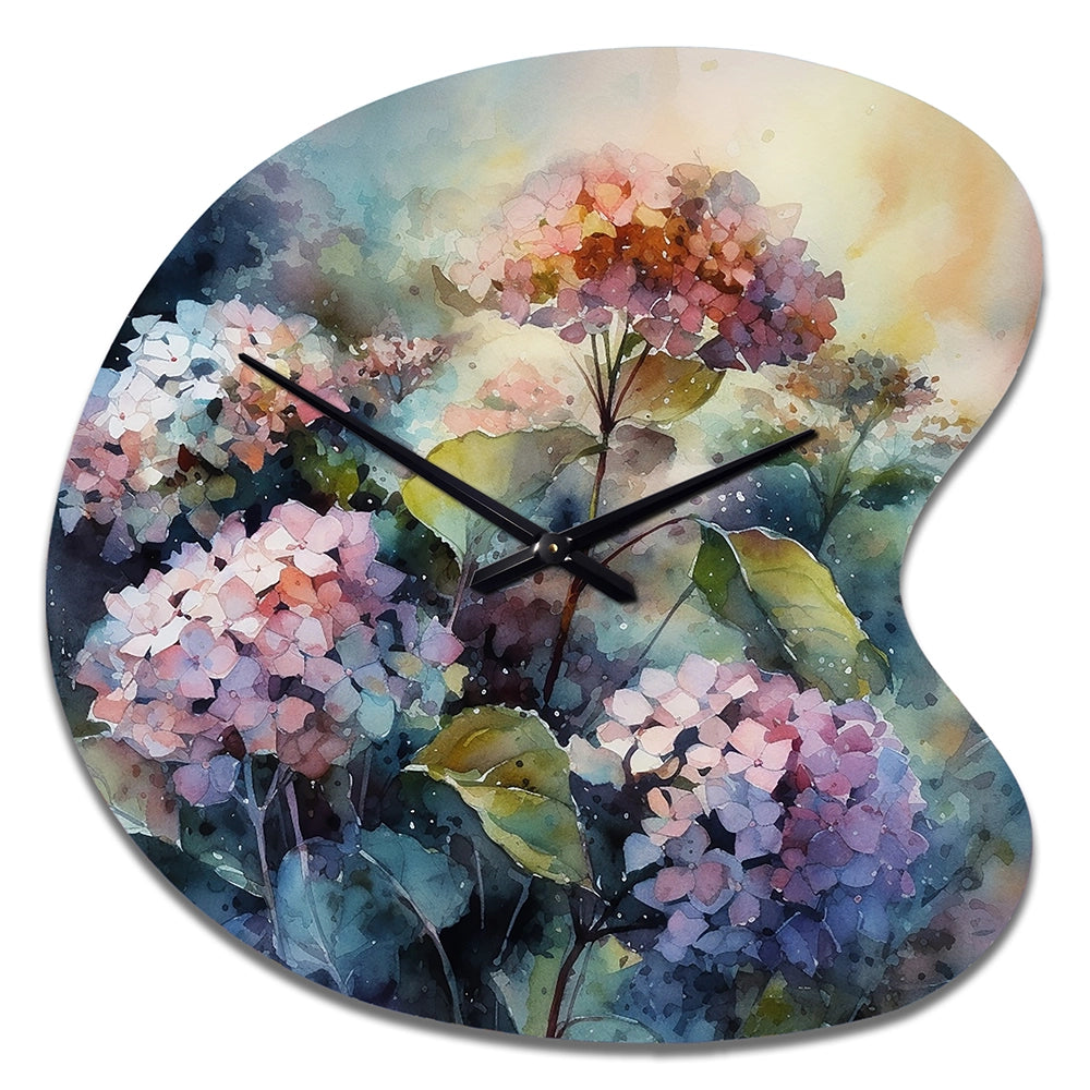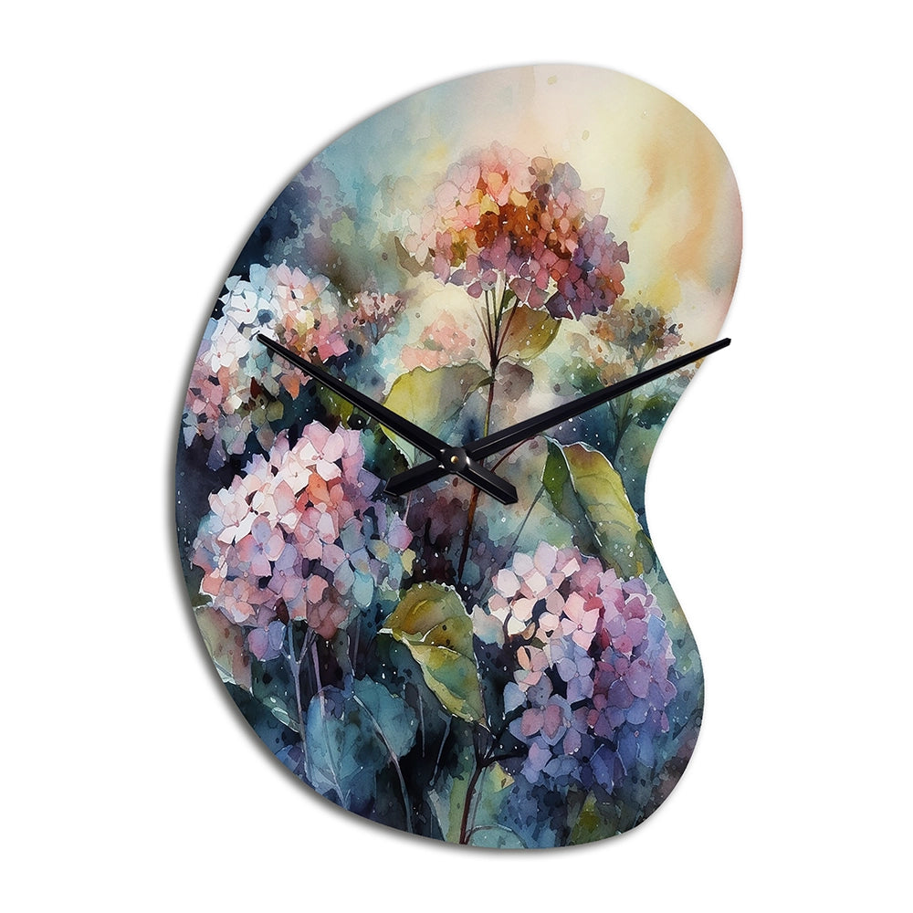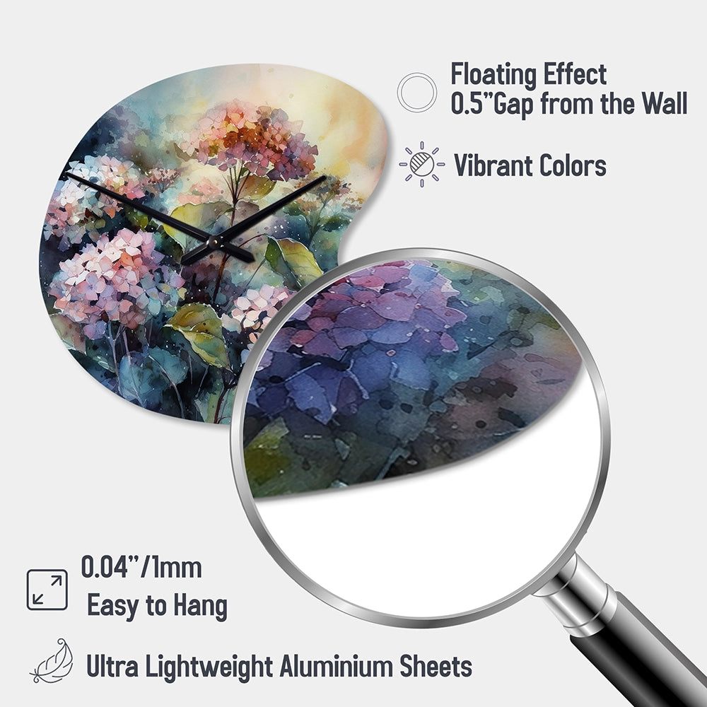 Purple Green Hydrangea II - Asymmetric Metal Wall Clock