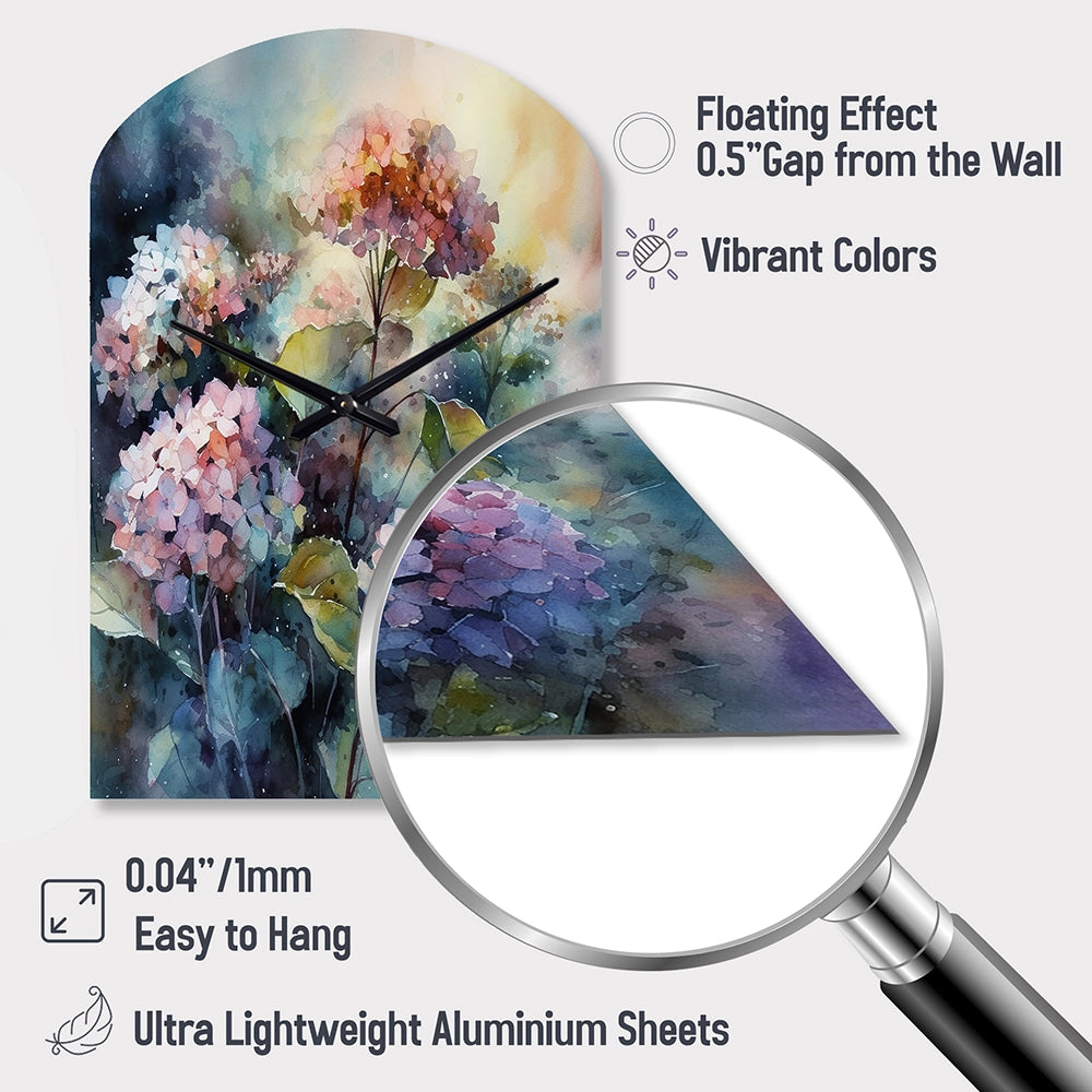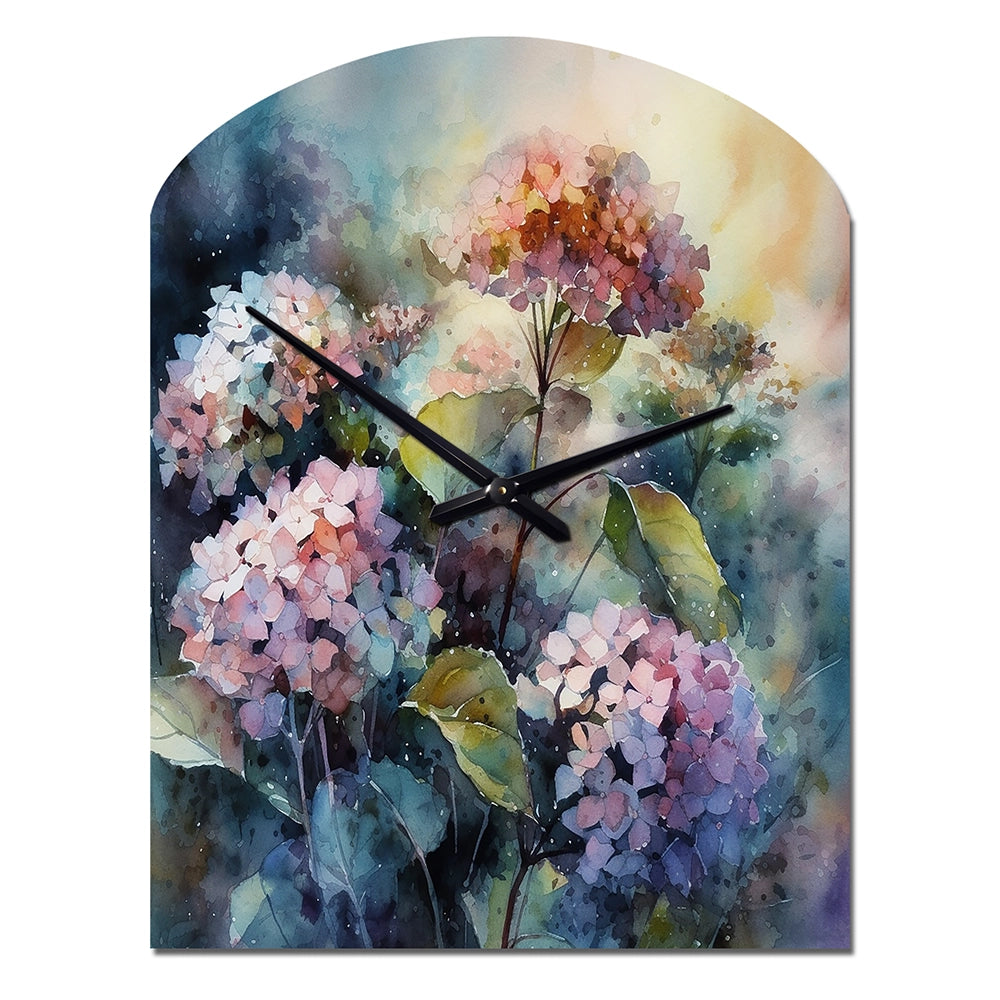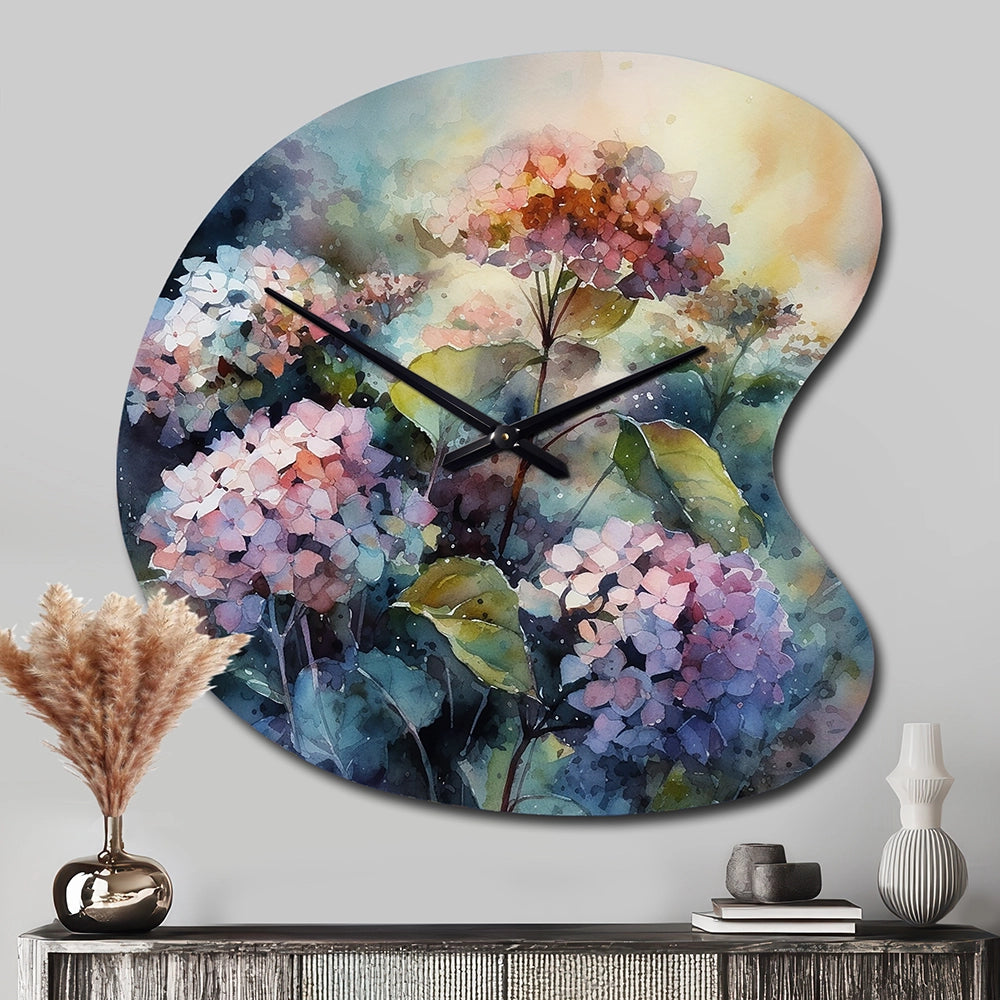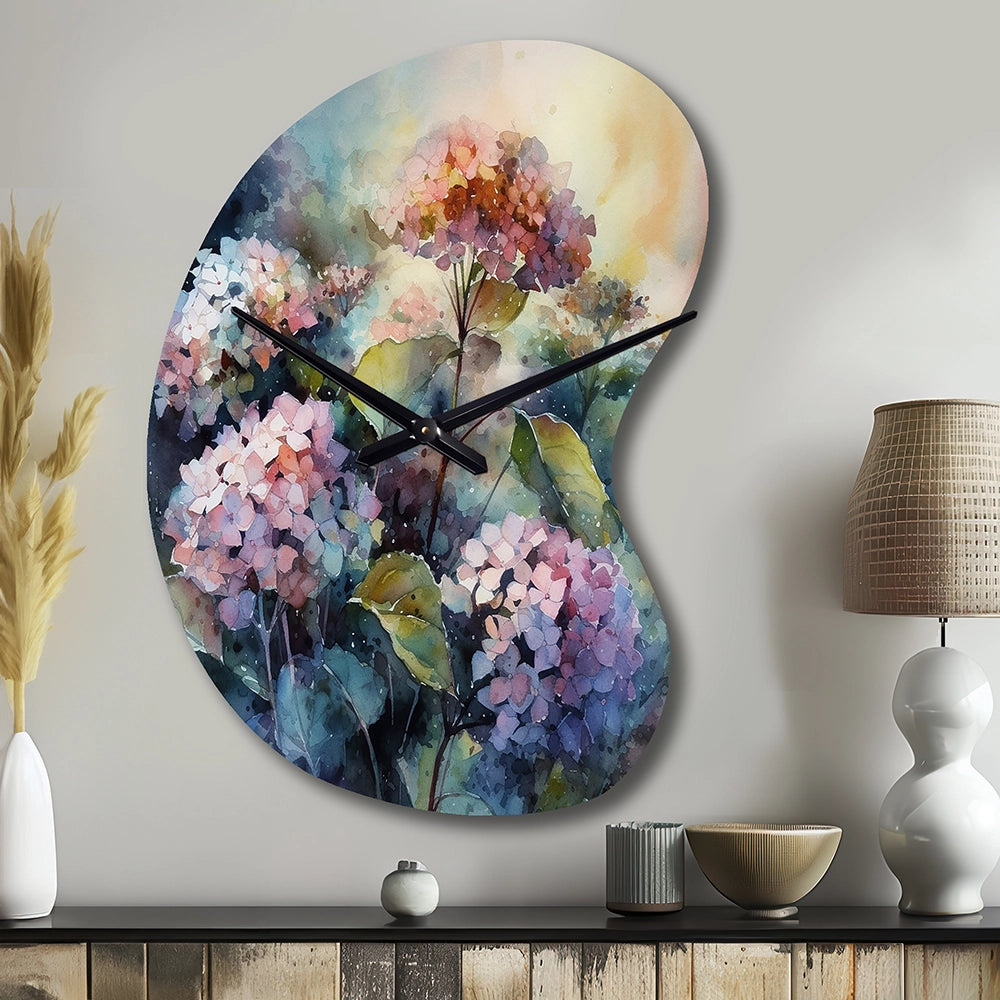 Purple Green Hydrangea II - Asymmetric Metal Wall Clock
