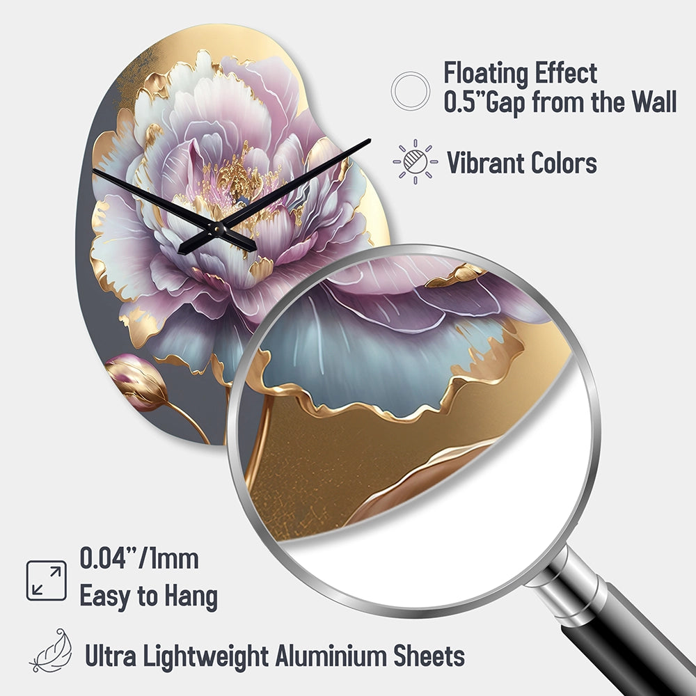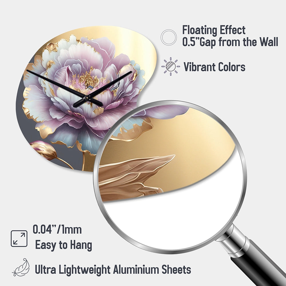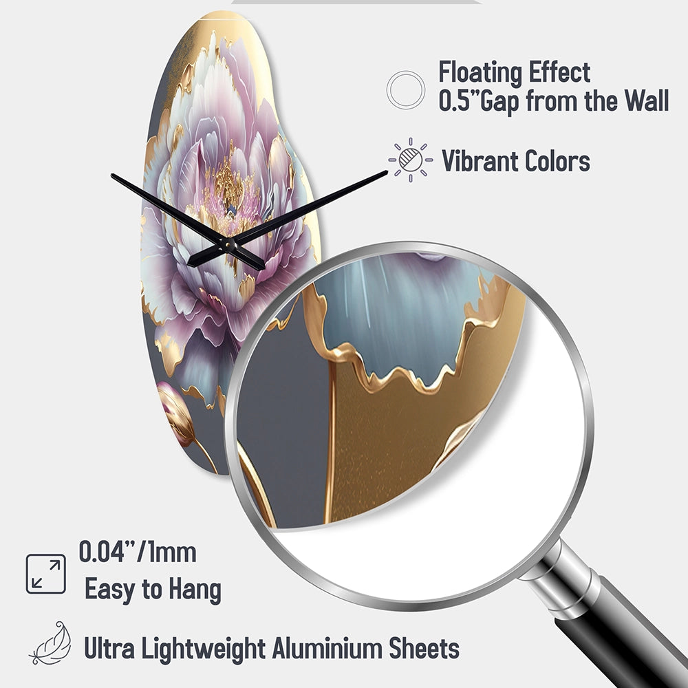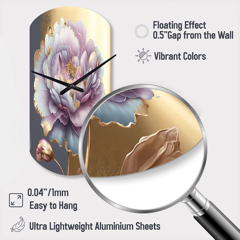 Purple Hue Single Flower I - Asymmetric Metal Wall Clock