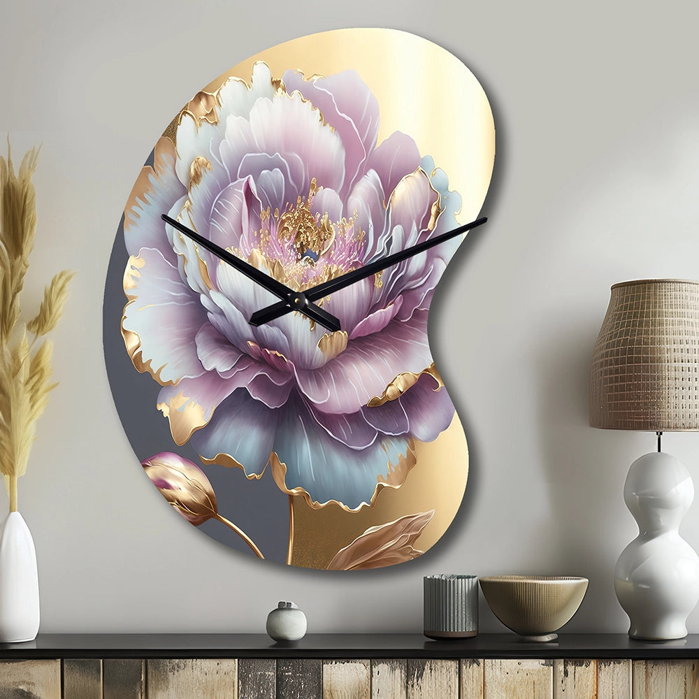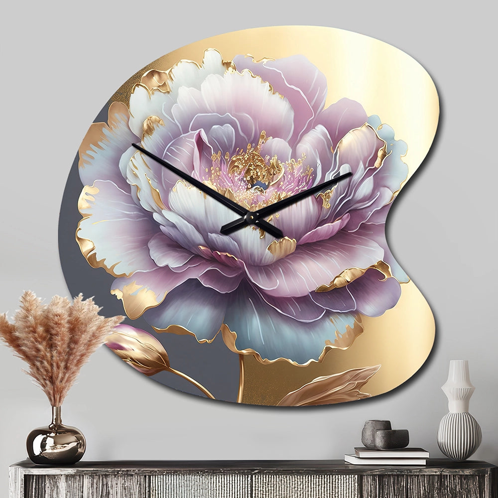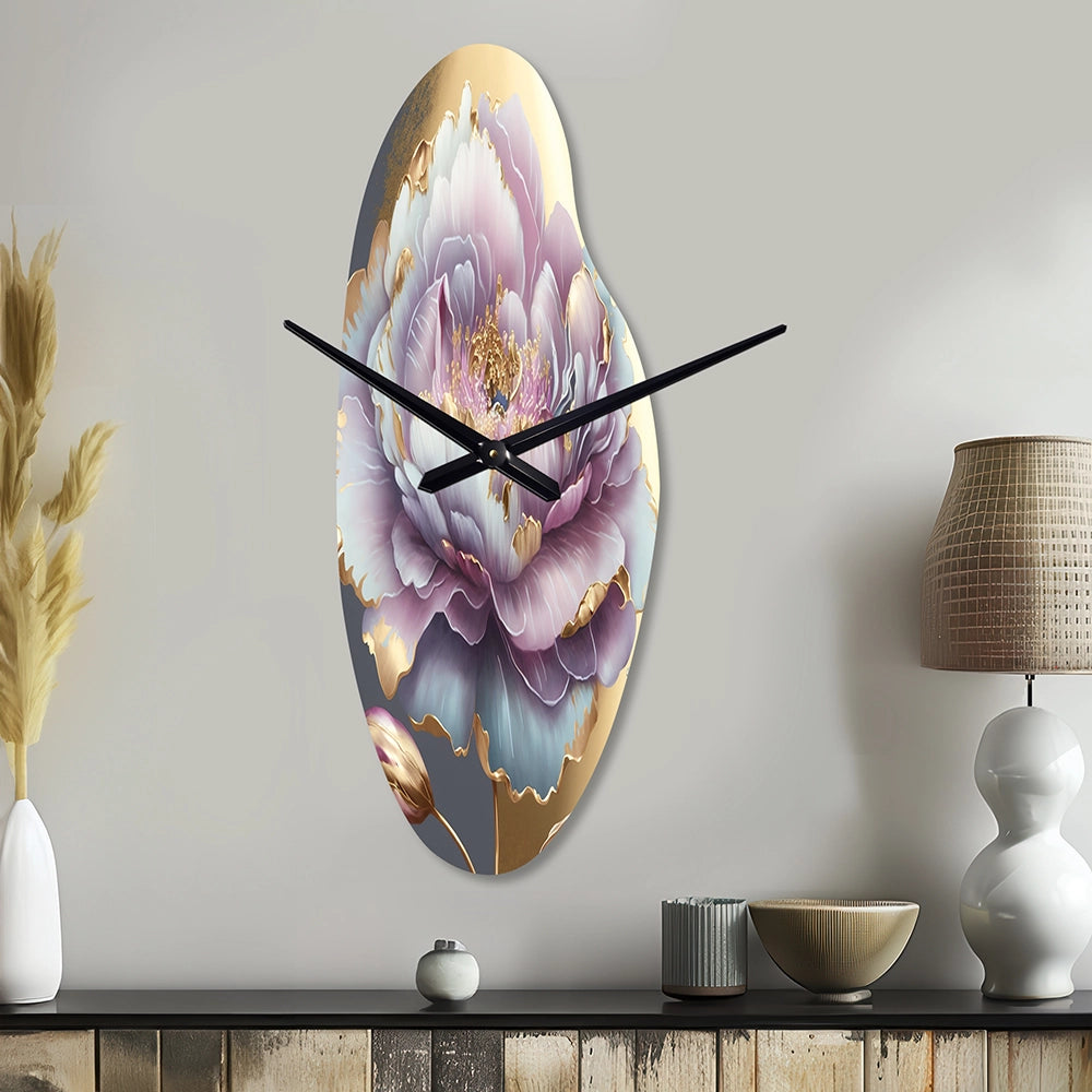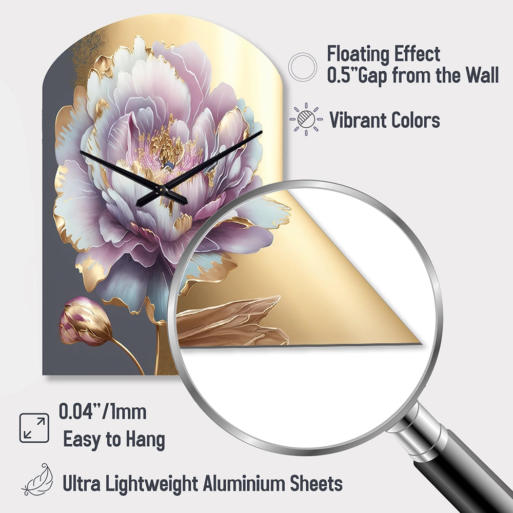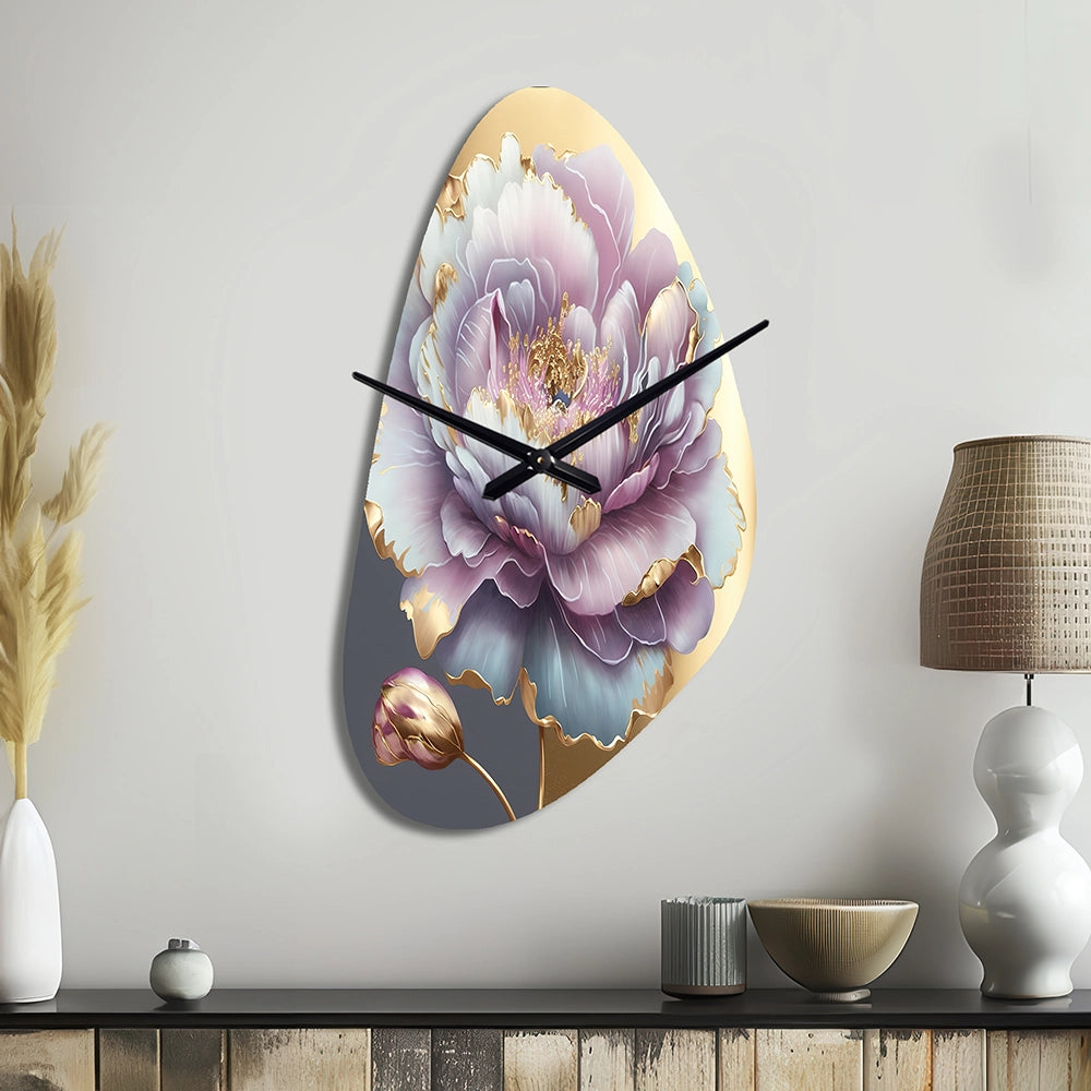 Purple Hue Single Flower I - Asymmetric Metal Wall Clock