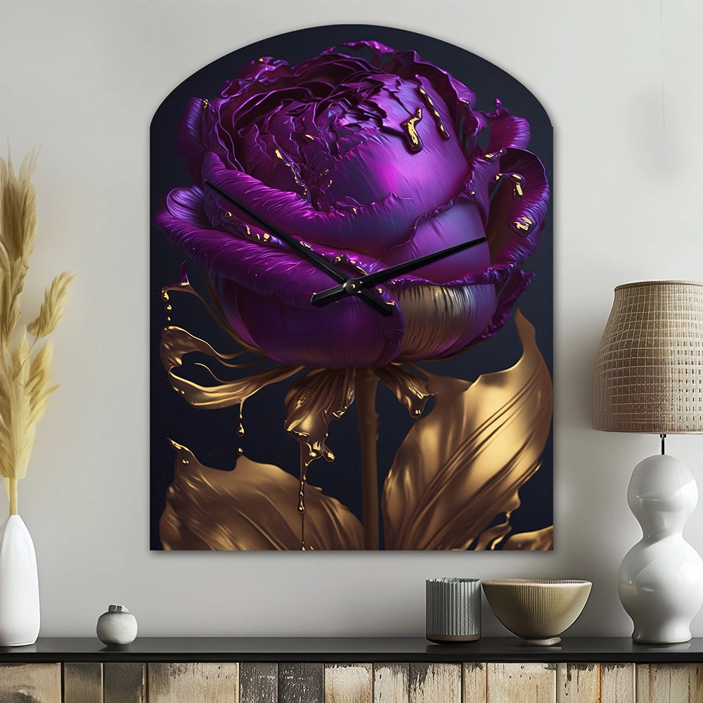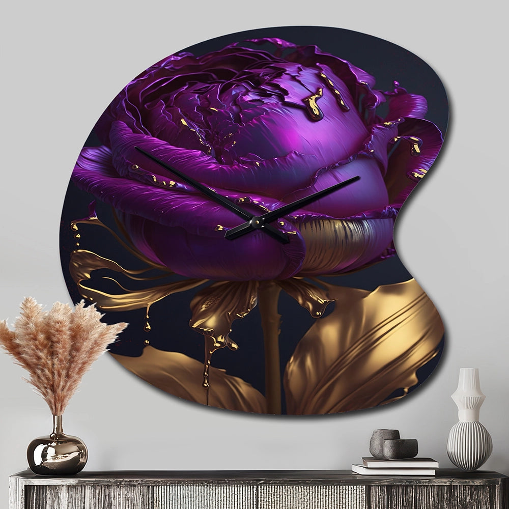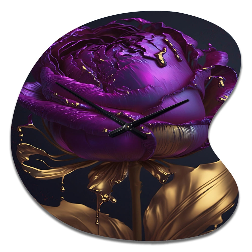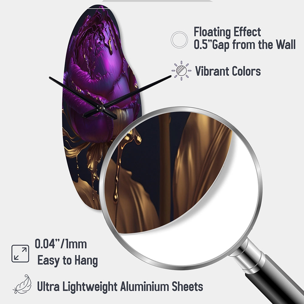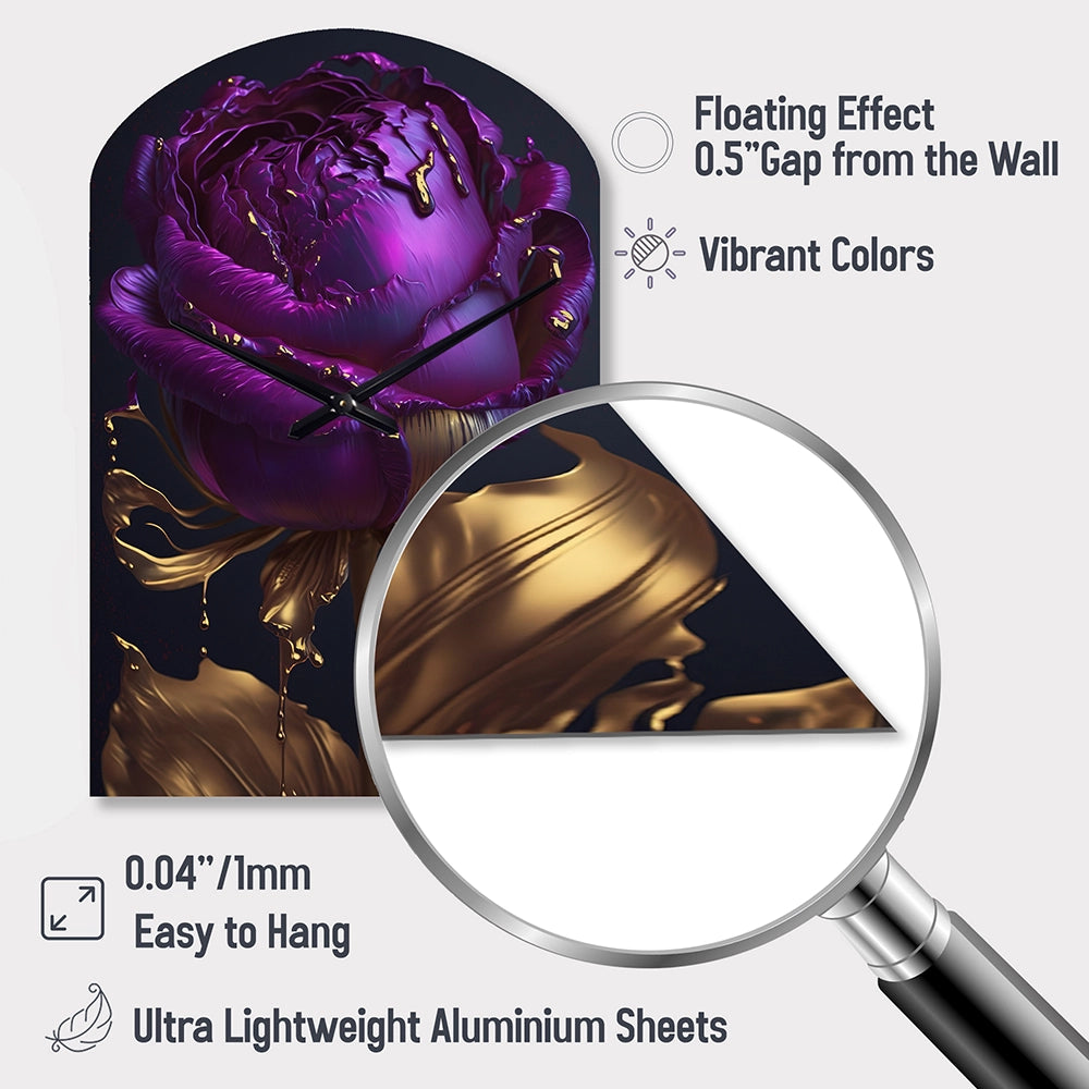 Purple Peony Liquid Gold III - Asymmetric Metal Wall Clock