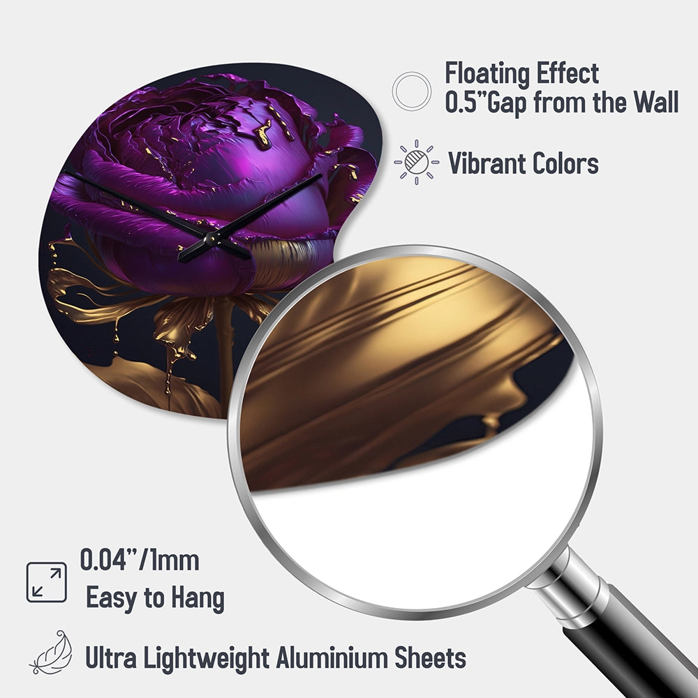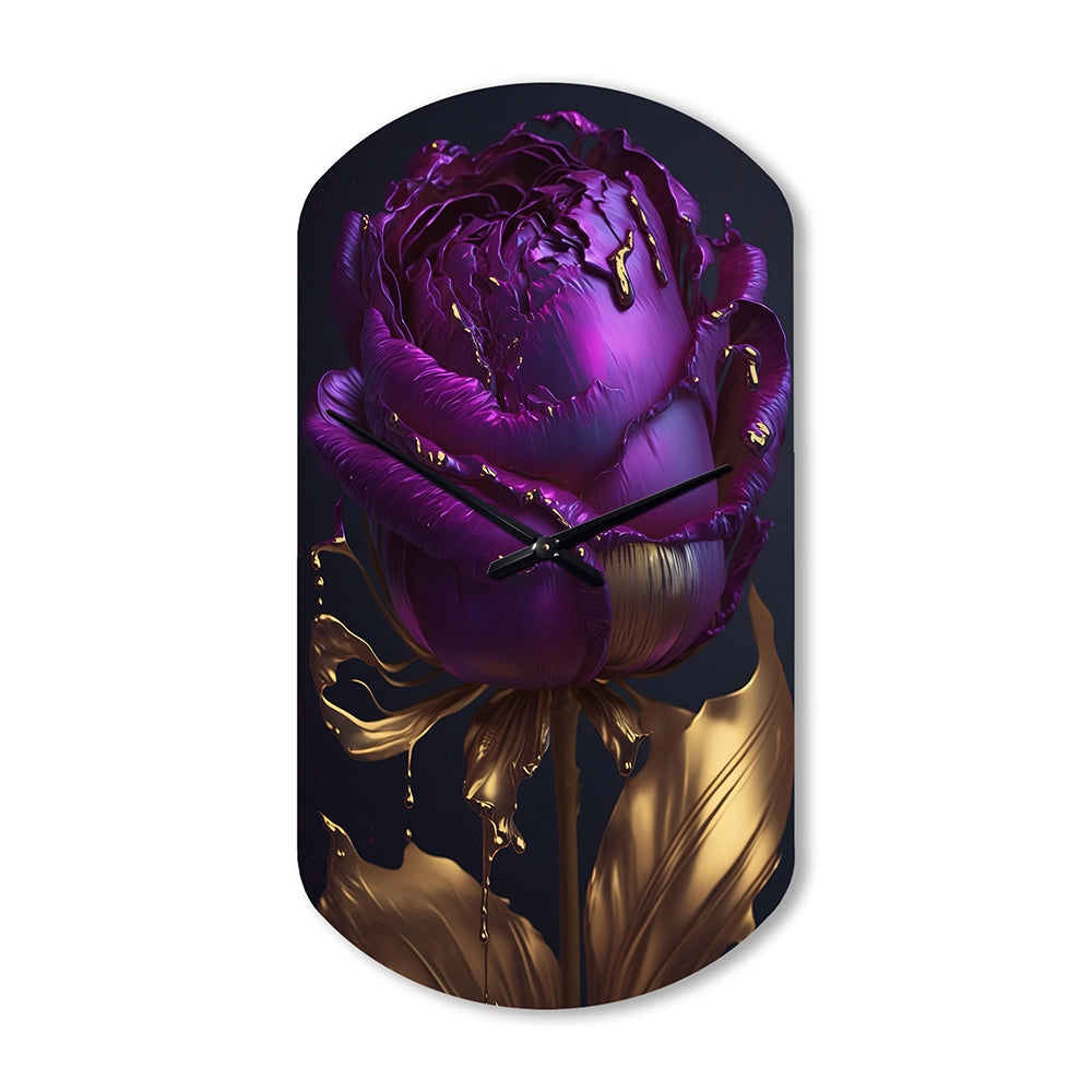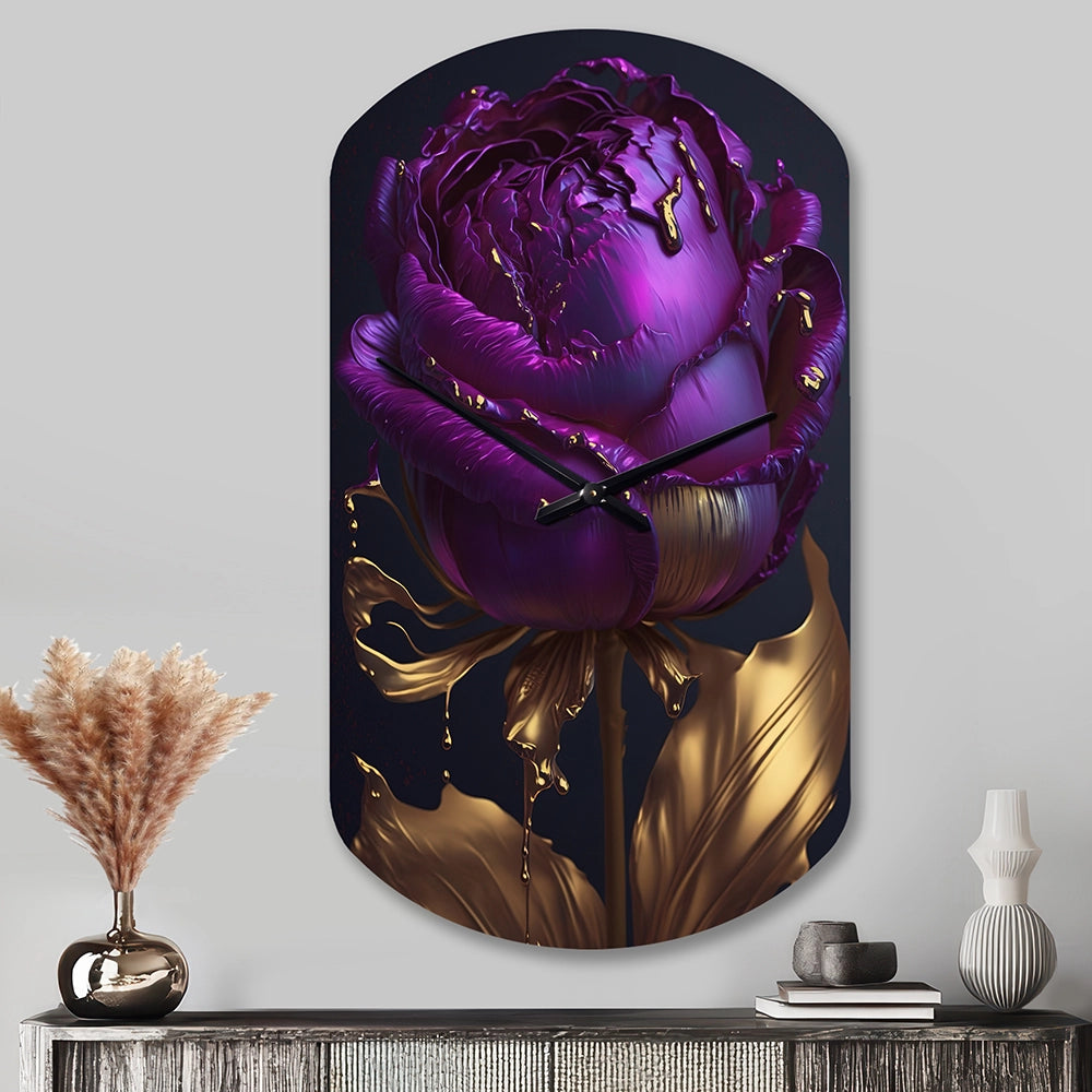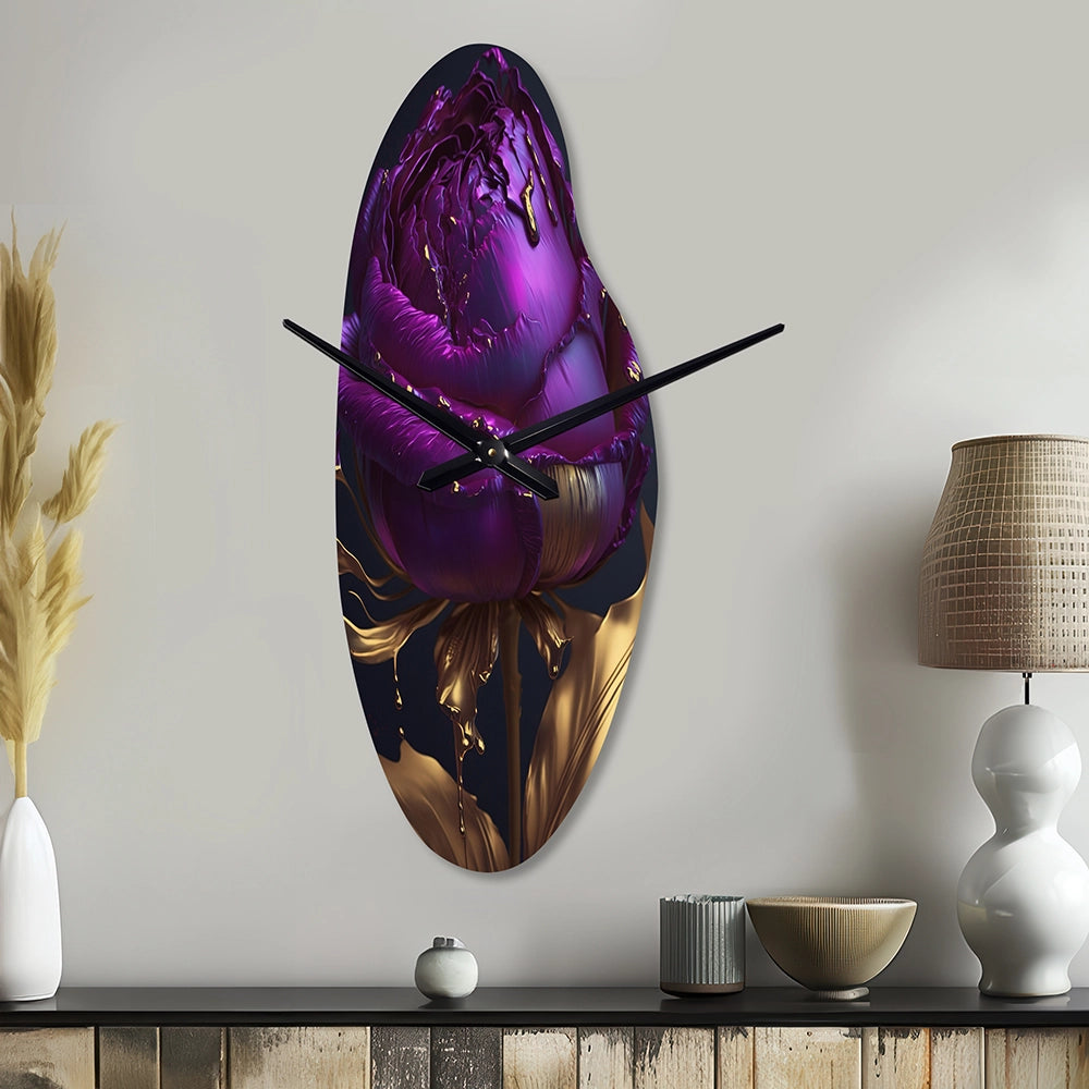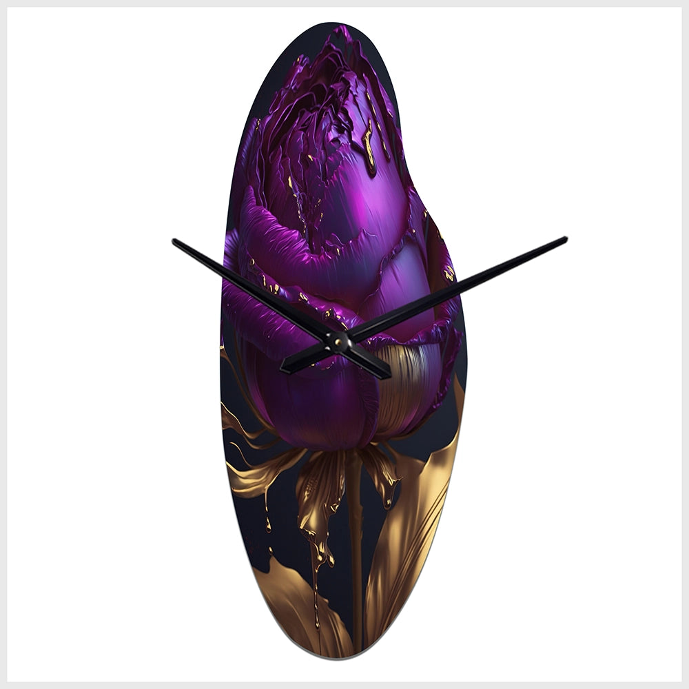Purple Peony Liquid Gold III - Asymmetric Metal Wall Clock