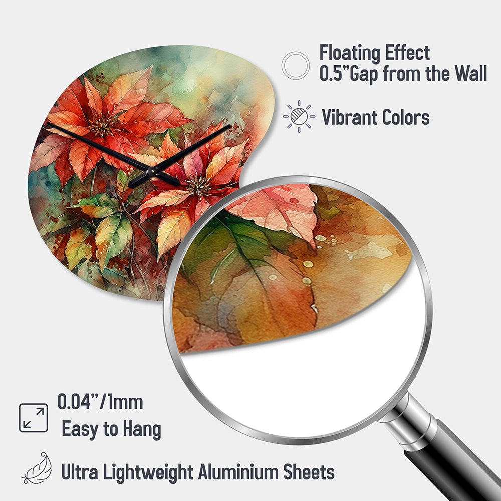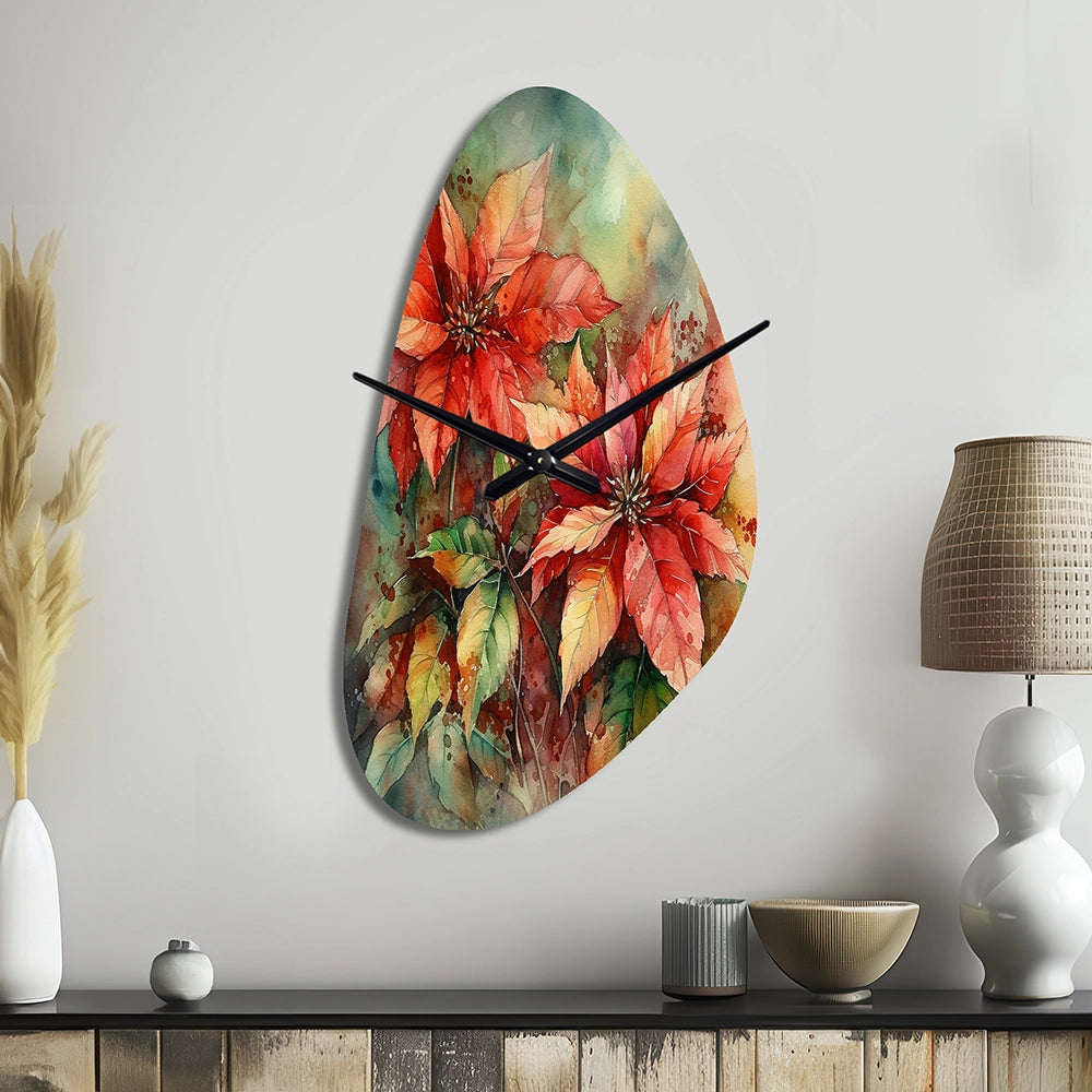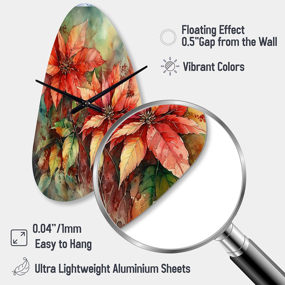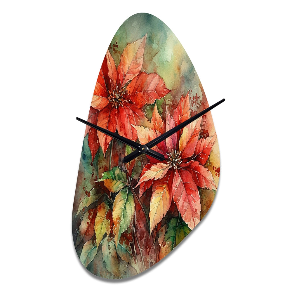Red Blossoming Poinsettias II - Asymmetric Metal Wall Clock