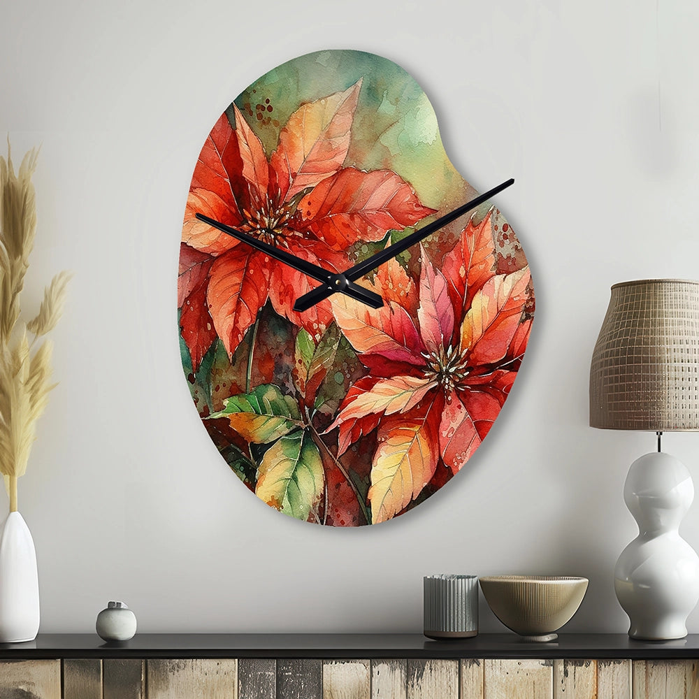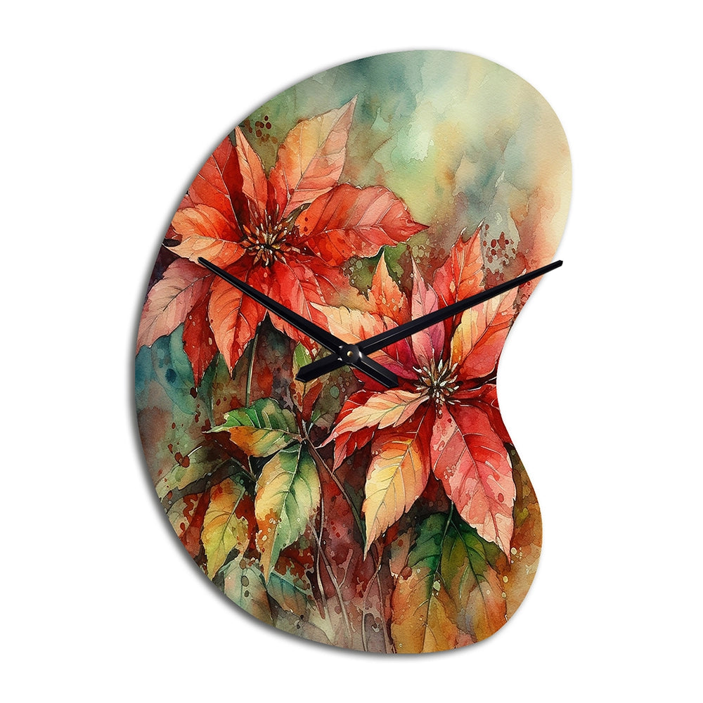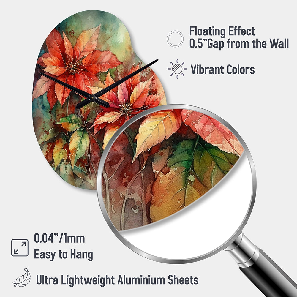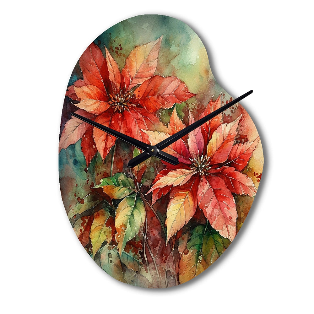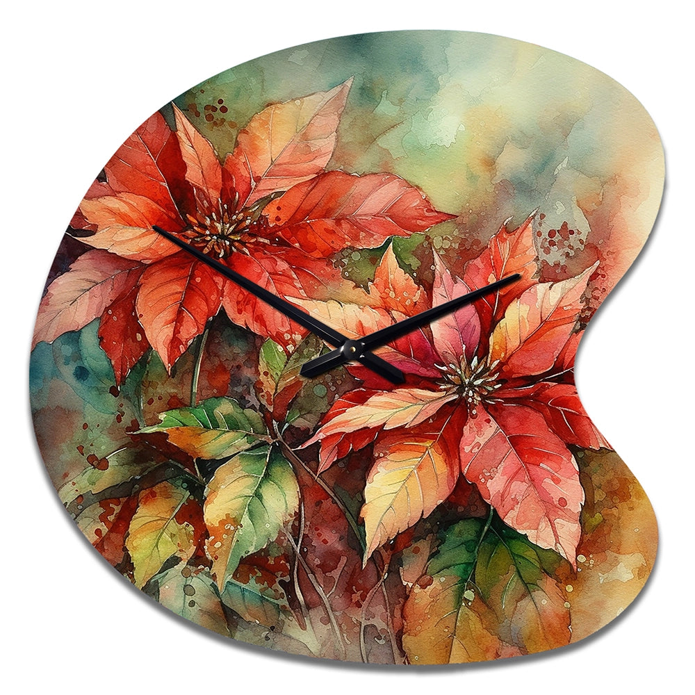 Red Blossoming Poinsettias II - Asymmetric Metal Wall Clock