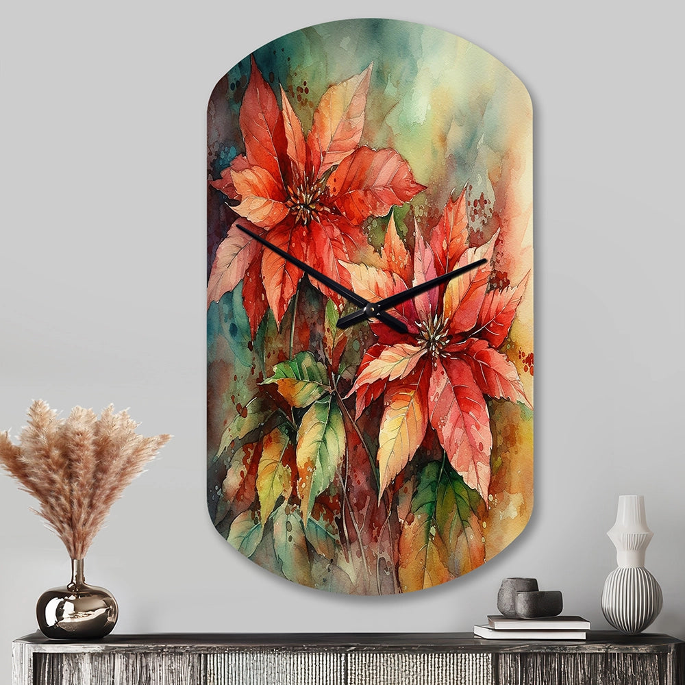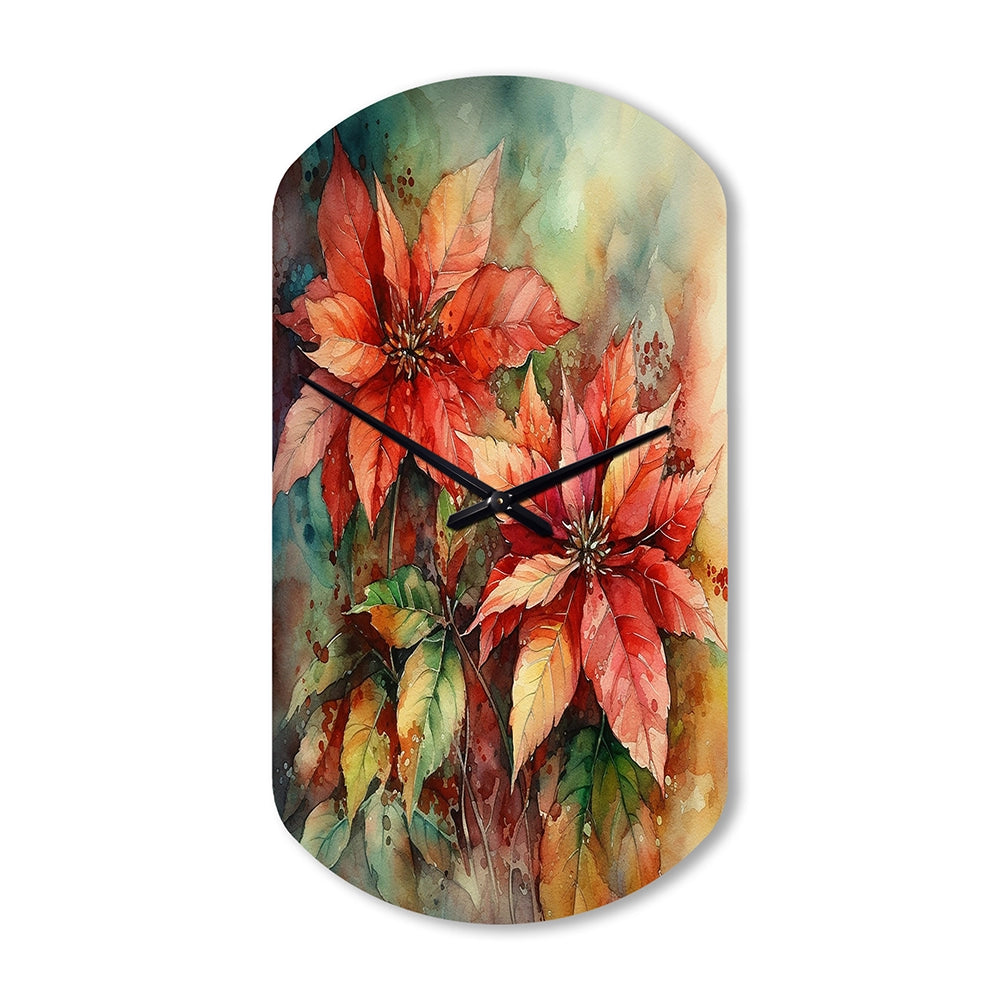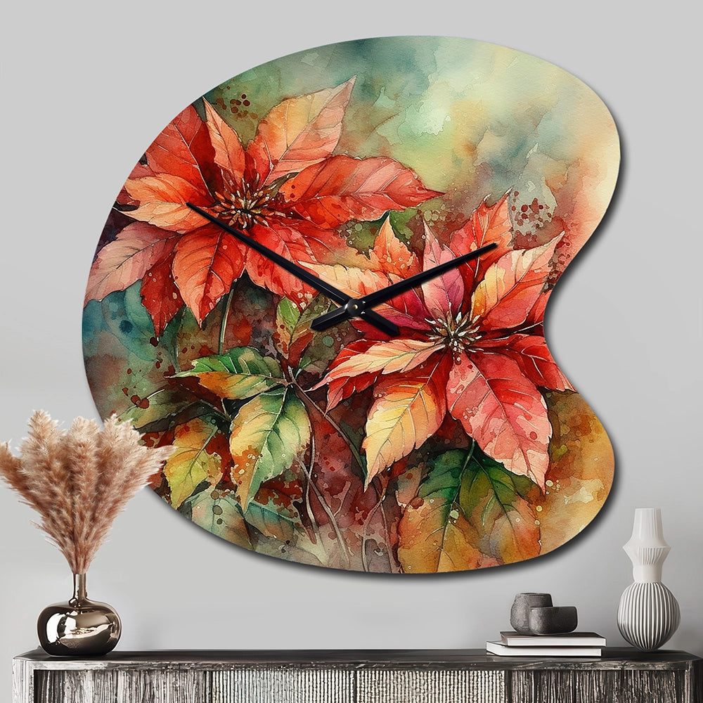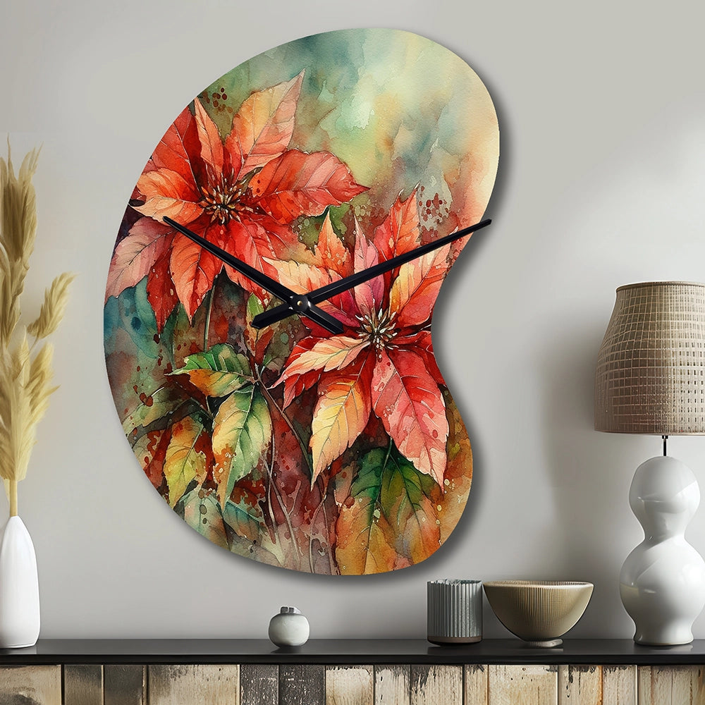 Red Blossoming Poinsettias II - Asymmetric Metal Wall Clock