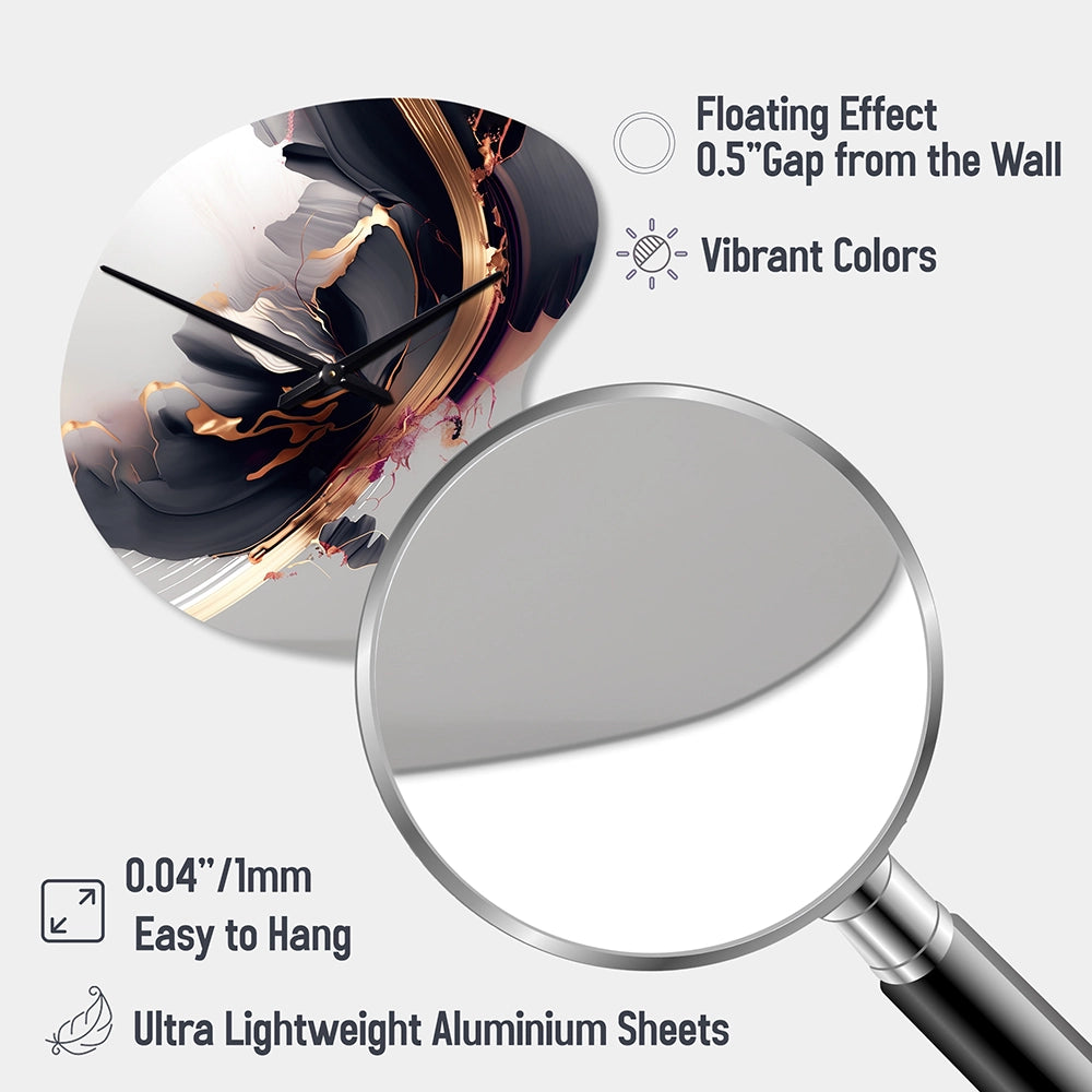 Elevate your space with this Modern asymmetrical metal wall Clock. Our handcrafted metal wall sculptures combine modern design with artistic elegance, creating a striking focal point in any room. This asymmetric metal wall Clock features unique, irregular shapes that bring dynamic movement and depth to your walls. Perfect for Abstract decor, these Gold irregular metal wall sculptures are printed on aluminum panel, with extra gloss ensuring long-lasting beauty. Ideal for living rooms, offices decor, or entrance, this statement piece adds a bold, Abstract touch to any decor.