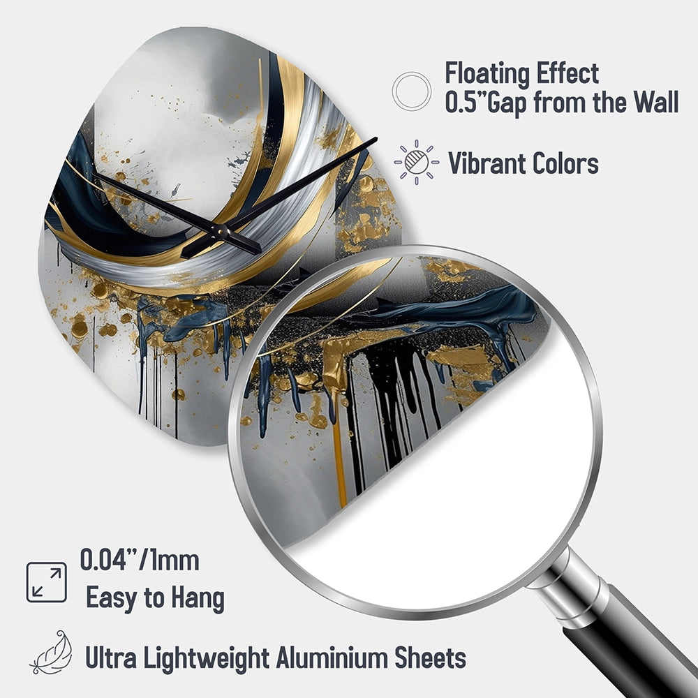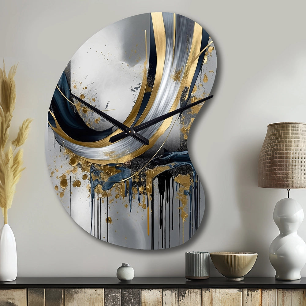 Elevate your space with this Modern asymmetrical metal wall Clock. Our handcrafted metal wall sculptures combine modern design with artistic elegance, creating a striking focal point in any room. This asymmetric metal wall Clock features unique, irregular shapes that bring dynamic movement and depth to your walls. Perfect for Abstract decor, these Gold irregular metal wall sculptures are printed on aluminum panel, with extra gloss ensuring long-lasting beauty. Ideal for living rooms, offices decor, or entrance, this statement piece adds a bold, Abstract touch to any decor.