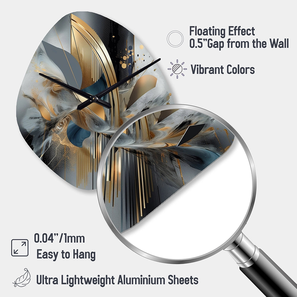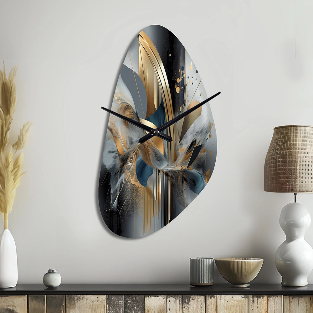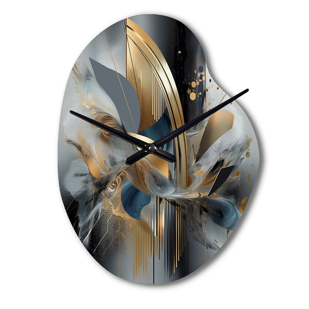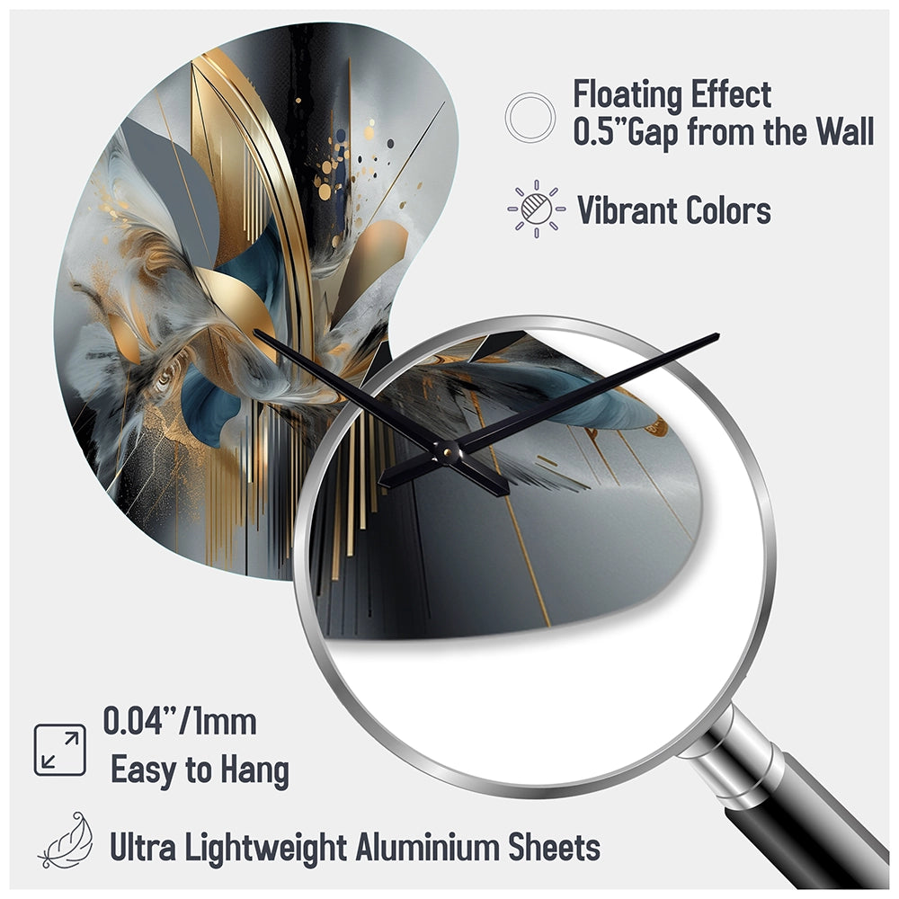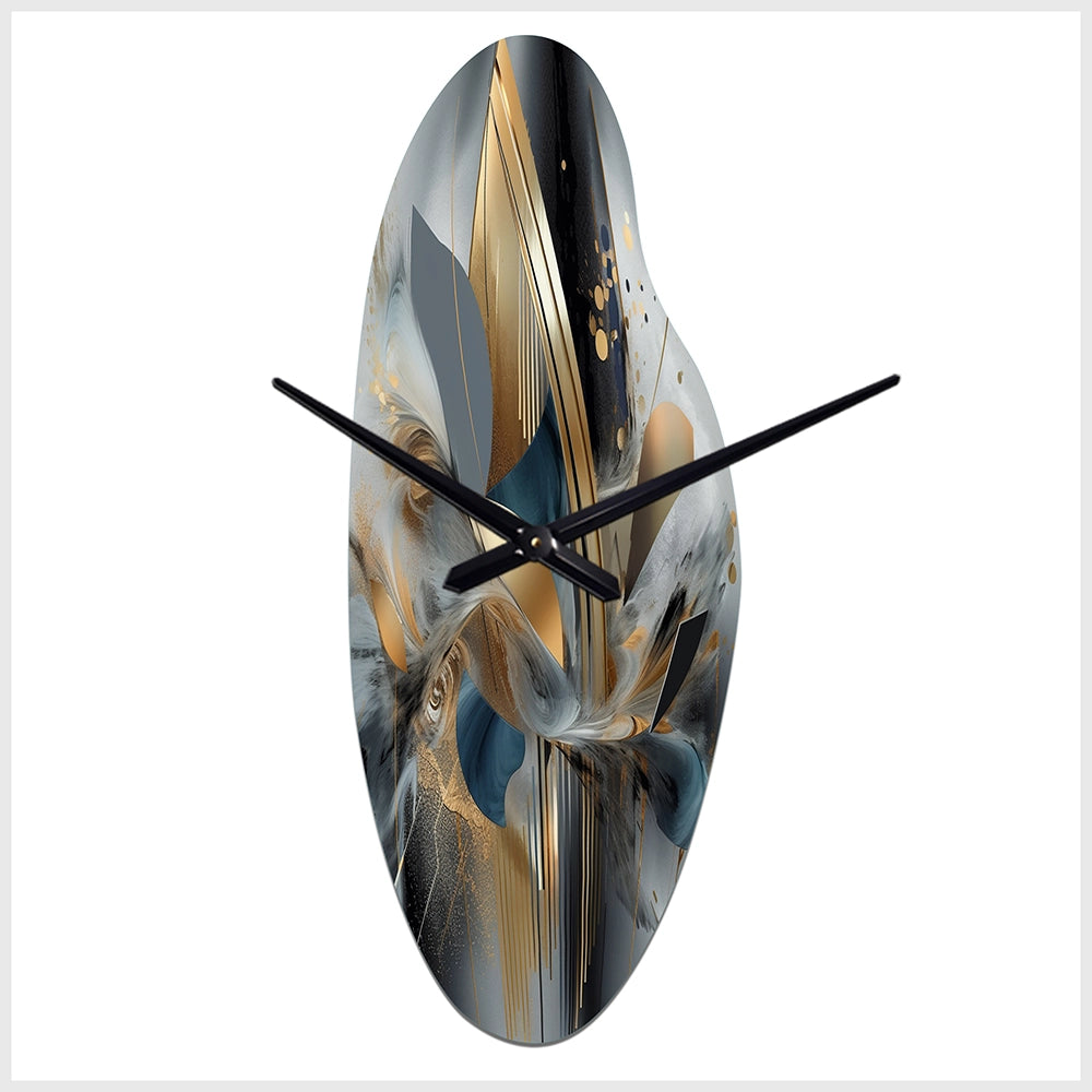 Elevate your space with this Modern asymmetrical metal wall Clock. Our handcrafted metal wall sculptures combine modern design with artistic elegance, creating a striking focal point in any room. This asymmetric metal wall Clock features unique, irregular shapes that bring dynamic movement and depth to your walls. Perfect for Abstract decor, these Gold irregular metal wall sculptures are printed on aluminum panel, with extra gloss ensuring long-lasting beauty. Ideal for living rooms, offices decor, or entrance, this statement piece adds a bold, Abstract touch to any decor.