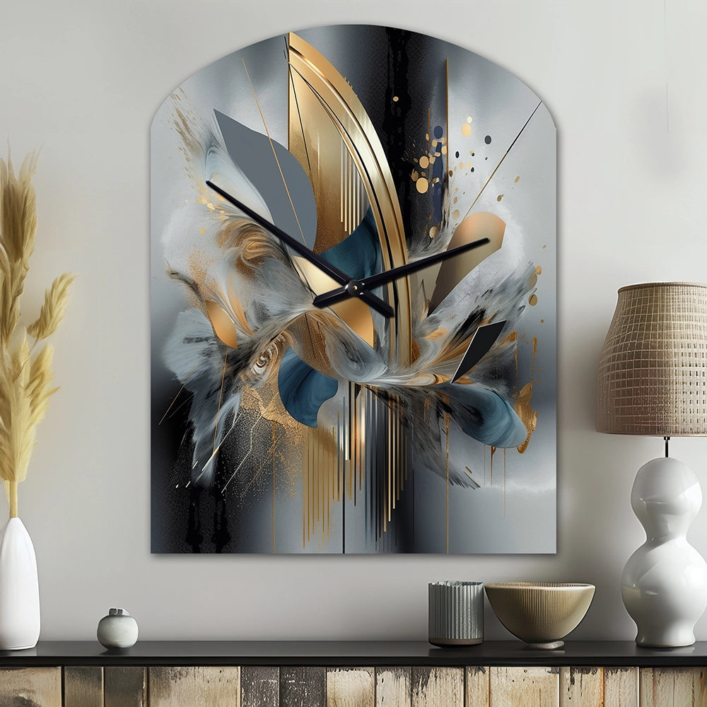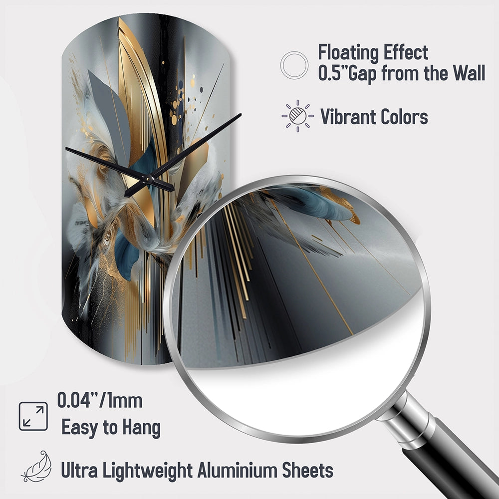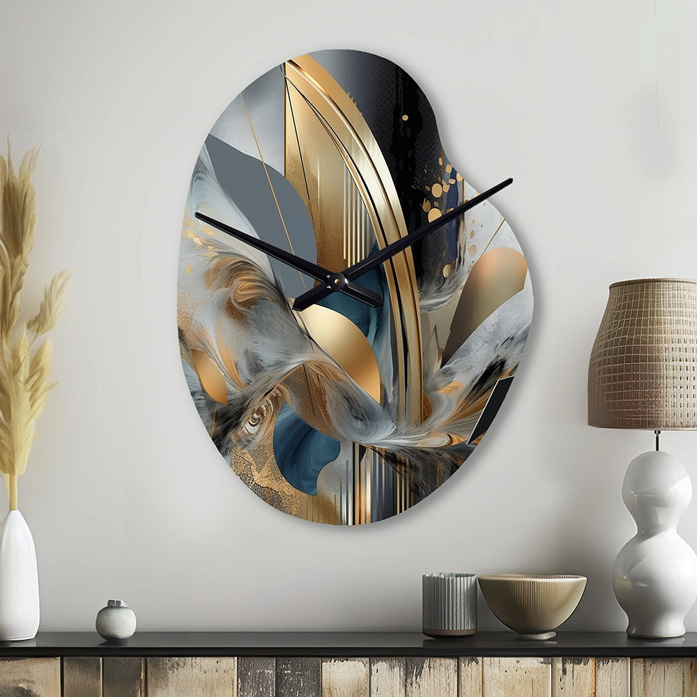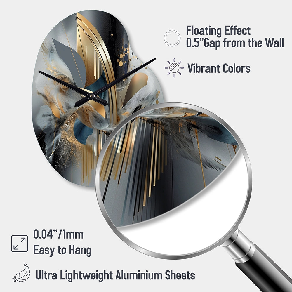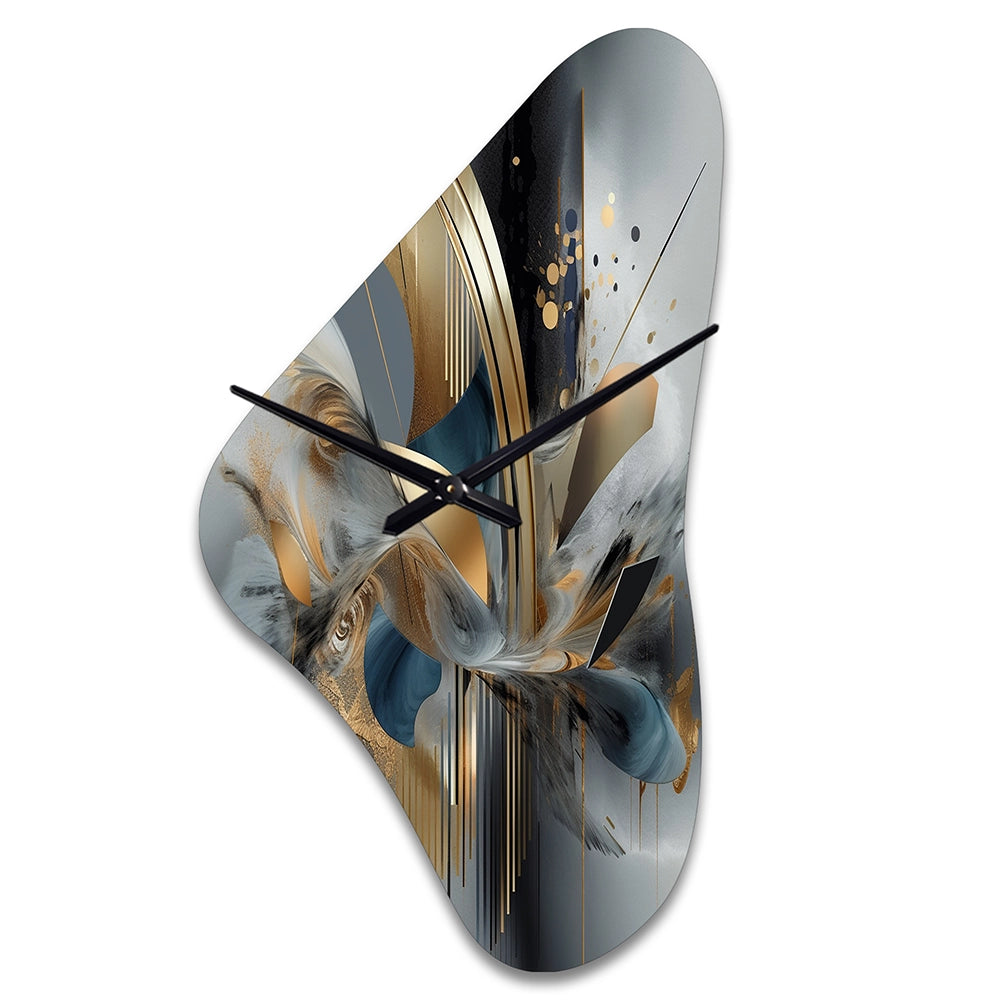 Elevate your space with this Modern asymmetrical metal wall Clock. Our handcrafted metal wall sculptures combine modern design with artistic elegance, creating a striking focal point in any room. This asymmetric metal wall Clock features unique, irregular shapes that bring dynamic movement and depth to your walls. Perfect for Abstract decor, these Gold irregular metal wall sculptures are printed on aluminum panel, with extra gloss ensuring long-lasting beauty. Ideal for living rooms, offices decor, or entrance, this statement piece adds a bold, Abstract touch to any decor.