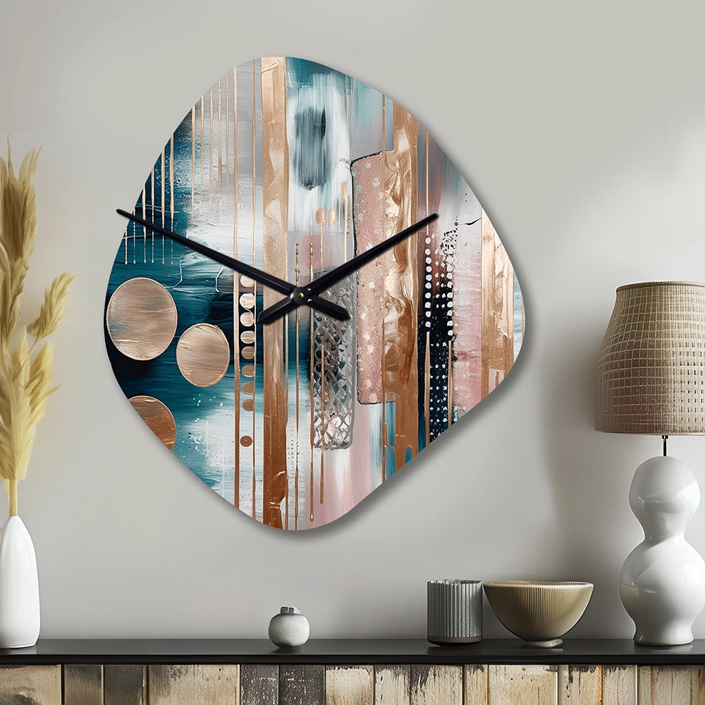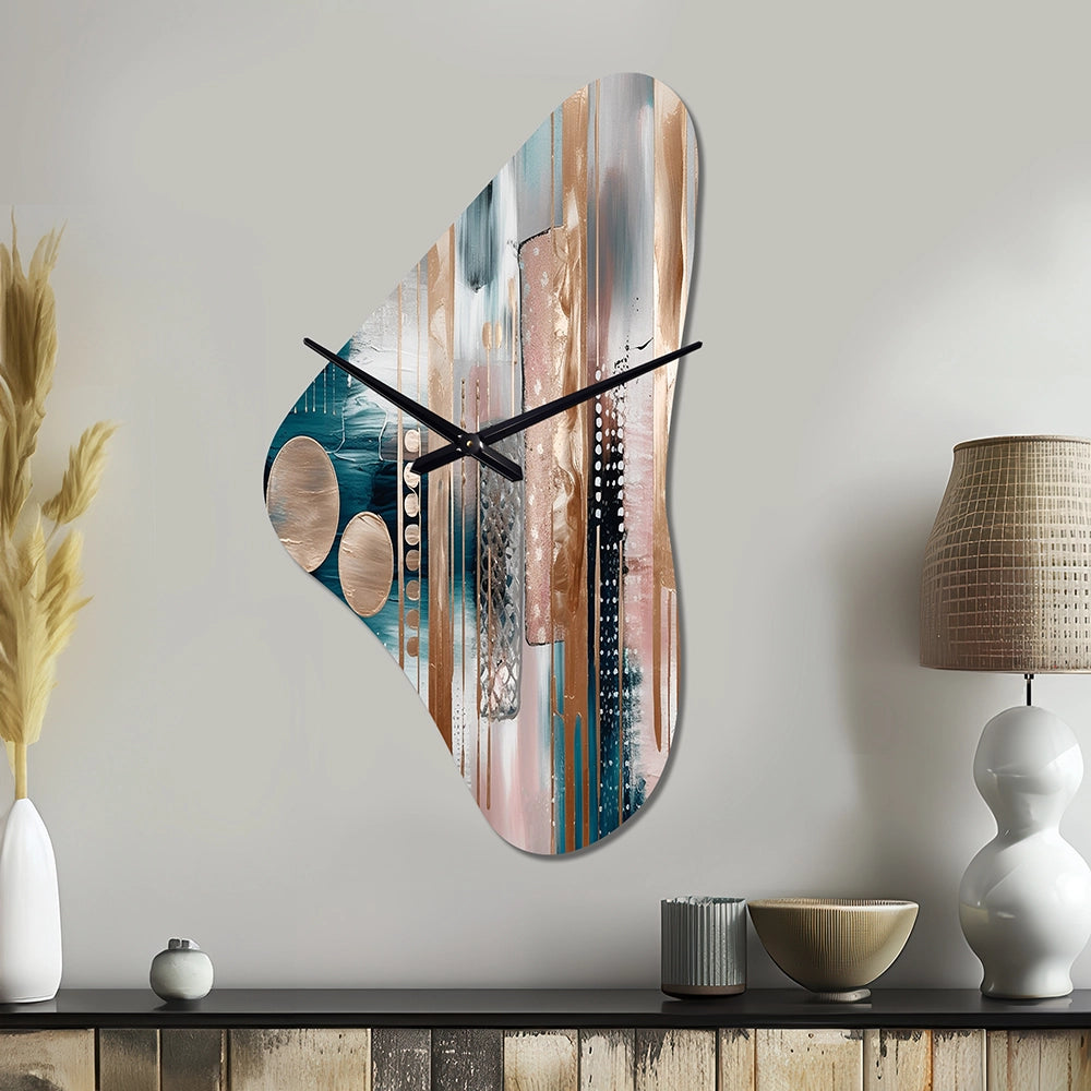 Elevate your space with this Modern asymmetrical metal wall Clock. Our handcrafted metal wall sculptures combine modern design with artistic elegance, creating a striking focal point in any room. This asymmetric metal wall Clock features unique, irregular shapes that bring dynamic movement and depth to your walls. Perfect for Abstract decor, these Pink irregular metal wall sculptures are printed on aluminum panel, with extra gloss ensuring long-lasting beauty. Ideal for living rooms, offices decor, or entrance, this statement piece adds a bold, Abstract touch to any decor.