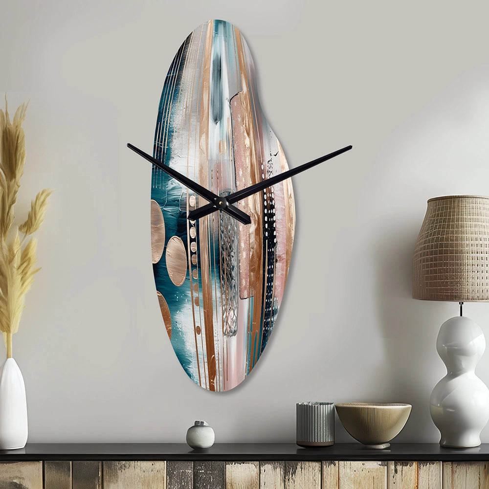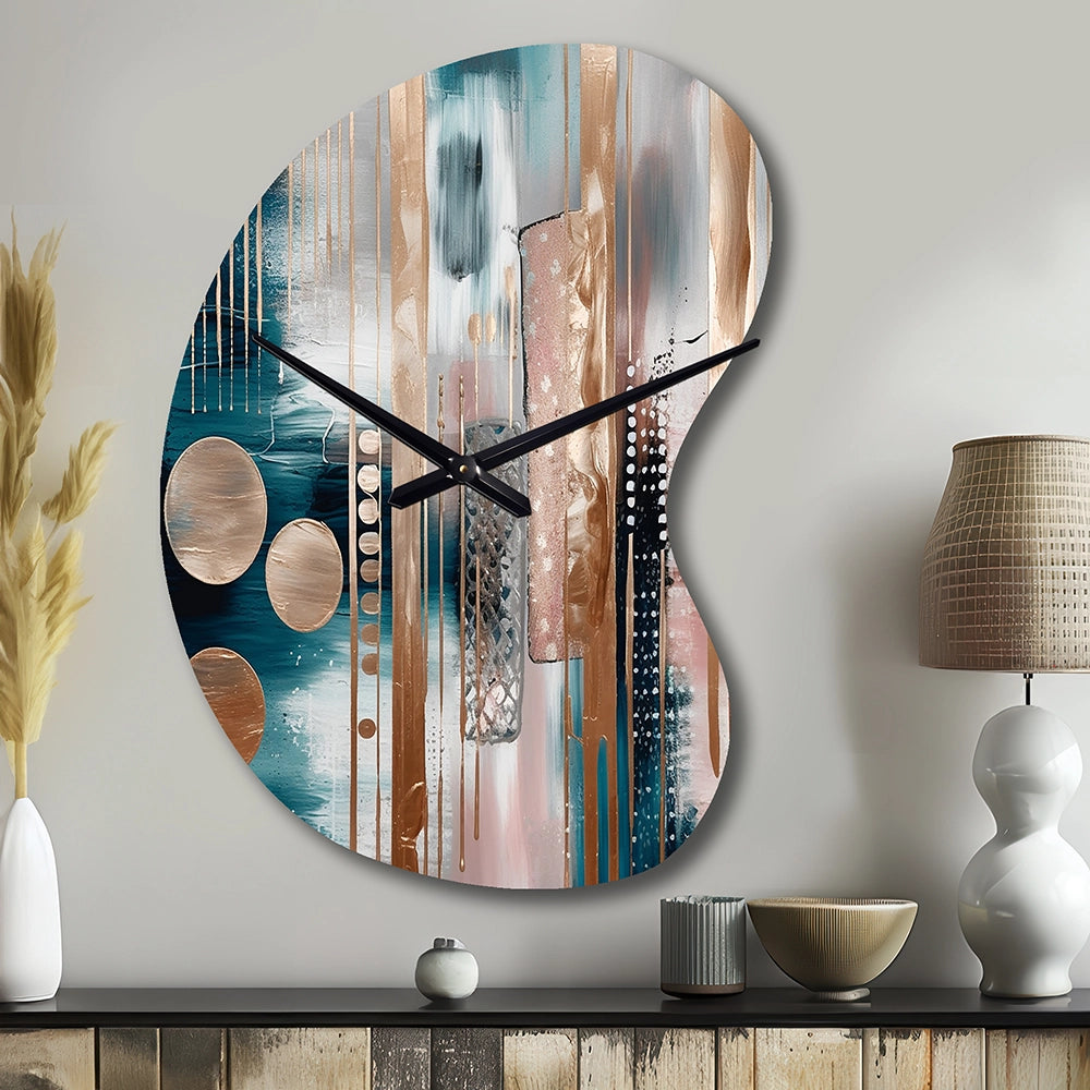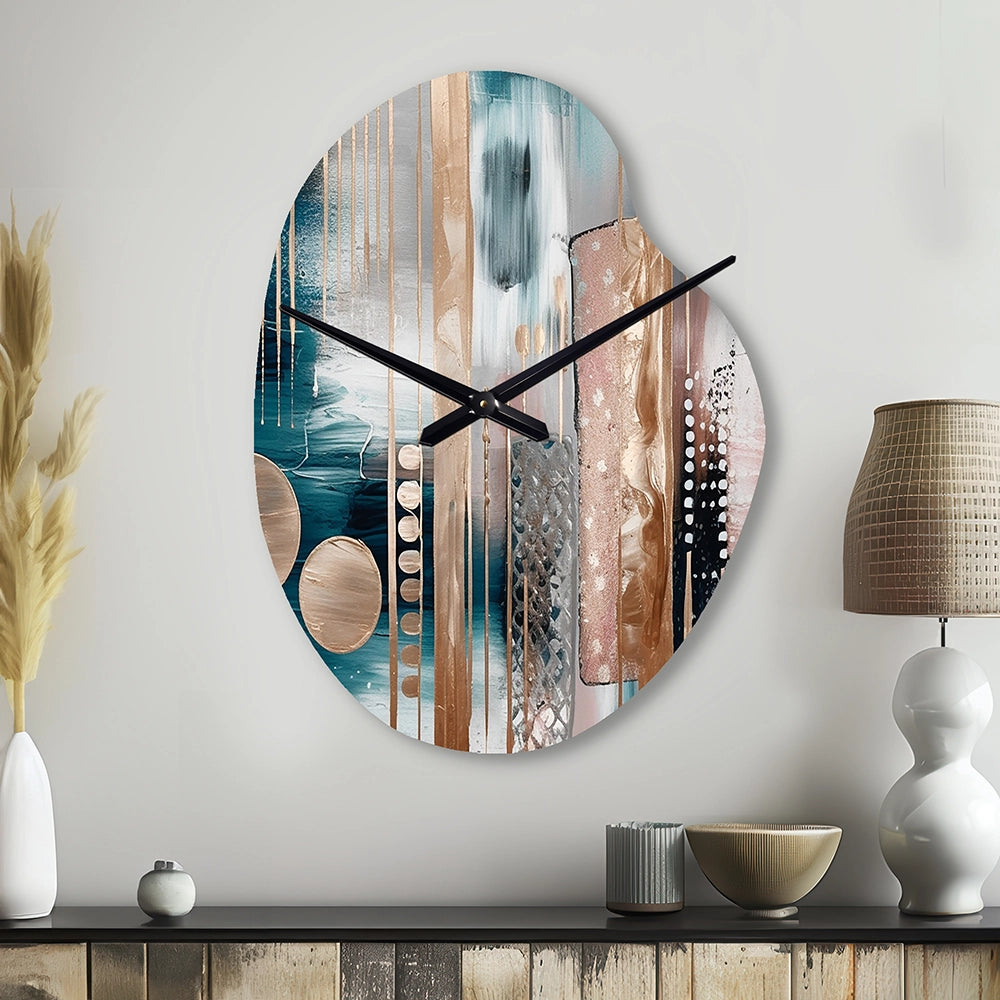 Soft Colors Shapes And Lines Marble IV - Asymmetric Metal Wall Clock
