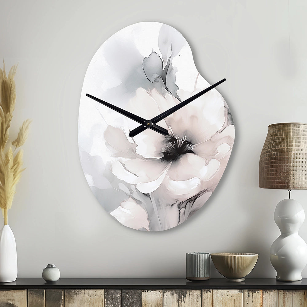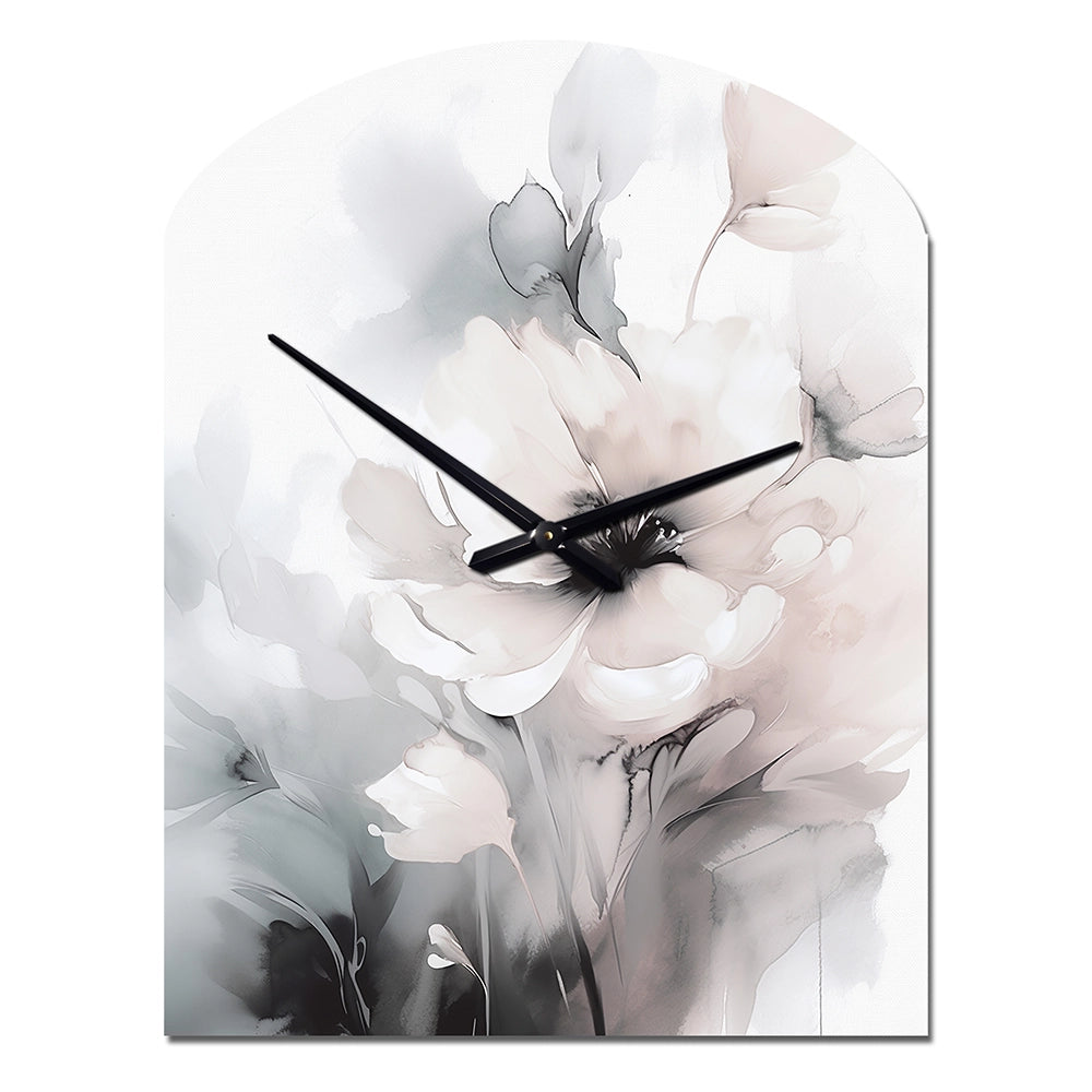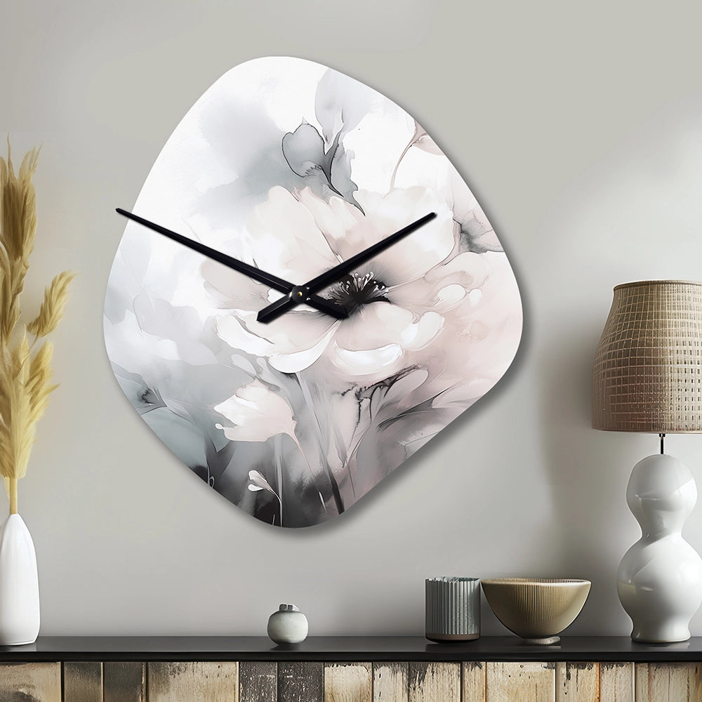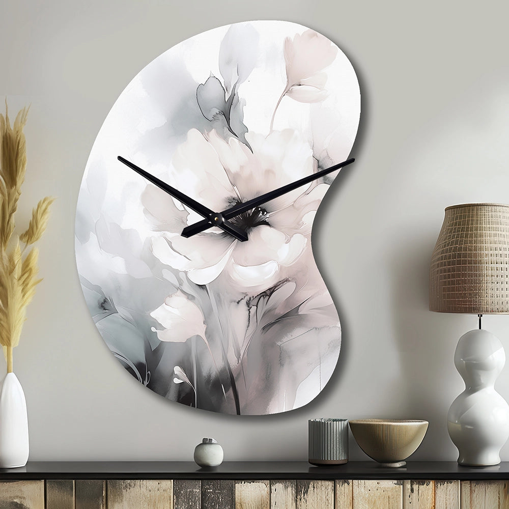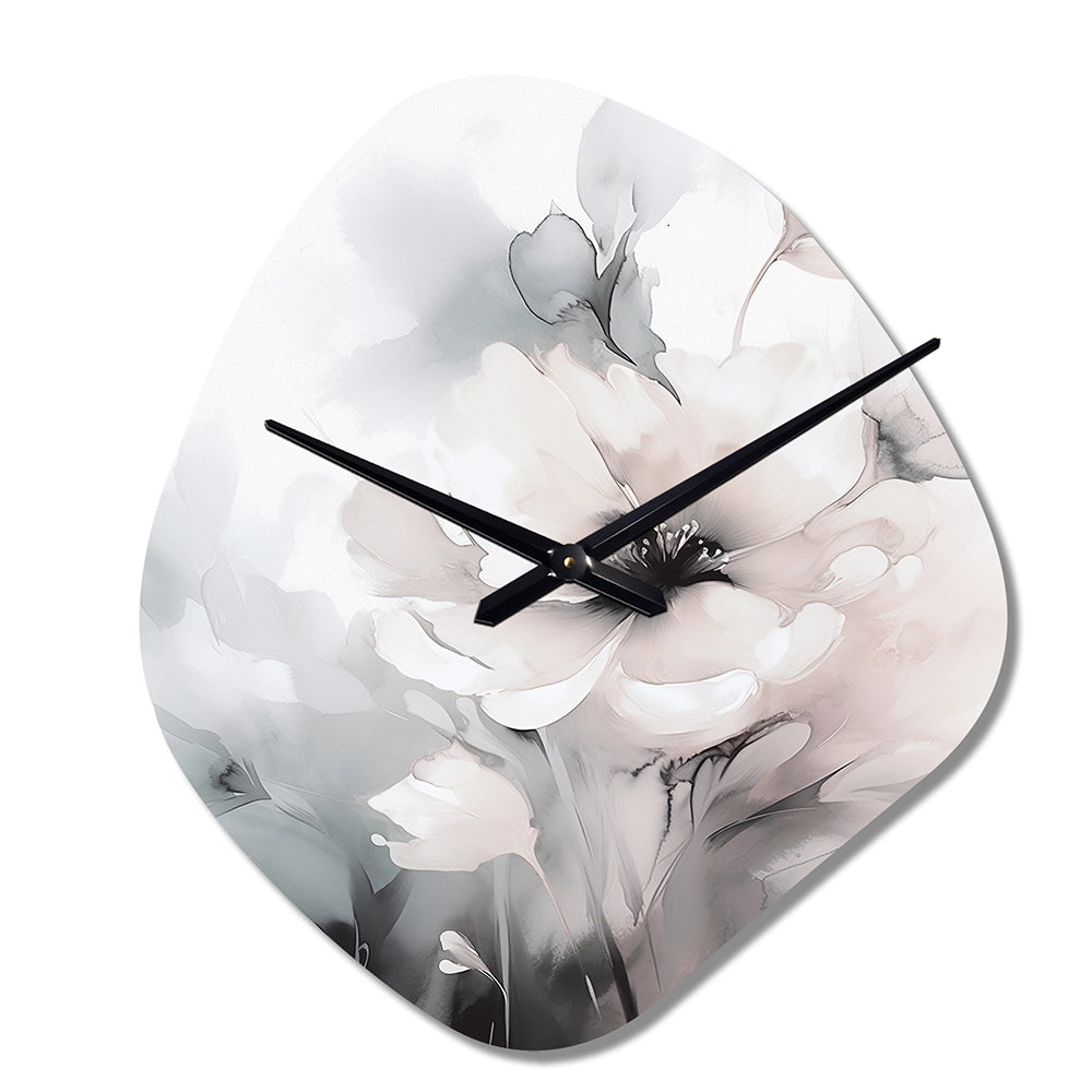Soft Light Grey Flowers I - Asymmetric Metal Wall Clock