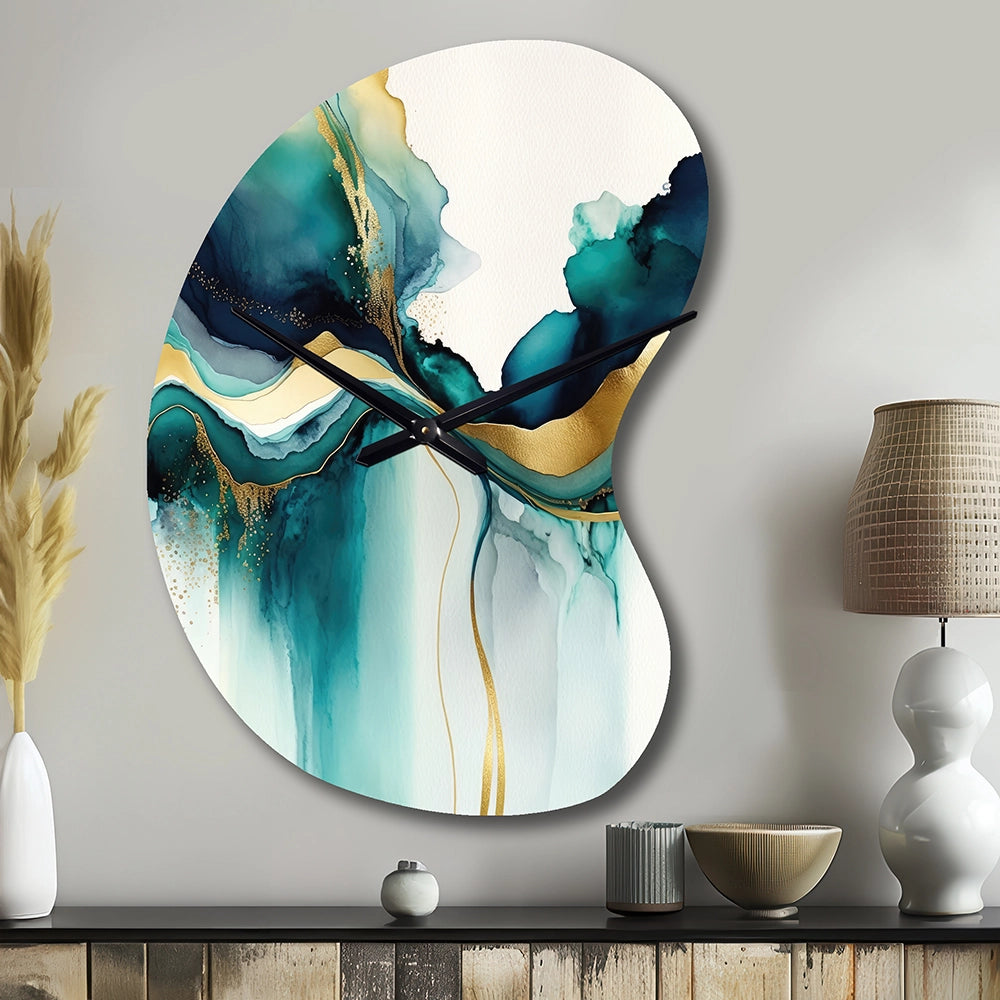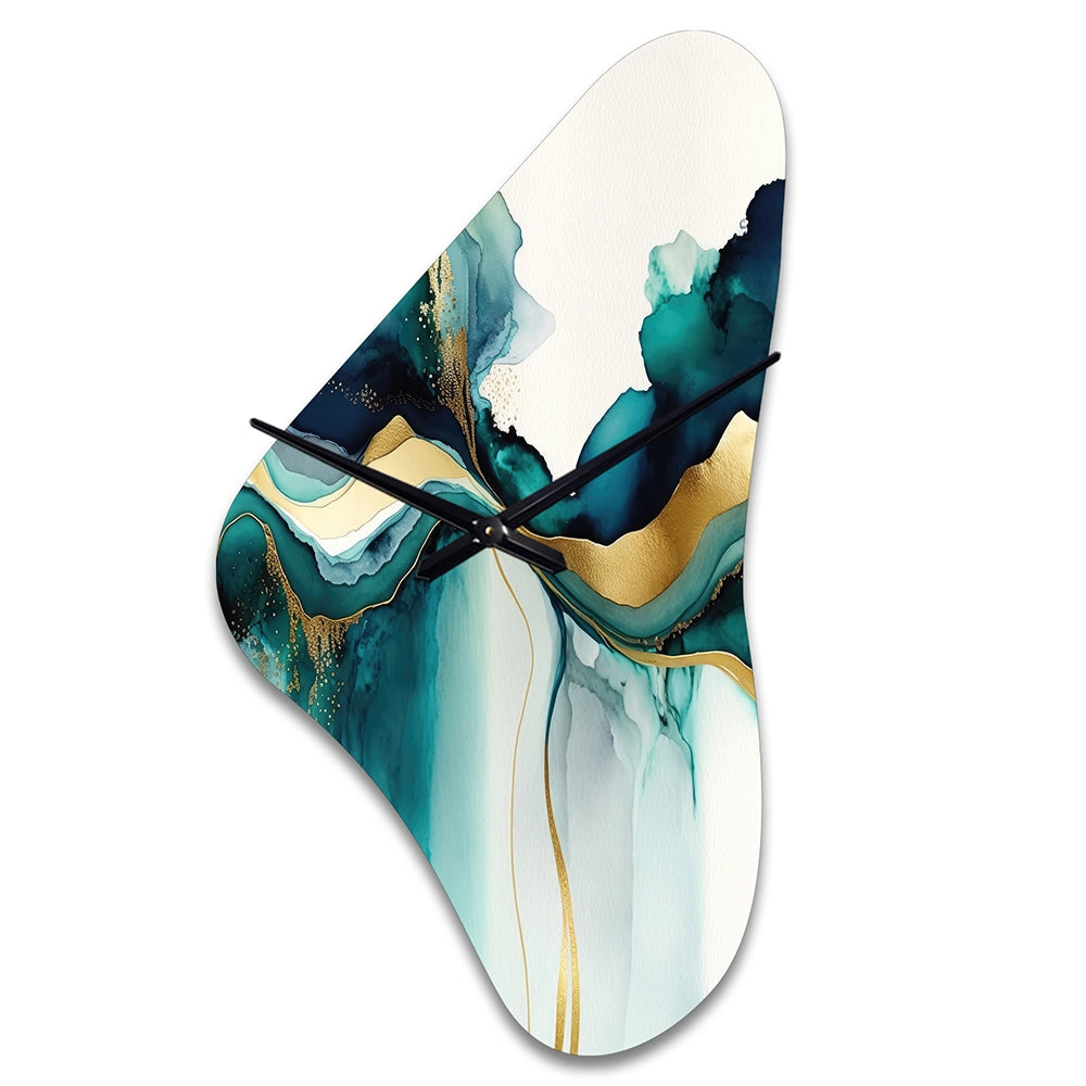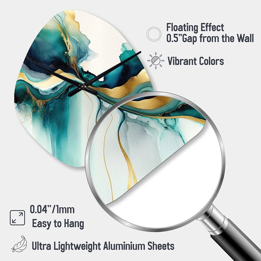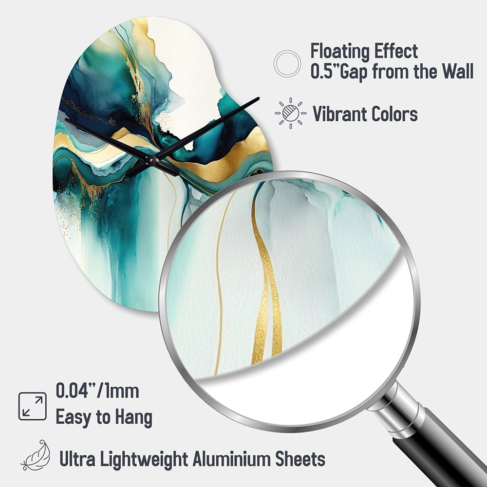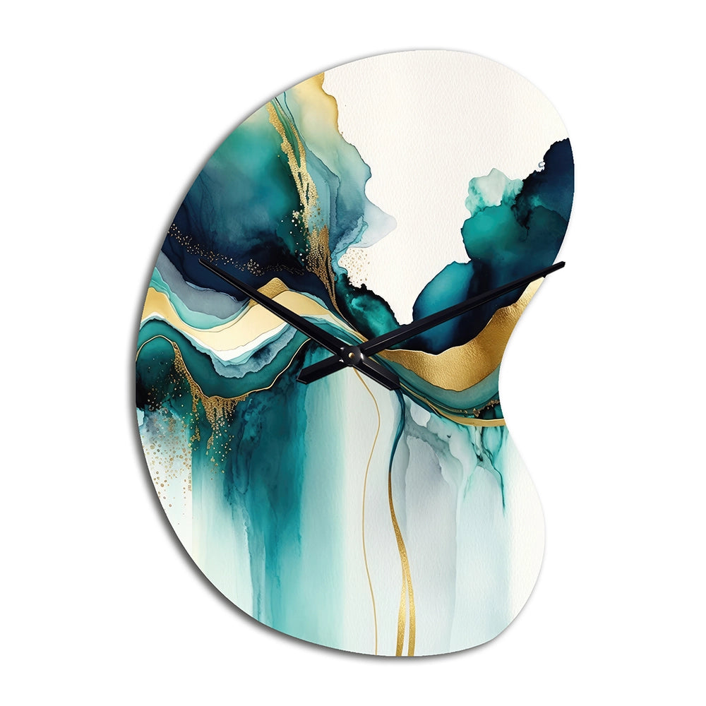 Teal And Gold Abstract Expression I - Asymmetric Metal Wall Clock