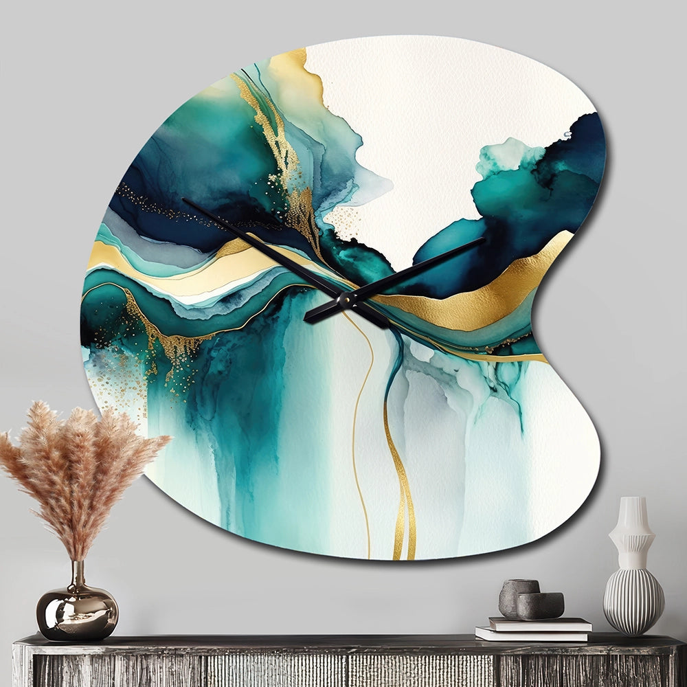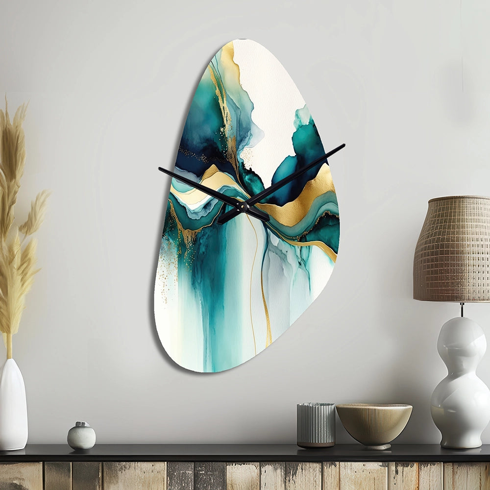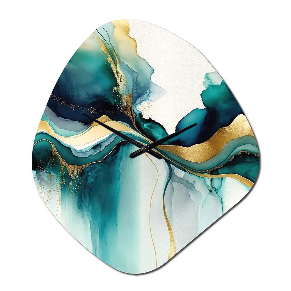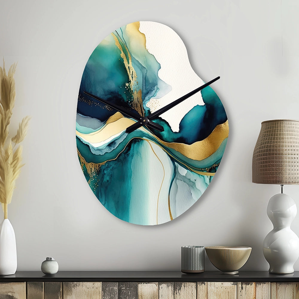 Teal And Gold Abstract Expression I - Asymmetric Metal Wall Clock