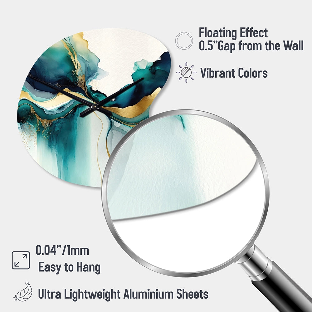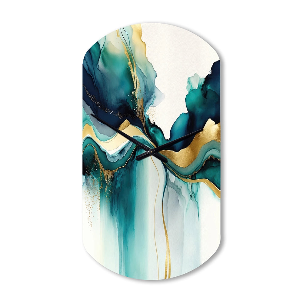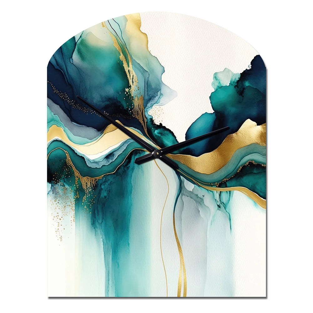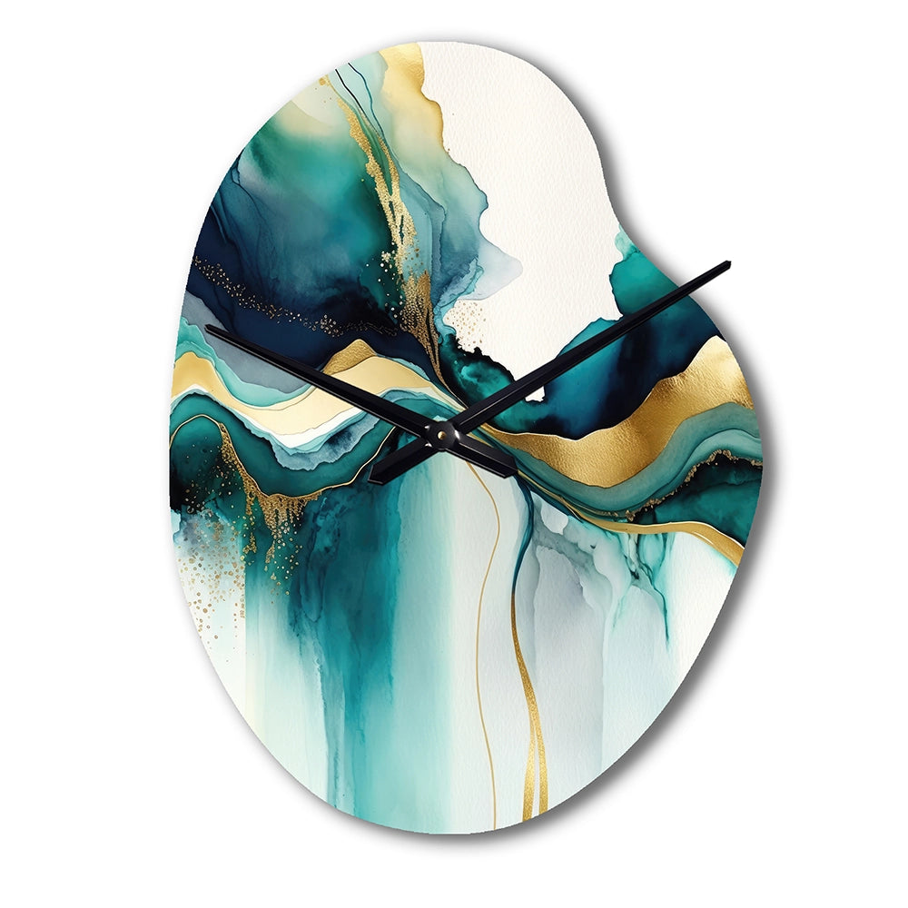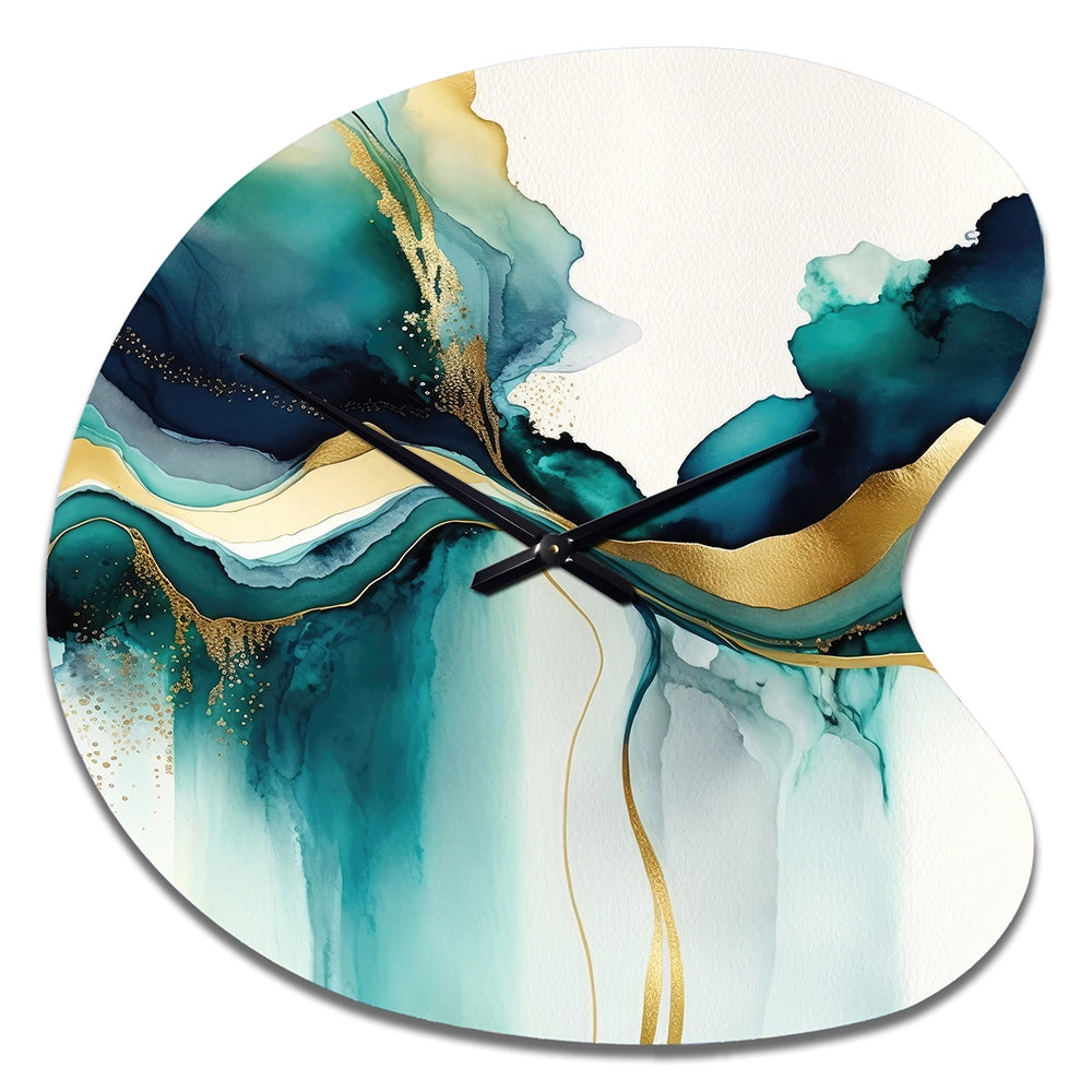 Teal And Gold Abstract Expression I - Asymmetric Metal Wall Clock