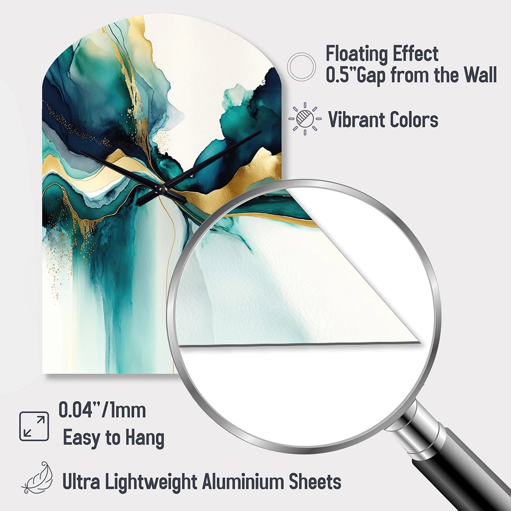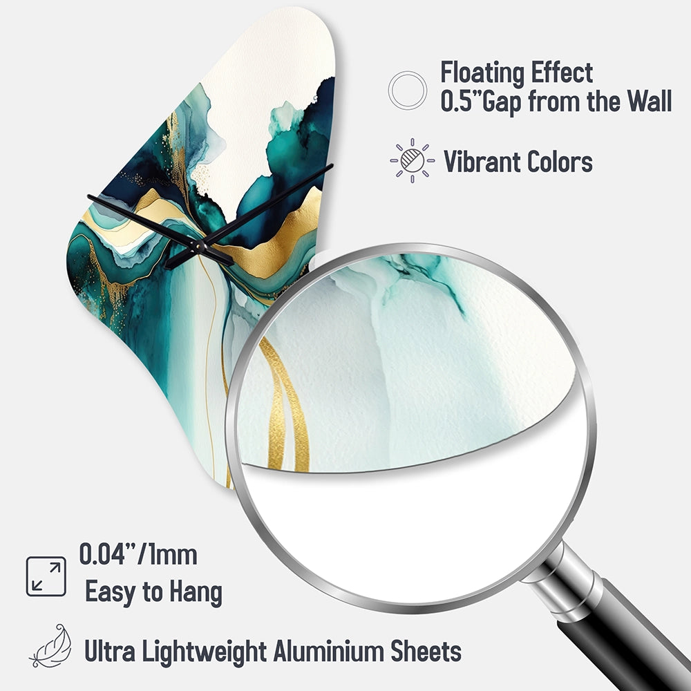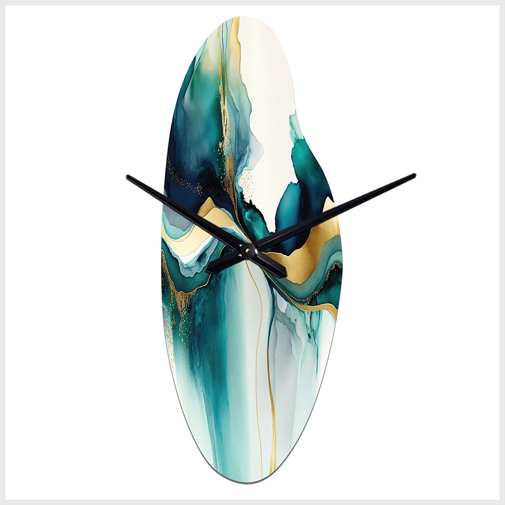 Elevate your space with this Modern asymmetrical metal wall Clock. Our handcrafted metal wall sculptures combine modern design with artistic elegance, creating a striking focal point in any room. This asymmetric metal wall Clock features unique, irregular shapes that bring dynamic movement and depth to your walls. Perfect for Abstract decor, these Turquoise irregular metal wall sculptures are printed on aluminum panel, with extra gloss ensuring long-lasting beauty. Ideal for living rooms, offices decor, or entrance, this statement piece adds a bold, Abstract touch to any decor.
