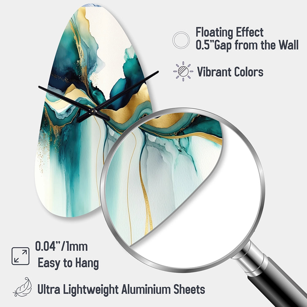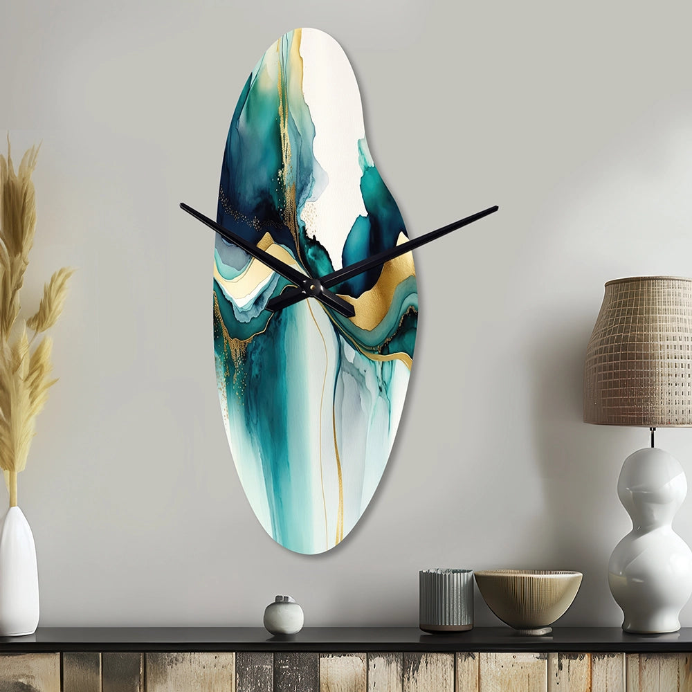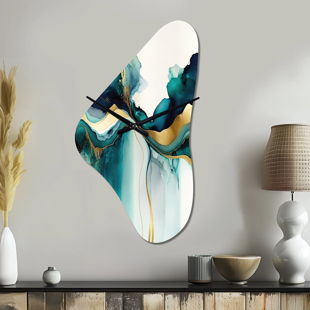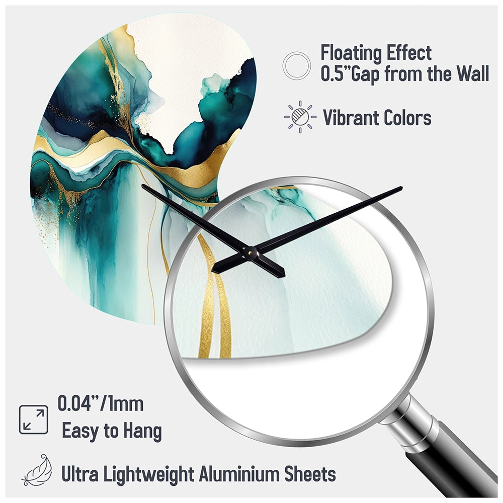 Elevate your space with this Modern asymmetrical metal wall Clock. Our handcrafted metal wall sculptures combine modern design with artistic elegance, creating a striking focal point in any room. This asymmetric metal wall Clock features unique, irregular shapes that bring dynamic movement and depth to your walls. Perfect for Abstract decor, these Turquoise irregular metal wall sculptures are printed on aluminum panel, with extra gloss ensuring long-lasting beauty. Ideal for living rooms, offices decor, or entrance, this statement piece adds a bold, Abstract touch to any decor.