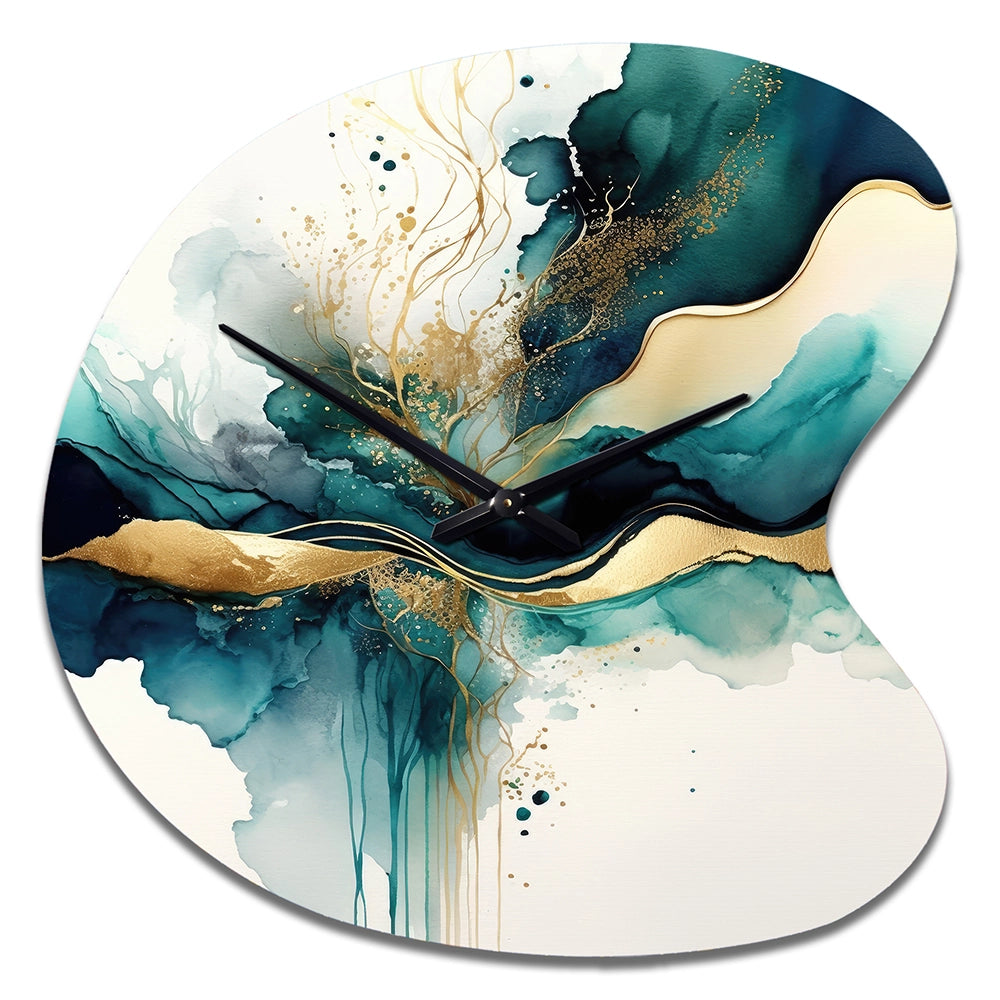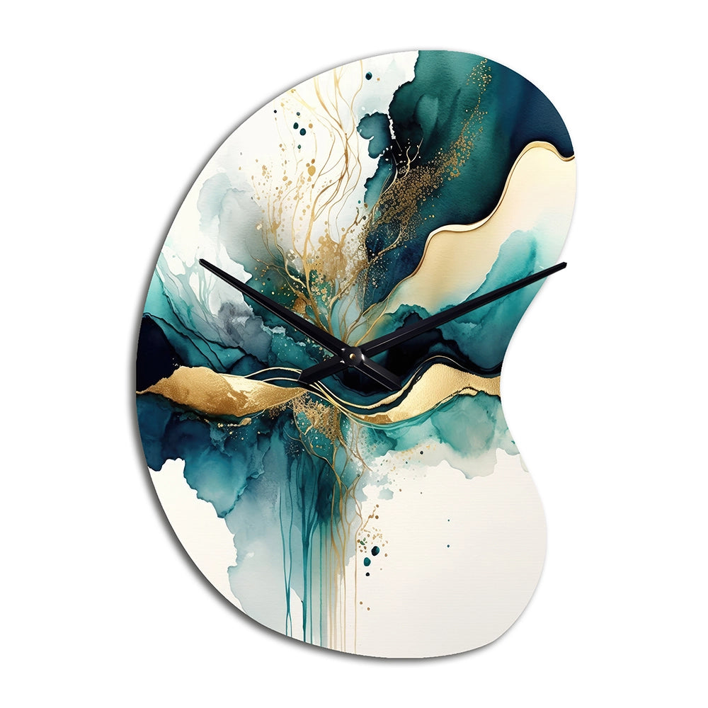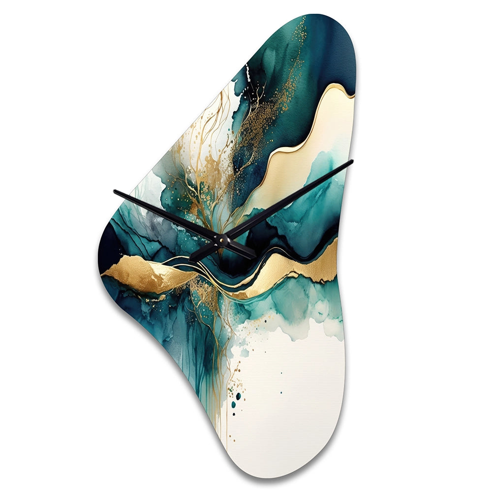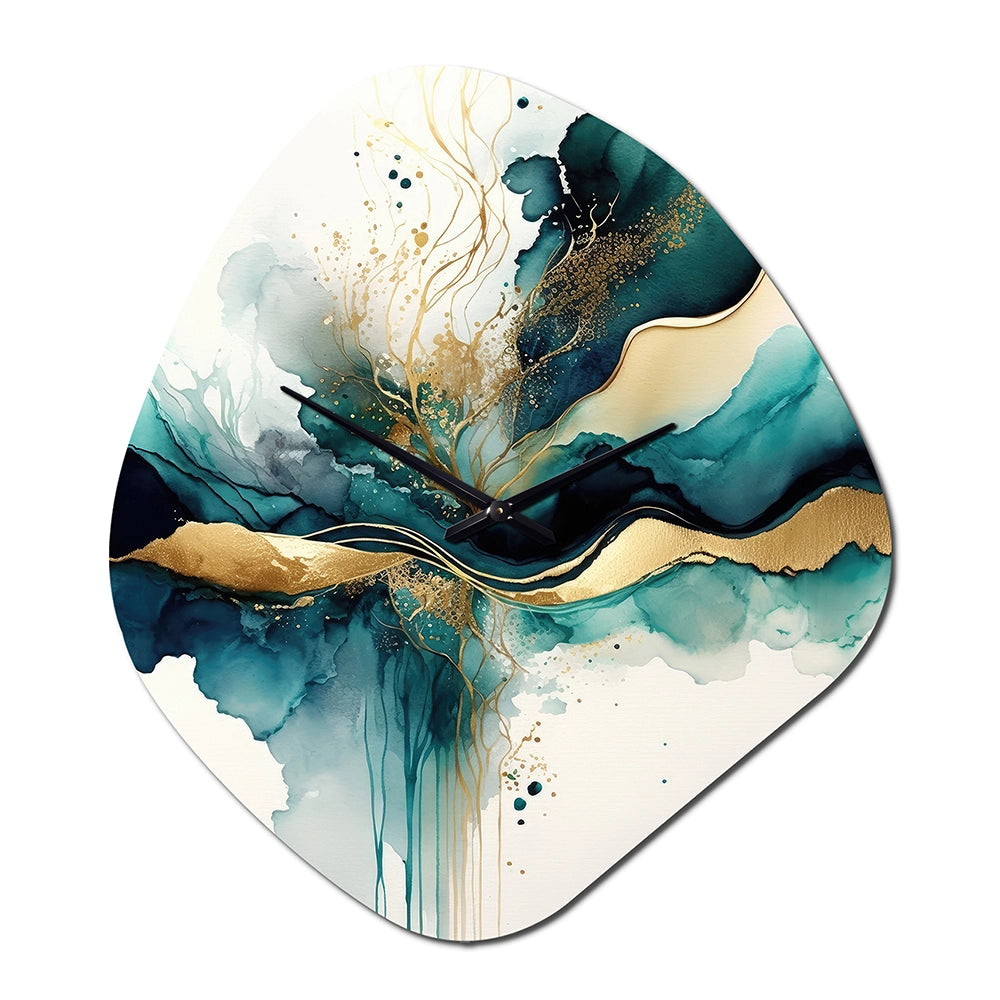 Teal And Gold Abstract Expression III - Asymmetric Metal Wall Clock