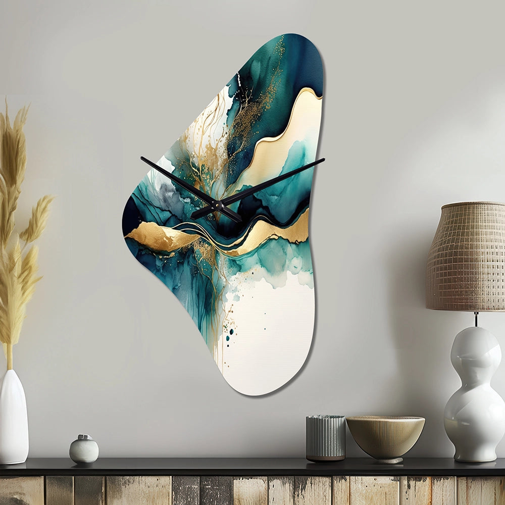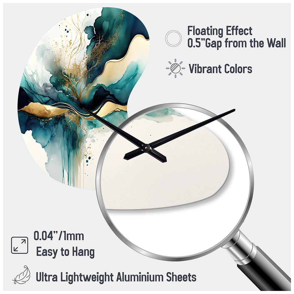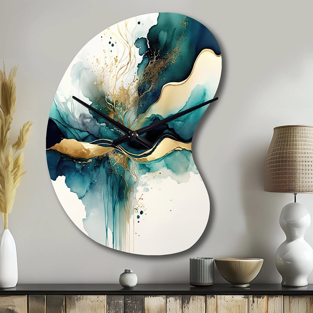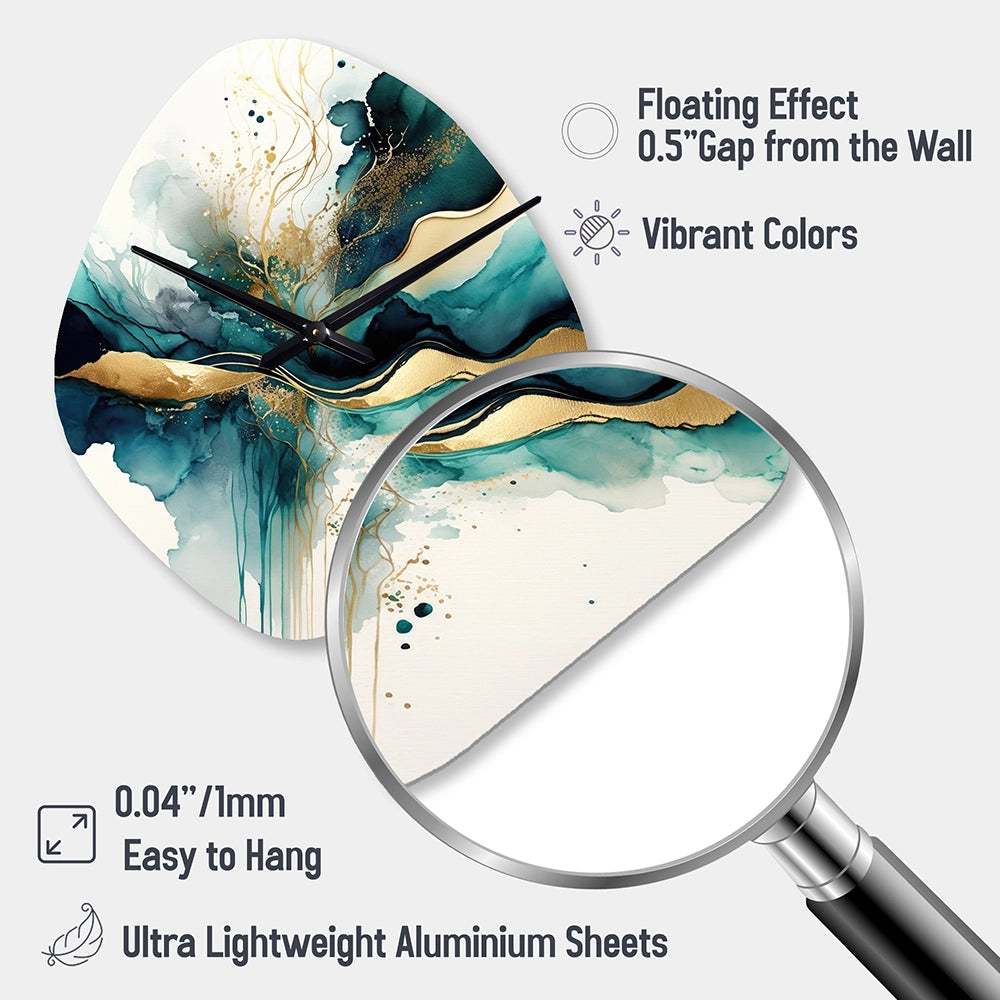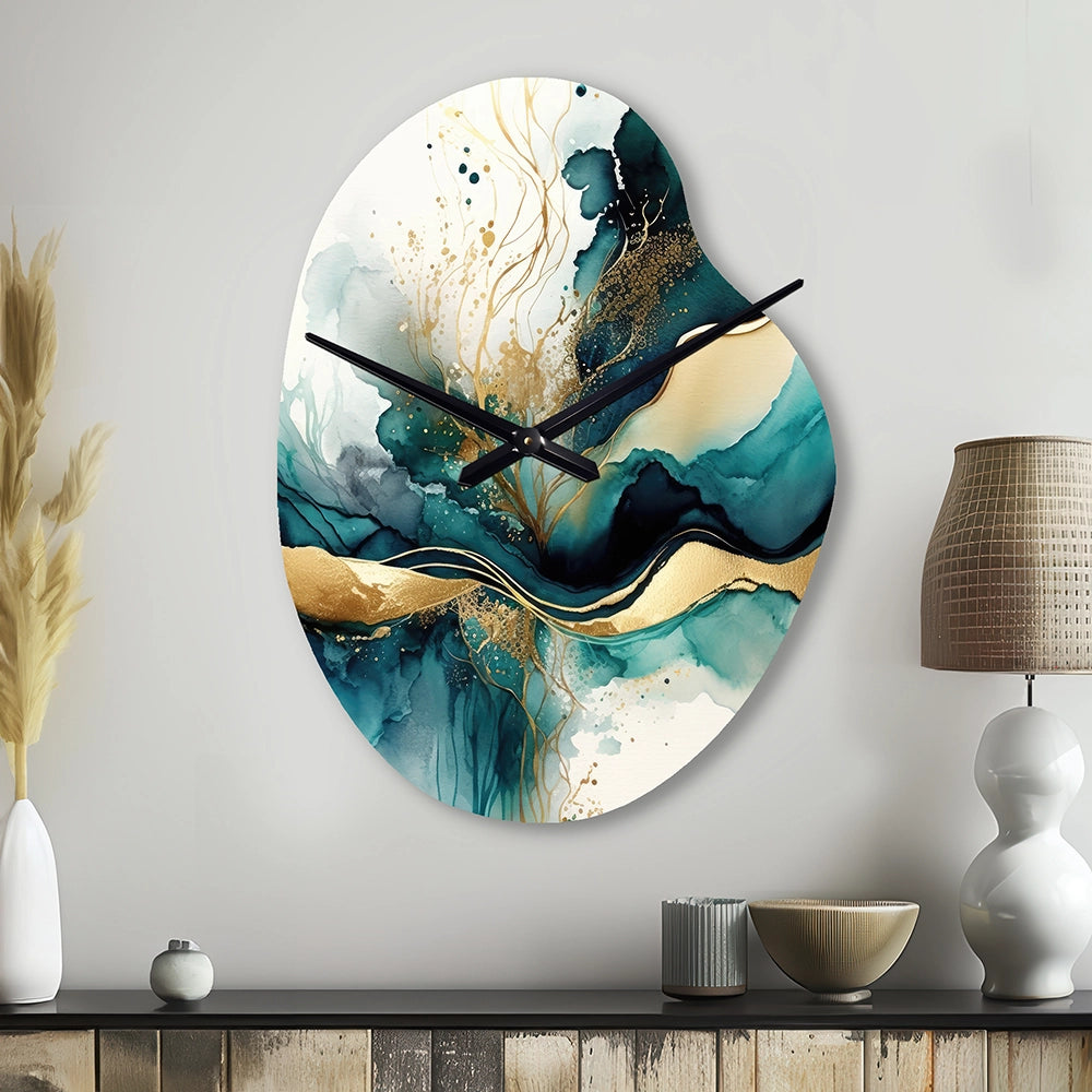 Teal And Gold Abstract Expression III - Asymmetric Metal Wall Clock