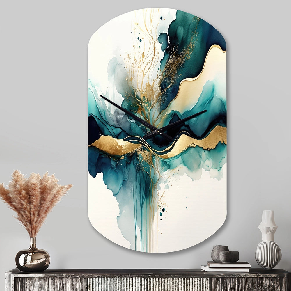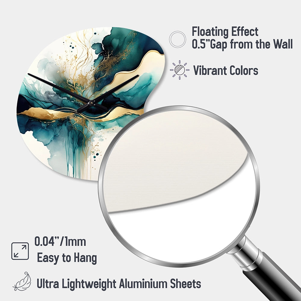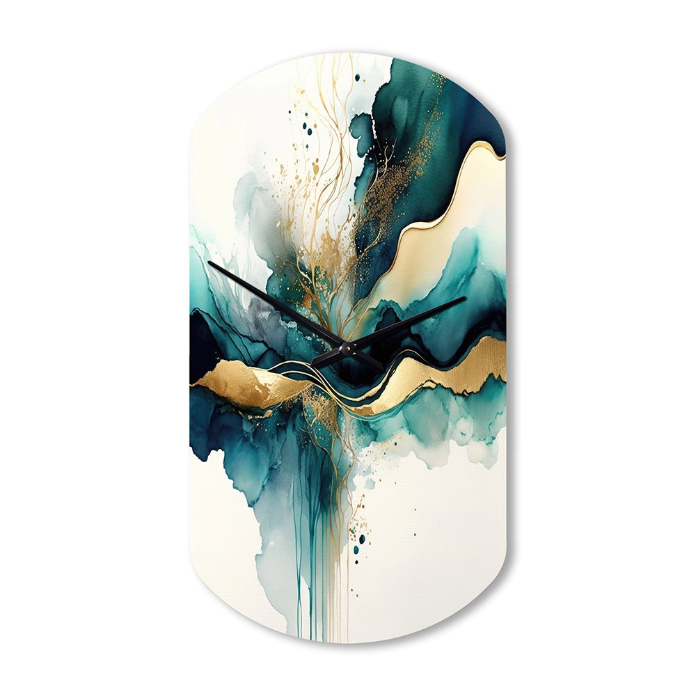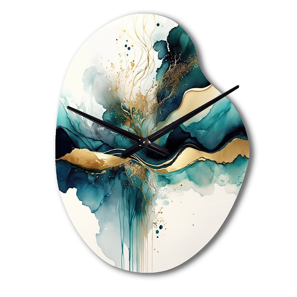 Teal And Gold Abstract Expression III - Asymmetric Metal Wall Clock