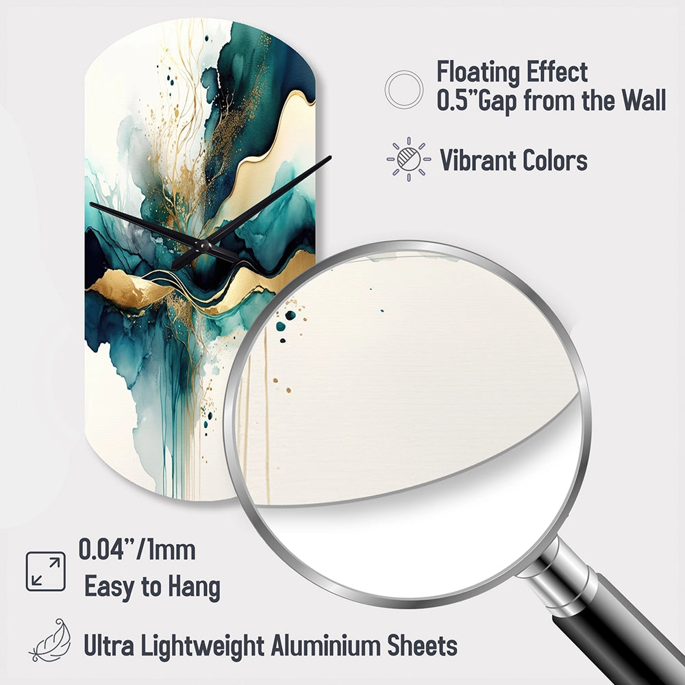 Elevate your space with this Modern asymmetrical metal wall Clock. Our handcrafted metal wall sculptures combine modern design with artistic elegance, creating a striking focal point in any room. This asymmetric metal wall Clock features unique, irregular shapes that bring dynamic movement and depth to your walls. Perfect for Abstract decor, these Turquoise irregular metal wall sculptures are printed on aluminum panel, with extra gloss ensuring long-lasting beauty. Ideal for living rooms, offices decor, or entrance, this statement piece adds a bold, Abstract touch to any decor.