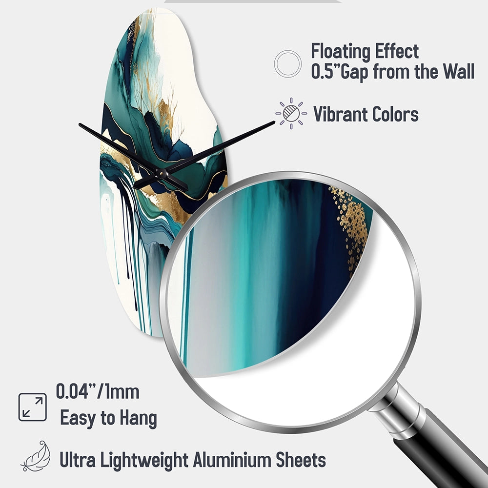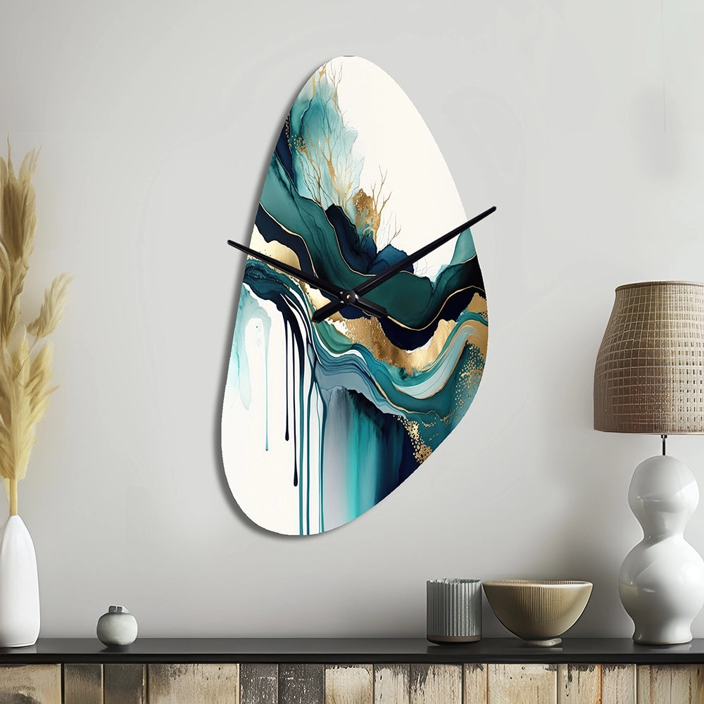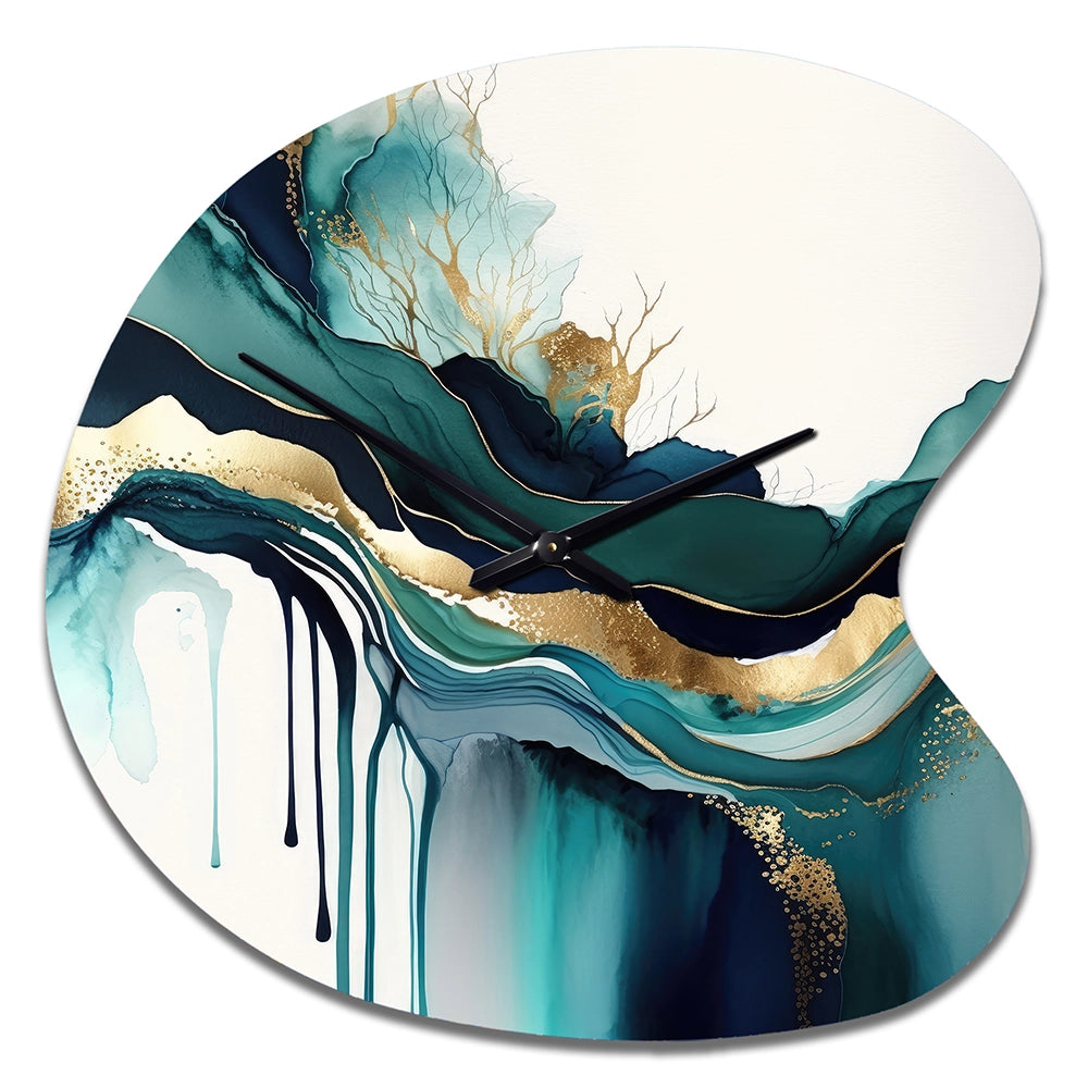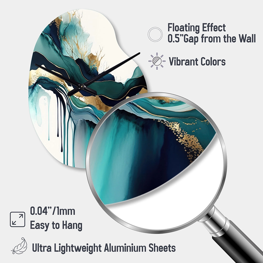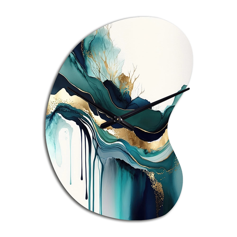 Teal And Gold Abstract Expression IV - Asymmetric Metal Wall Clock
