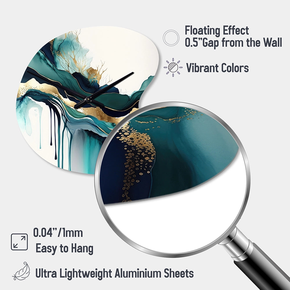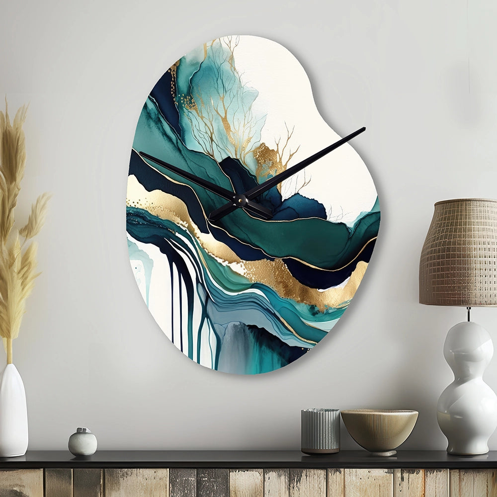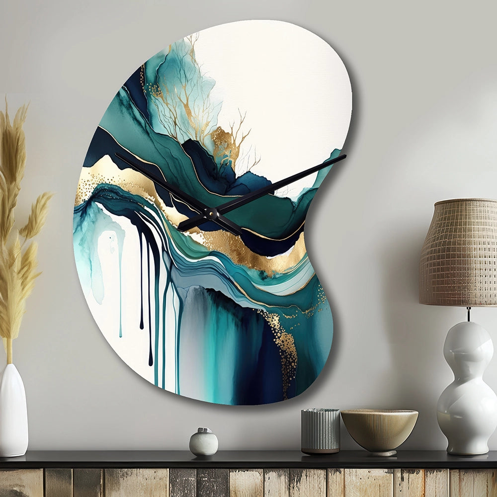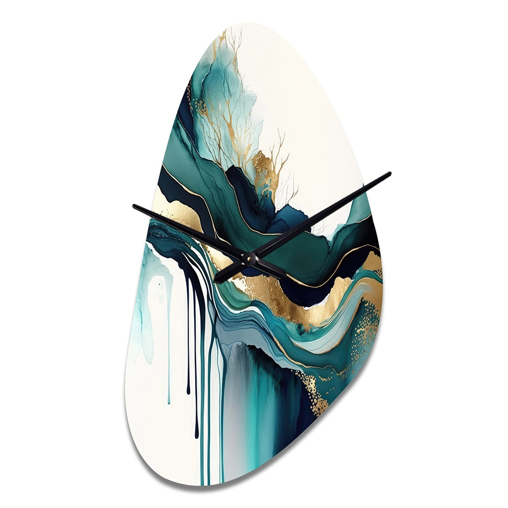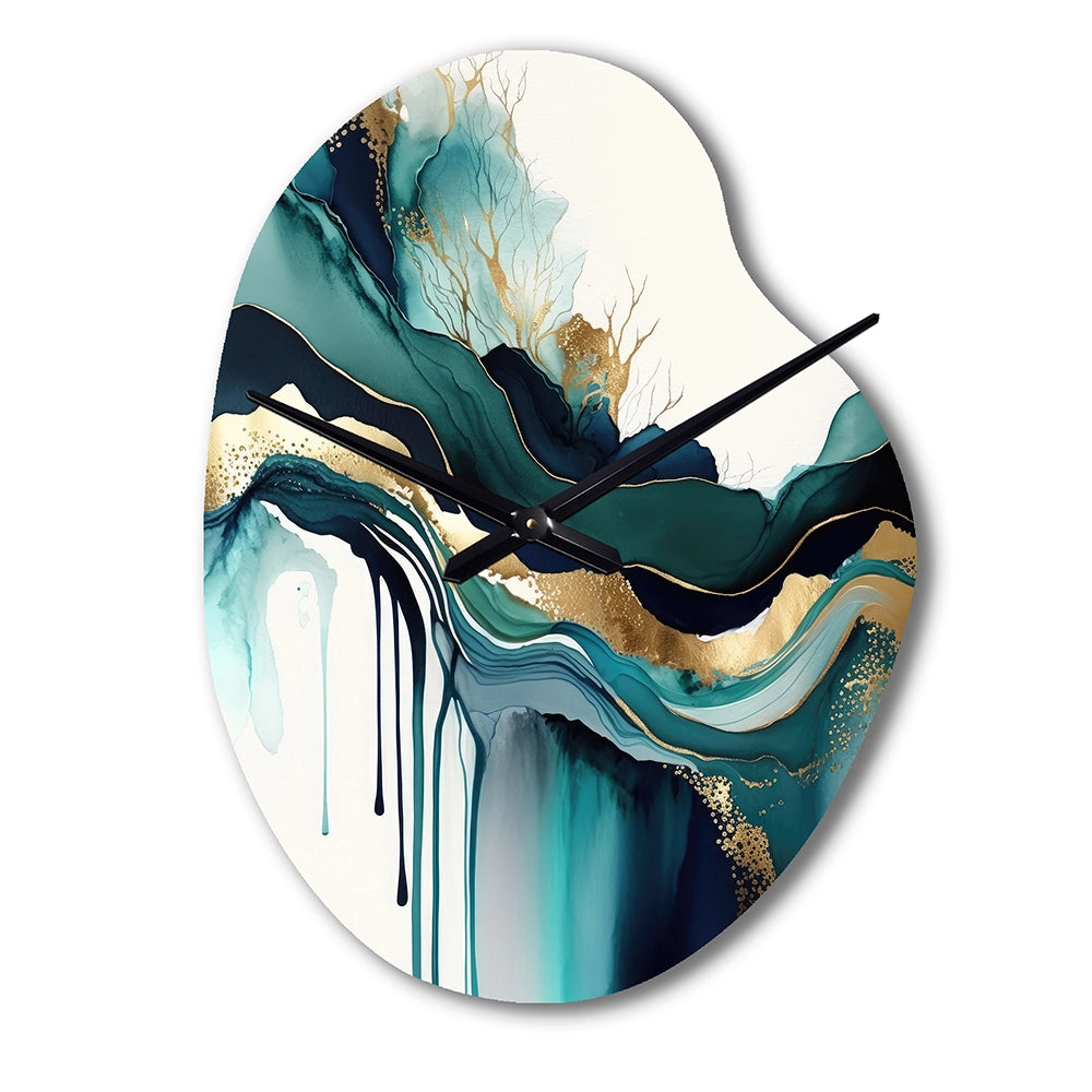 Teal And Gold Abstract Expression IV - Asymmetric Metal Wall Clock