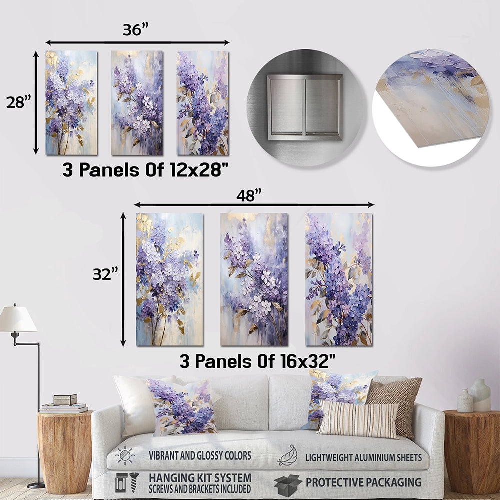 Traditional Metal Wall Art Set of 3 - Purple And Gold Pastel Lilac Dreams